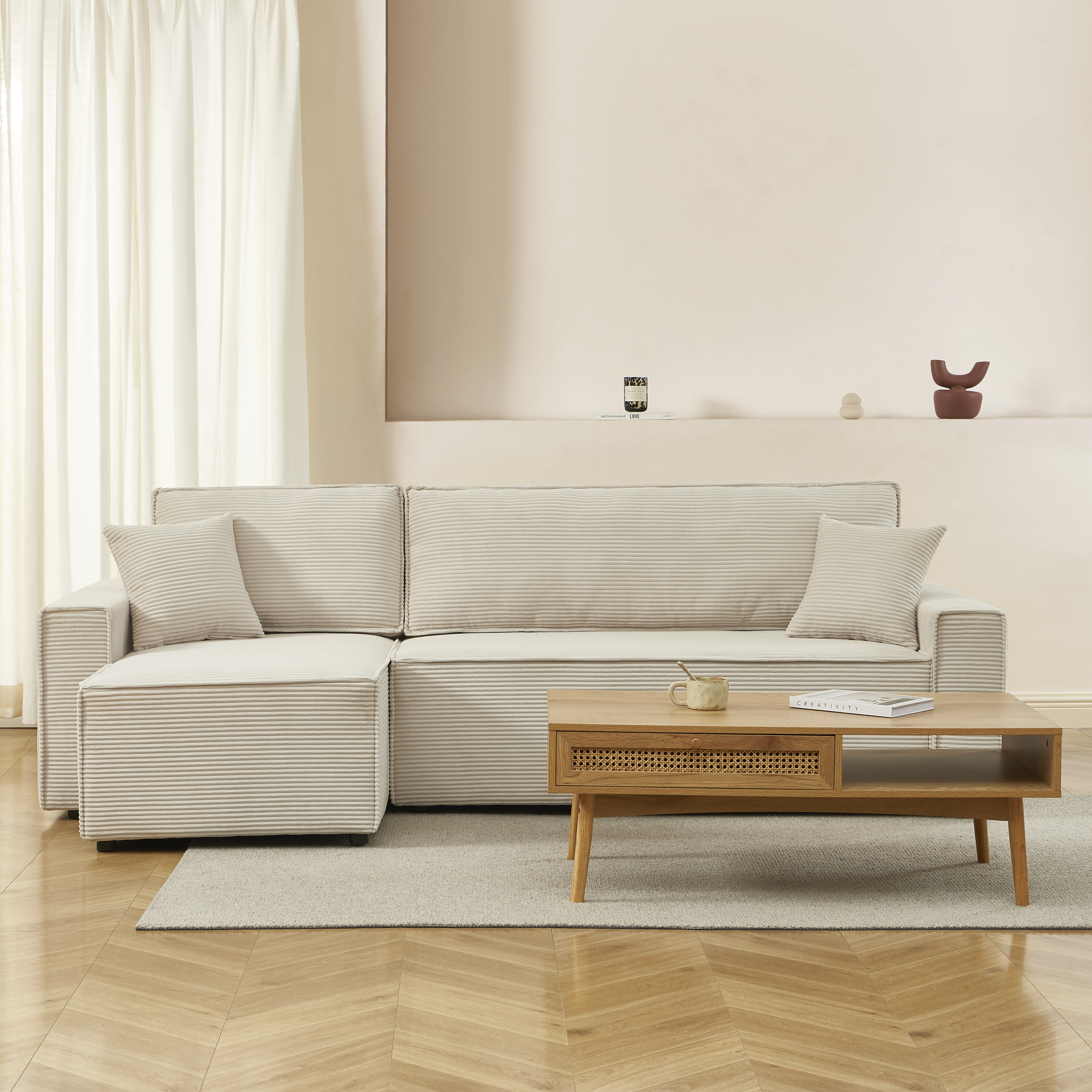 Divano angolare convertibile e reversibile a 4 posti ZOLA in velluto a coste beige