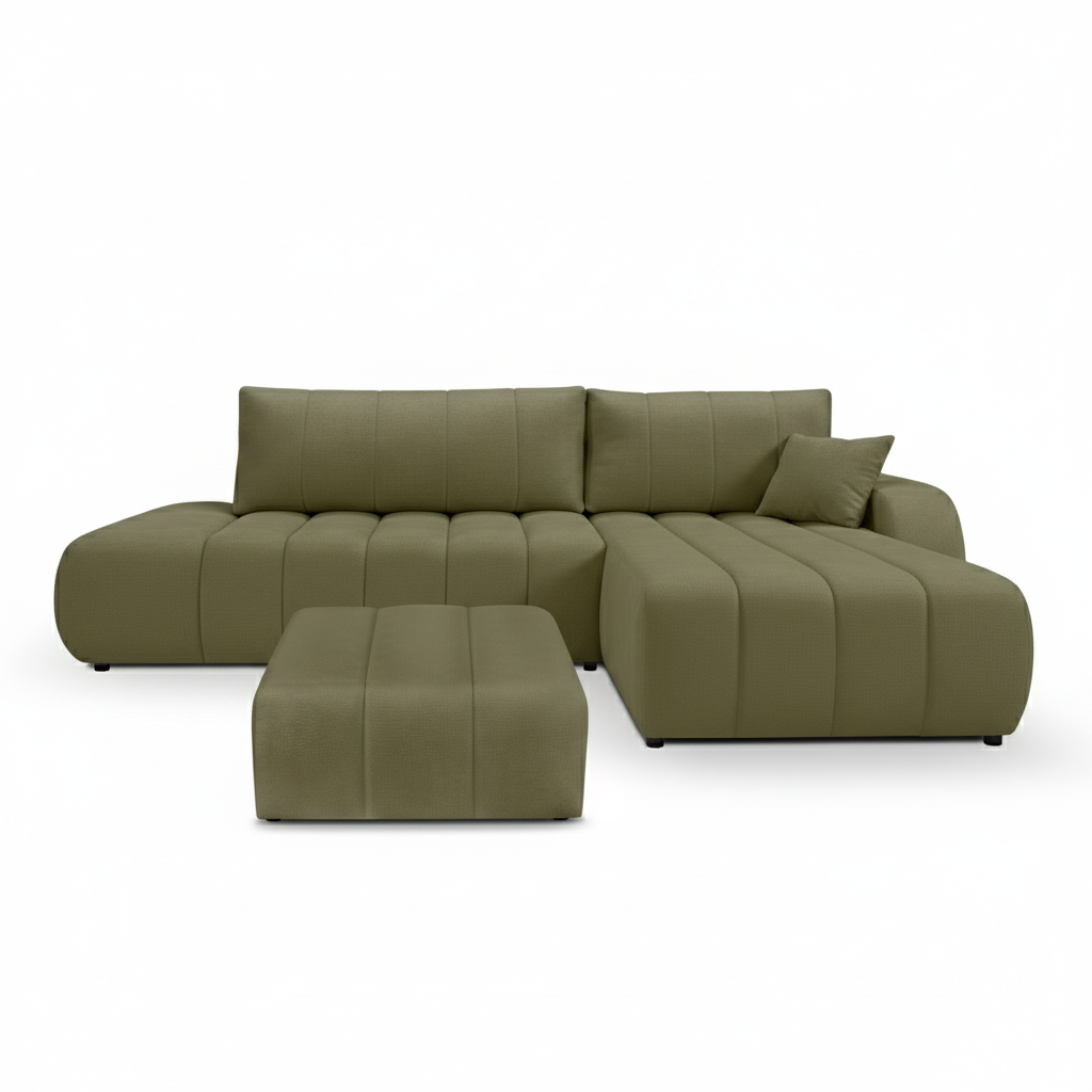 Progettato per diventare il cuore del vostro salotto, il divano angolare BELEM offre un ampio spazio relax per tutta la famiglia. Che sia per guardare un film, chiacchierare con gli amici o godersi un momento di tranquillità, i suoi 4/5 comodi posti e l'ampia angolazione diritta vi offrono momenti di condivisione in tutta semplicità. Avete bisogno di un letto in più? Si trasforma in un letto aggiuntivo in un batter d'occhio, ideale per ospitare i vostri cari all'ultimo minuto. Prodotto in Europa, il divano BELEM unisce qualità, stile e funzionalità.