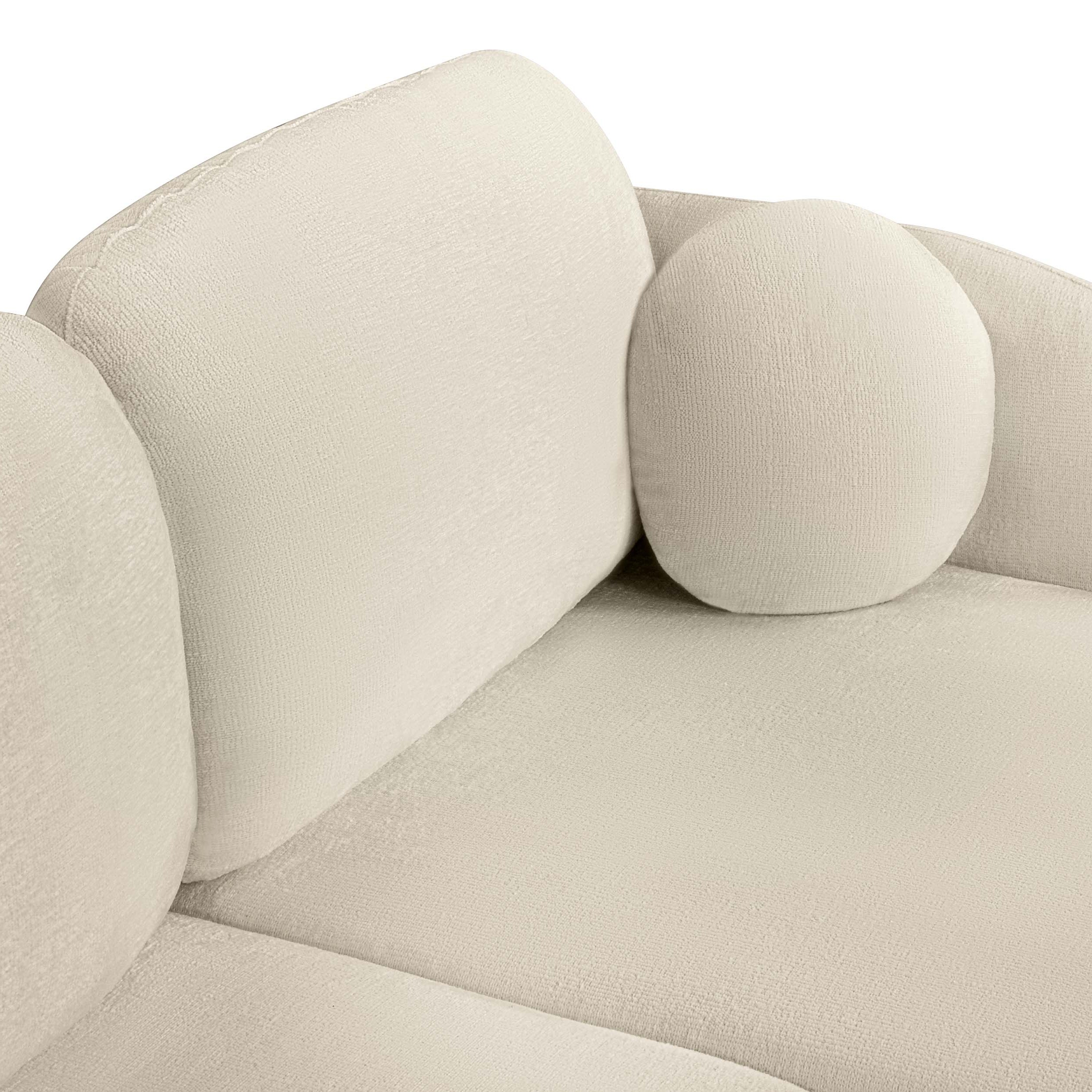 Rivestito in tessuto bouclé, il divano CARLOTTA punta sulla morbidezza.