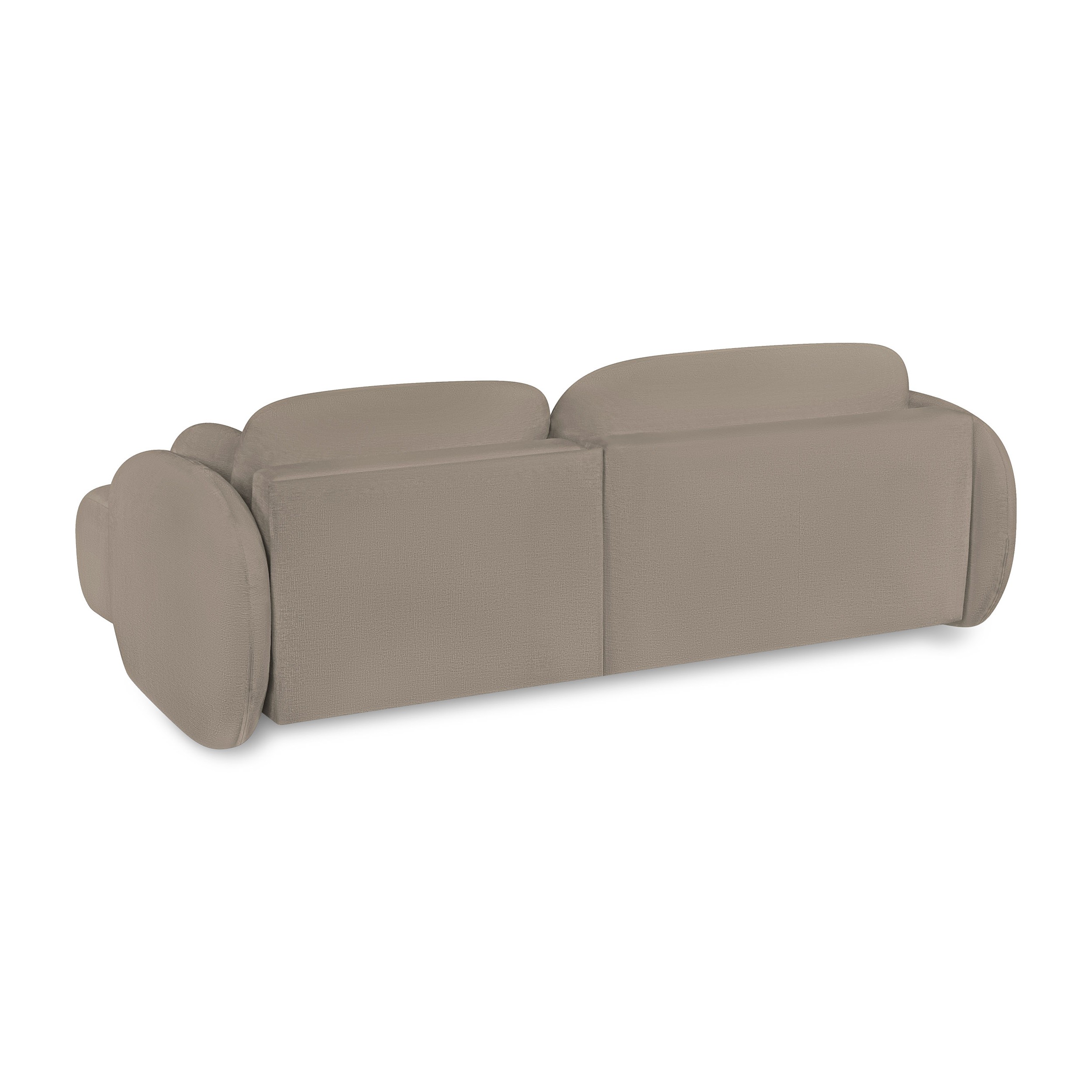 Rivestito in tessuto bouclé, il divano CARLOTTA punta sulla morbidezza.
