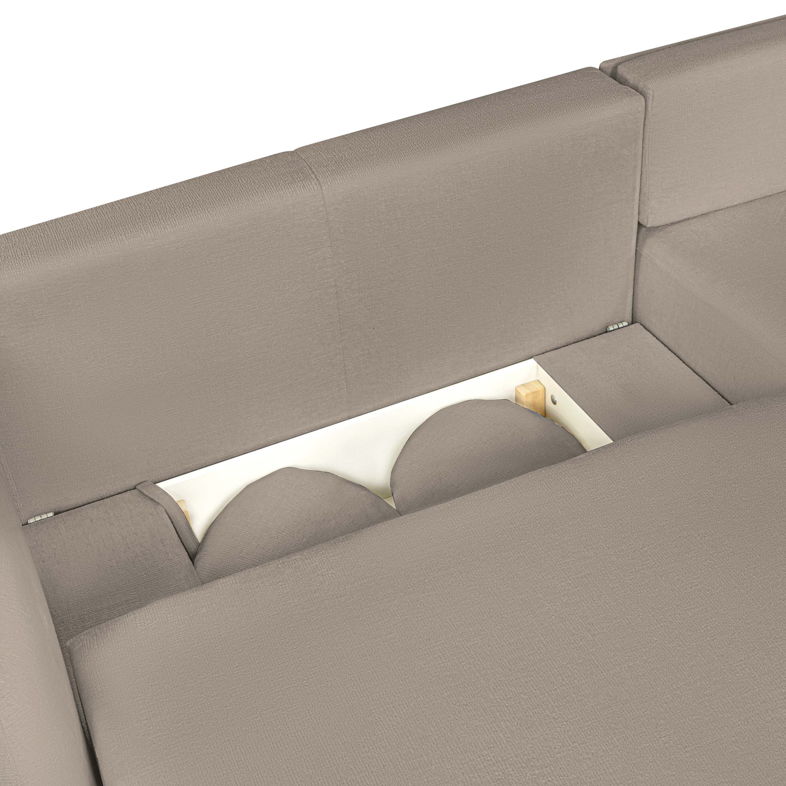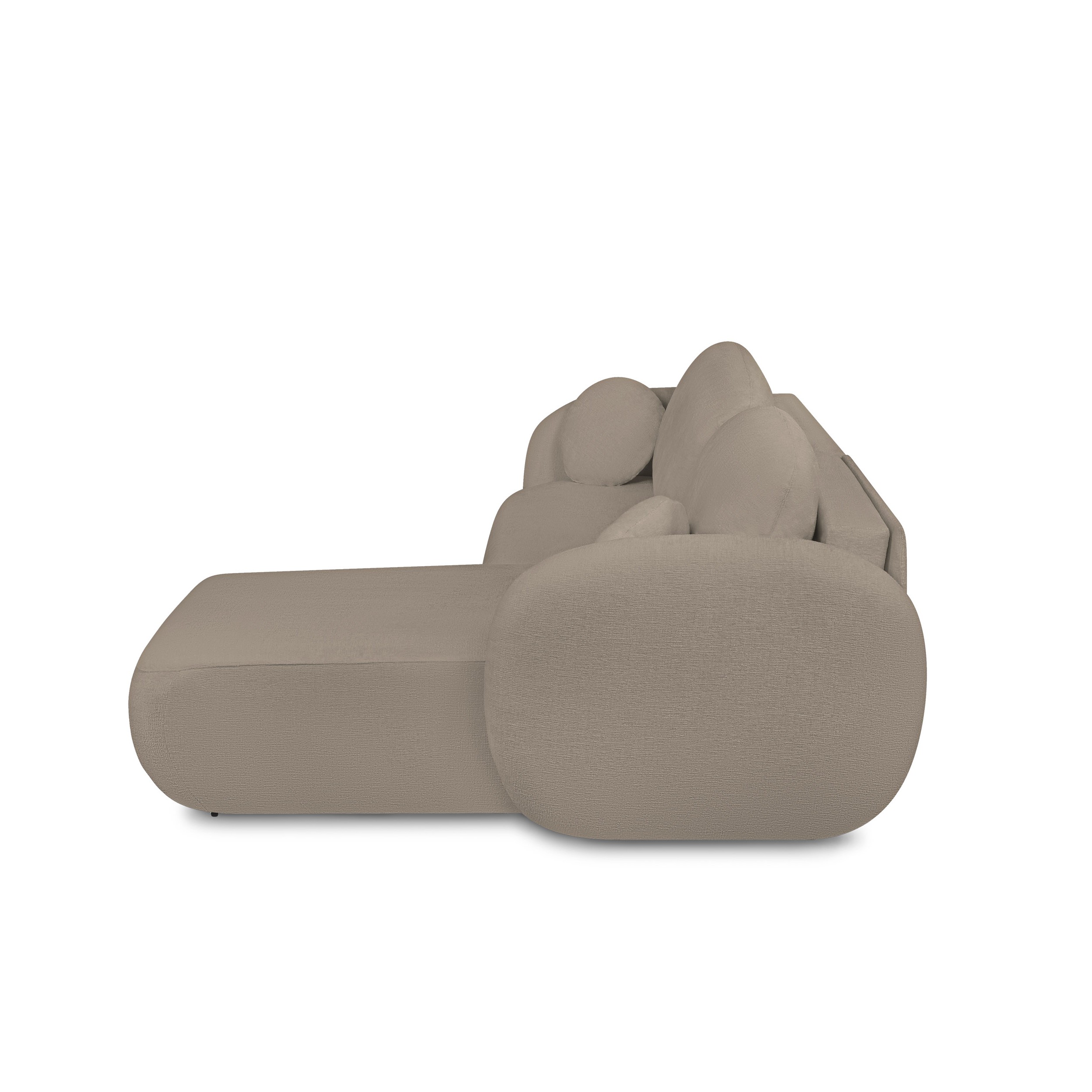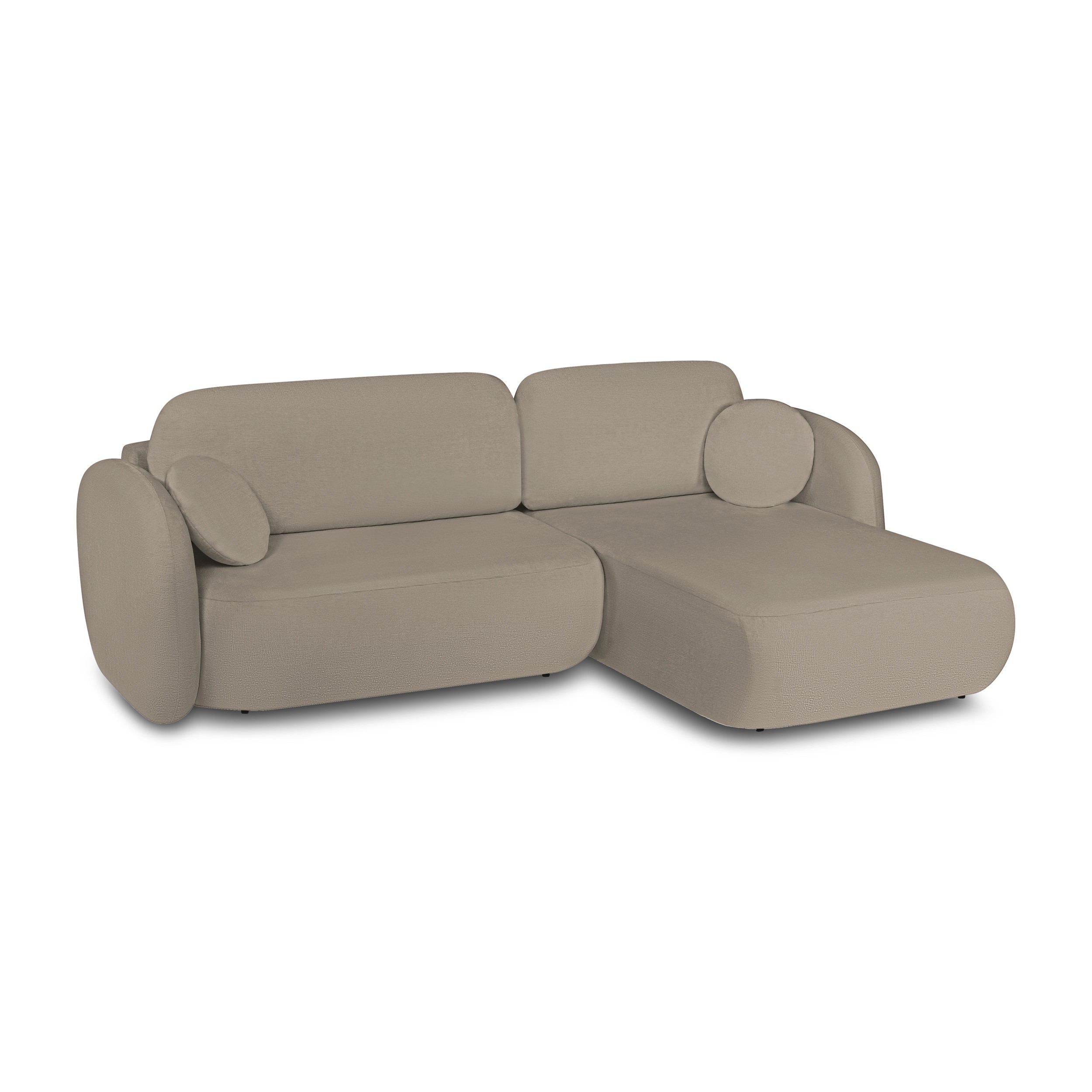 Divano angolare destro convertibile CARLOTTA 4 posti in tessuto bouclé taupe