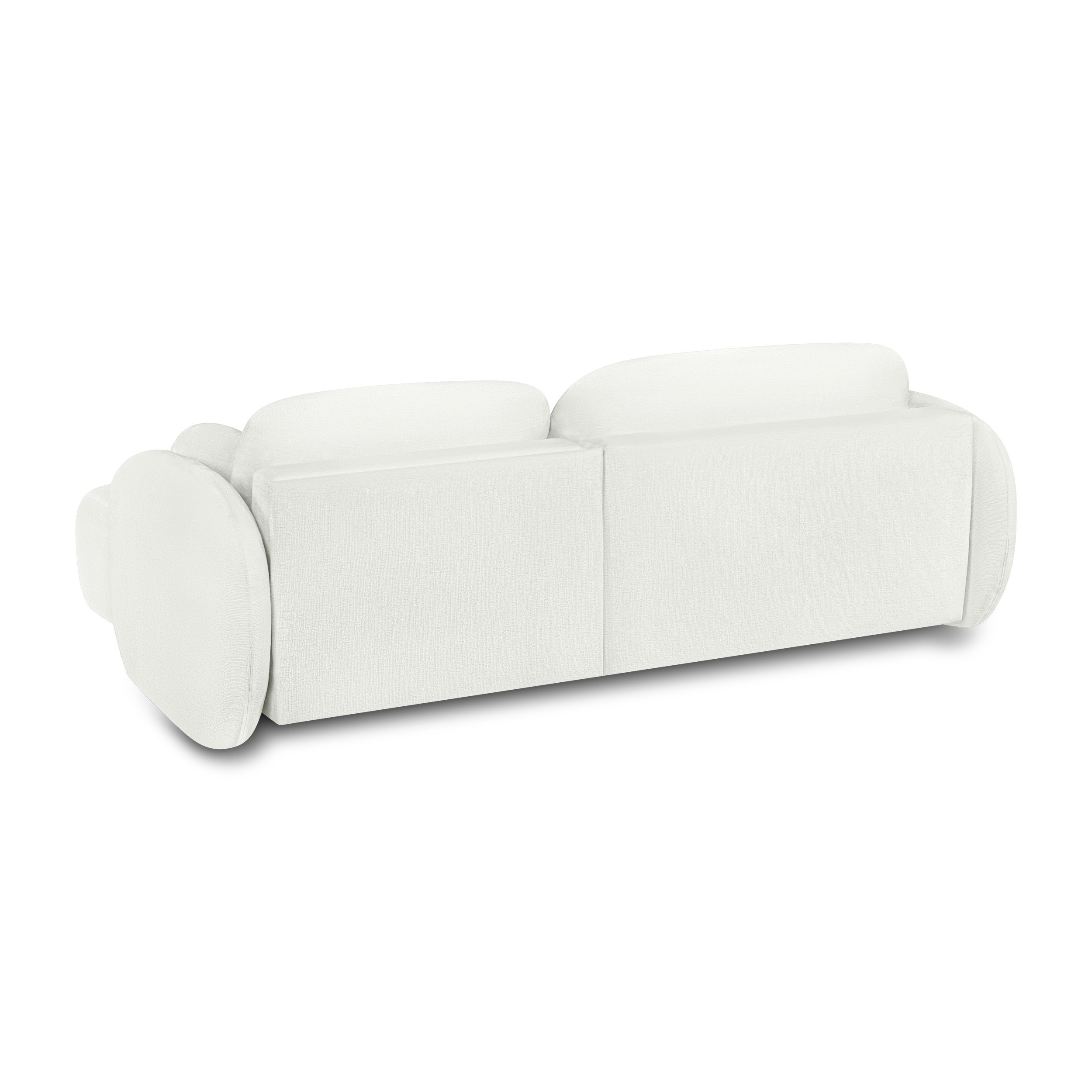 Rivestito in tessuto ciniglia, il divano CARLOTTA punta sulla morbidezza. Questo materiale testurizzato, particolarmente di tendenza, invita al relax e crea un immediato effetto cocooning. Il suo colore si armonizza con una moltitudine di stili di arredamento, che siano naturali, contemporanei o minimalisti.Un divano tanto funzionale quanto estetico