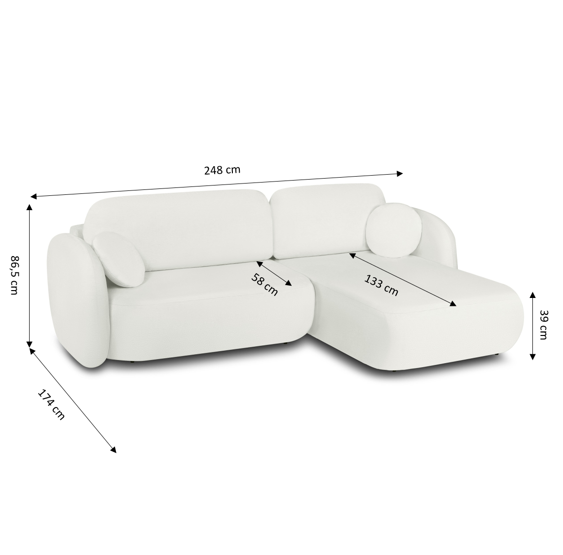 Con il suo morbido tessuto ciniglia e il suo design arrotondato, il divano angolare CARLOTTA trasforma il vostro salotto in un accogliente rifugio. Pratico e confortevole, si adatta a tutte le vostre esigenze grazie al vano contenitore integrato e alla funzione convertibile.