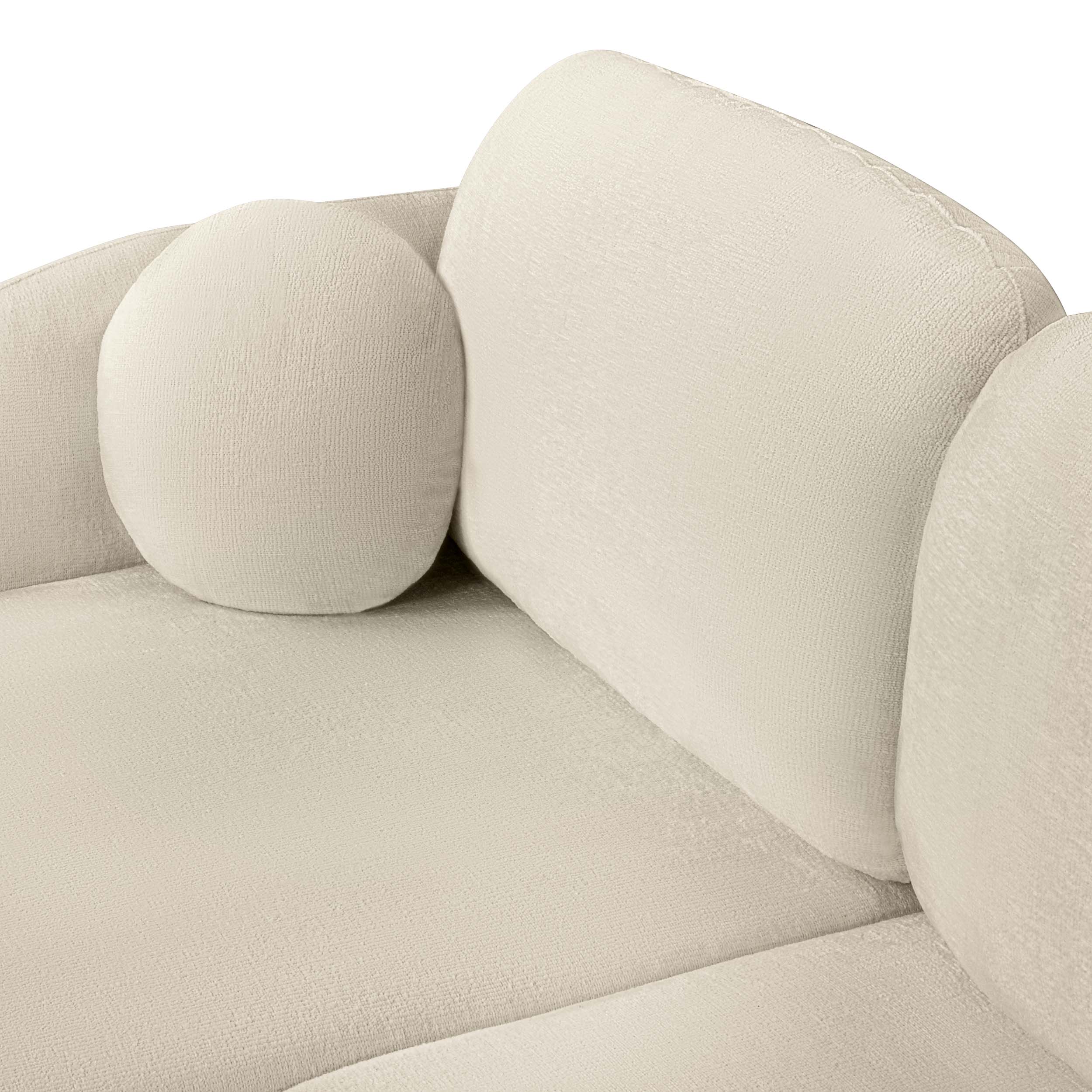 Rivestito in tessuto bouclé, il divano CARLOTTA punta sulla morbidezza. Questo materiale testurizzato, particolarmente di tendenza, invita al relax e crea un immediato effetto cocooning. Il suo colore si armonizza con una moltitudine di ambienti decorativi, siano essi naturali, contemporanei o minimalisti.