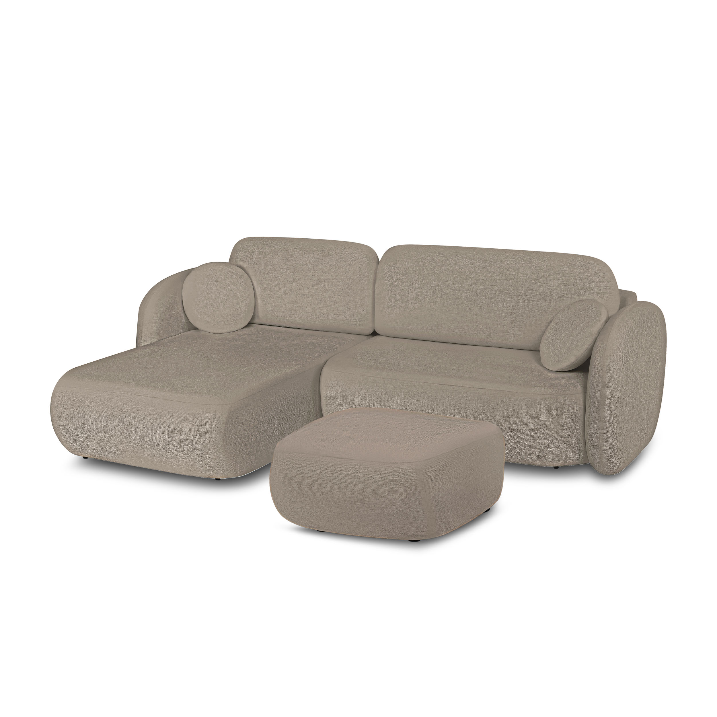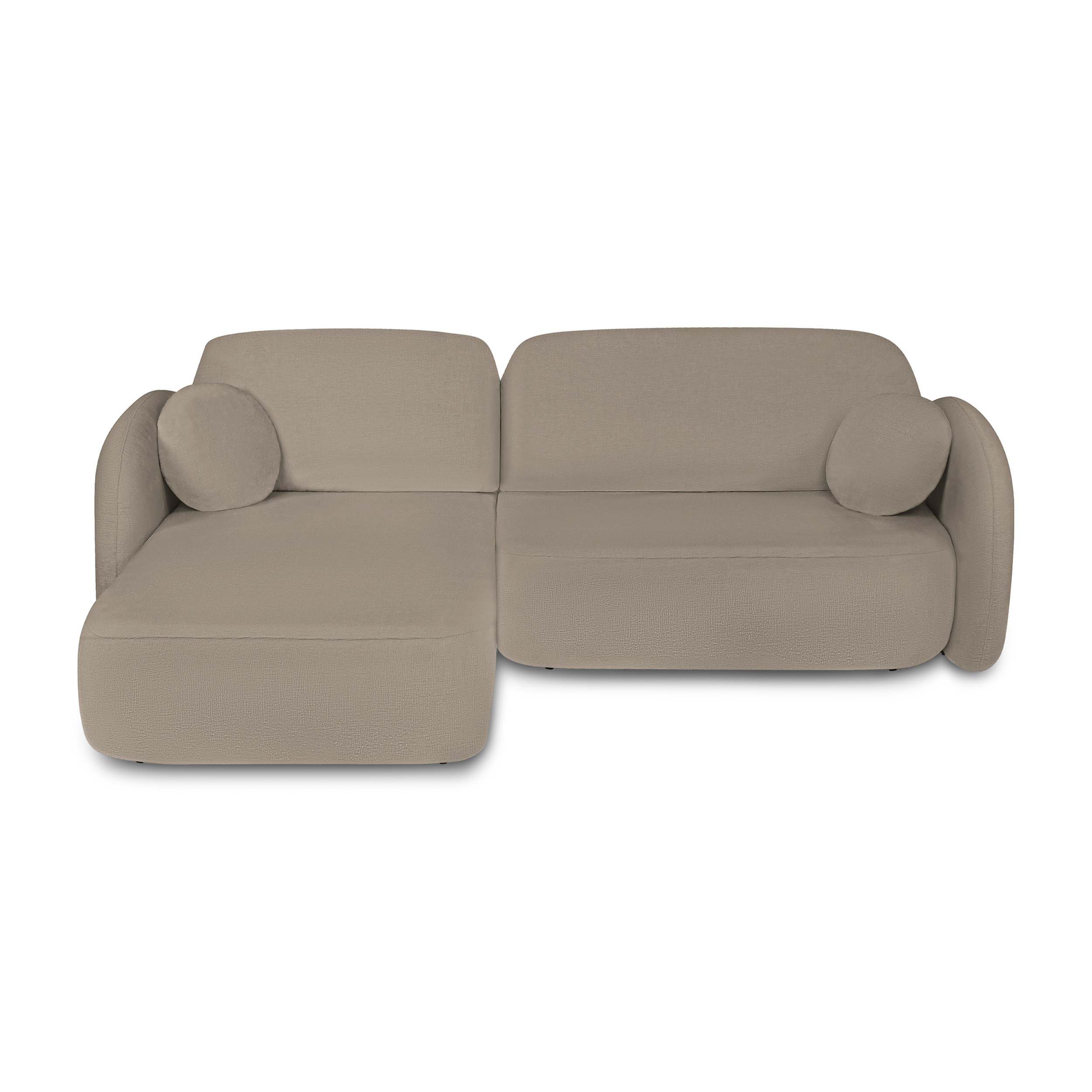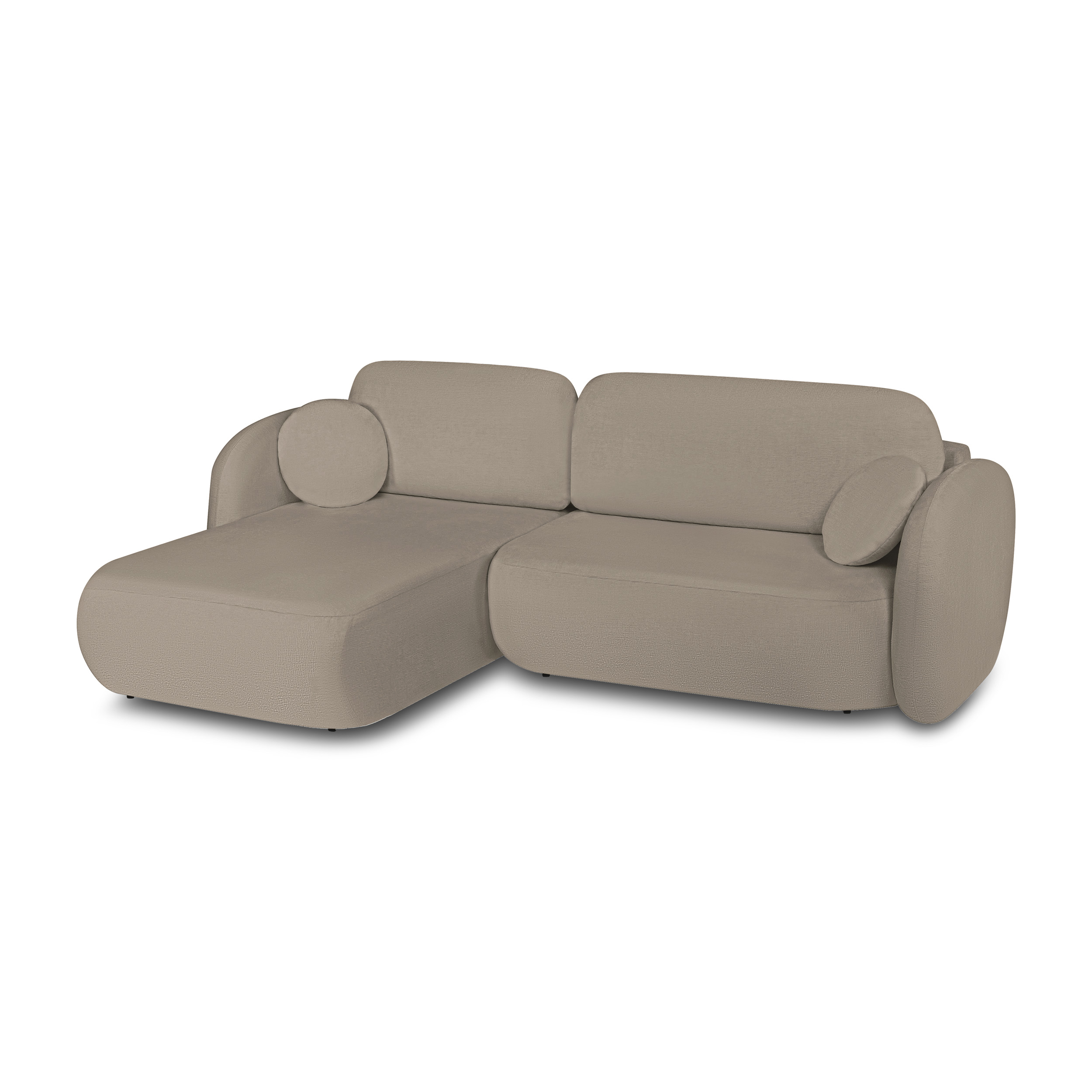 Divano angolare sinistro convertibile CARLOTTA 4 posti in tessuto bouclé color talpa