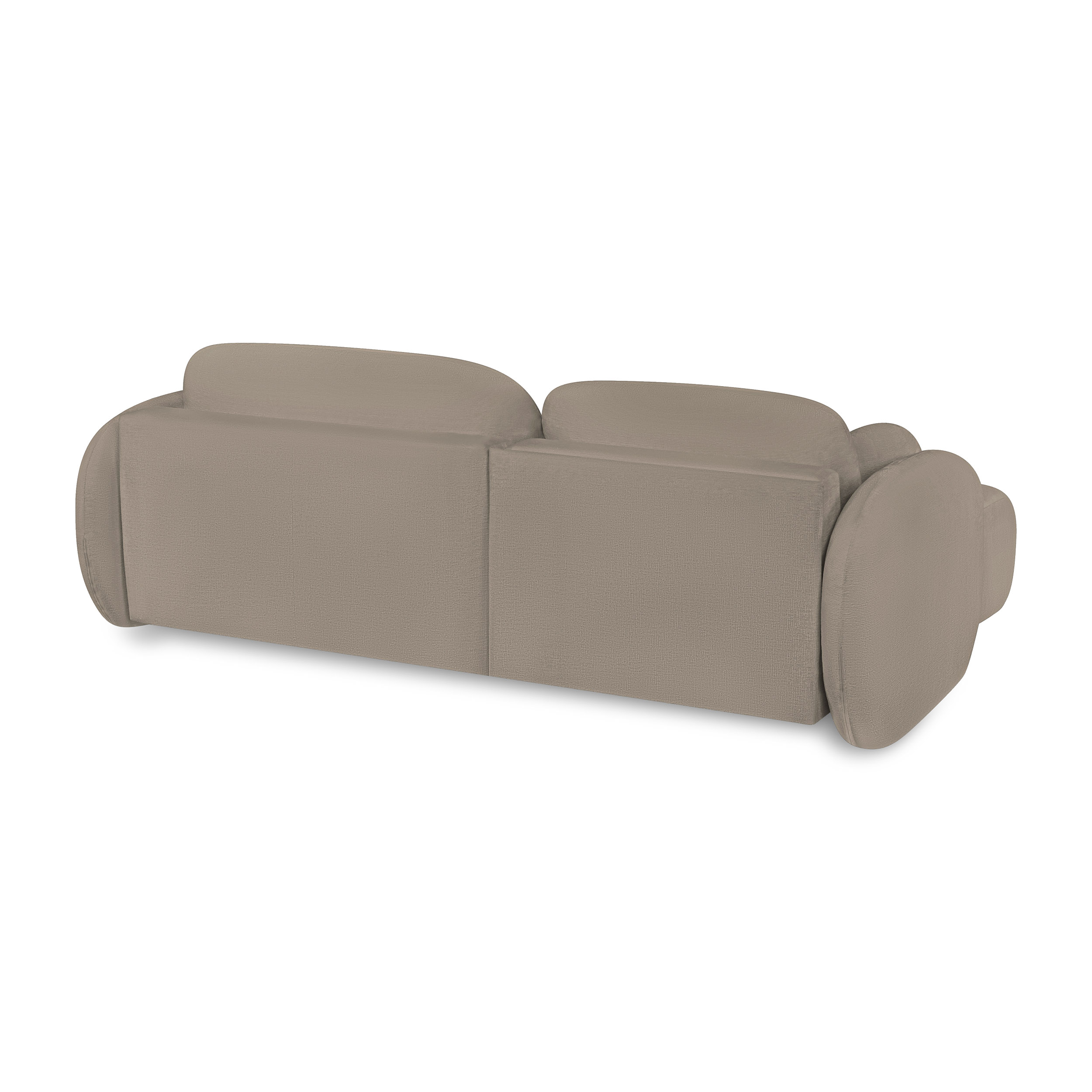 Rivestito in tessuto bouclé, il divano CARLOTTA punta sulla morbidezza. Questo materiale testurizzato, particolarmente di tendenza, invita al relax e crea un immediato effetto cocooning. Il suo colore si armonizza con una moltitudine di ambienti decorativi, siano essi naturali, contemporanei o minimalisti.