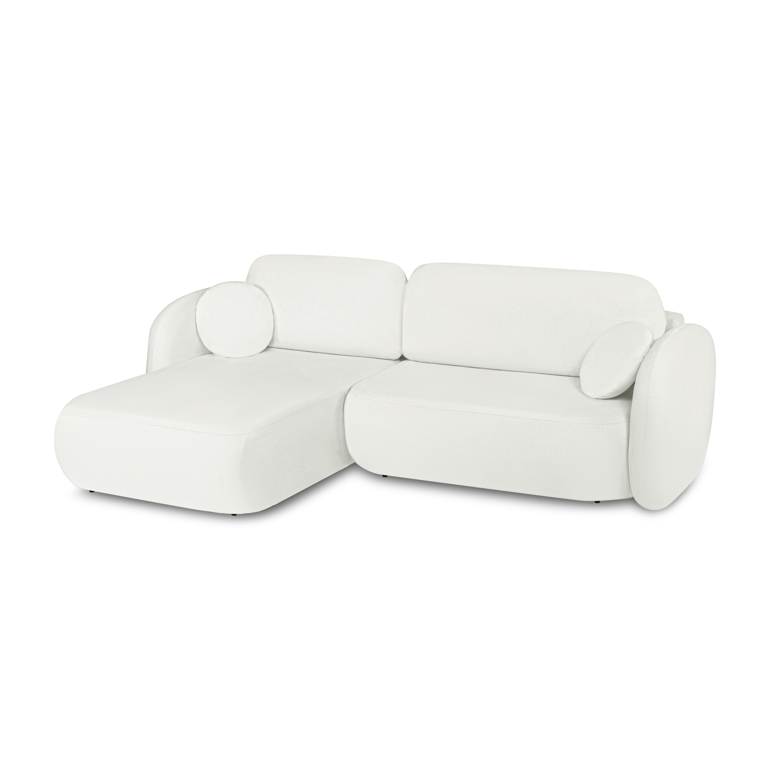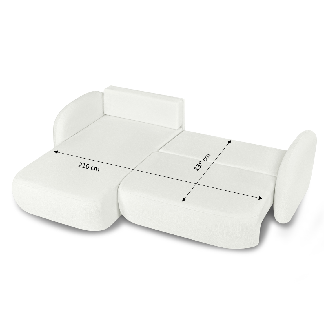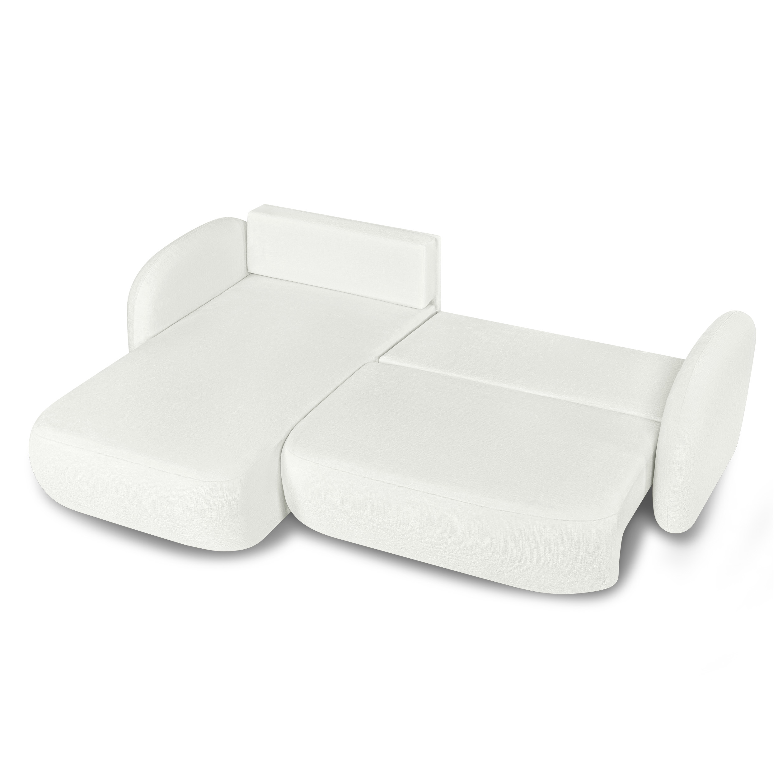 Divano angolare sinistro convertibile CARLOTTA 4 posti in tessuto ciniglia écru