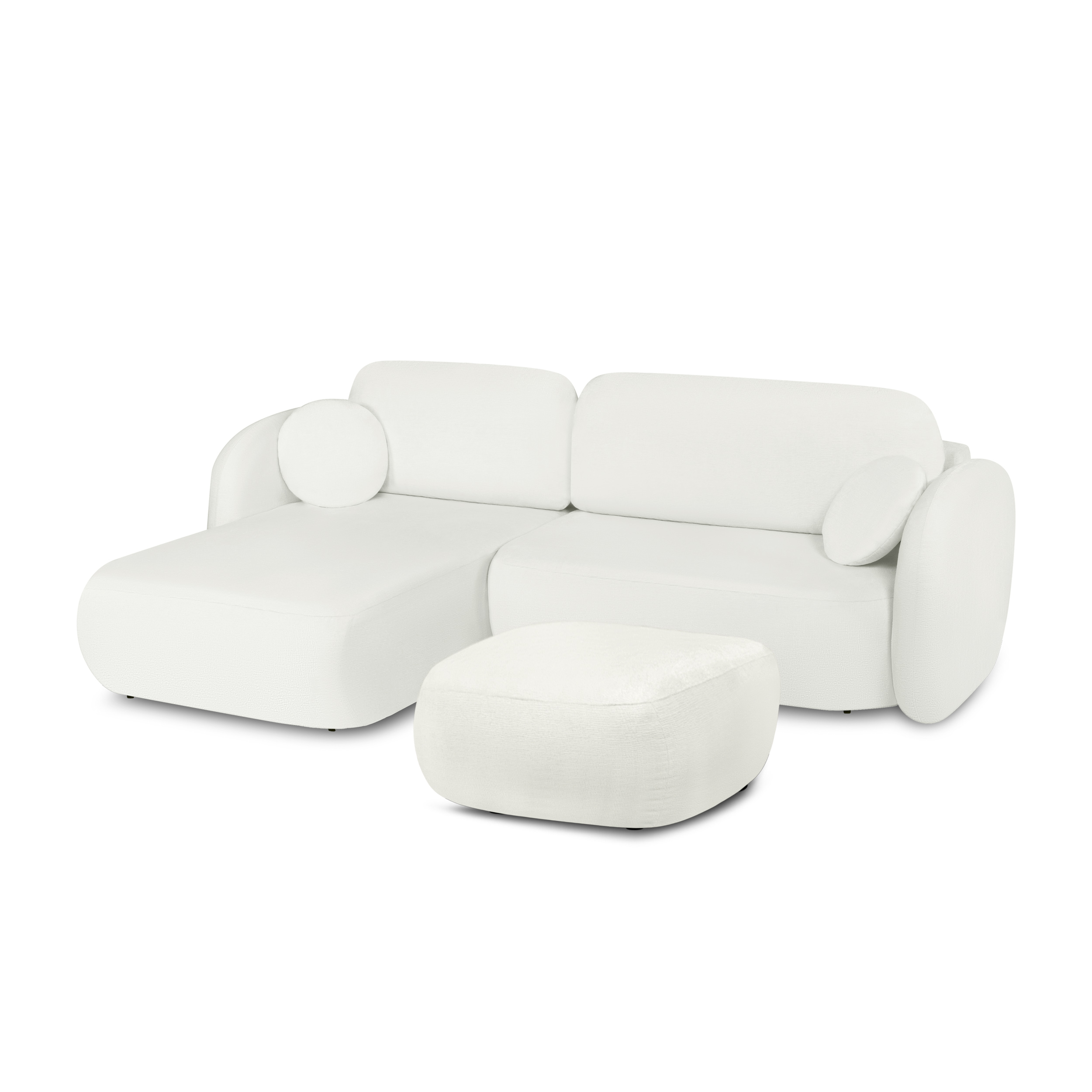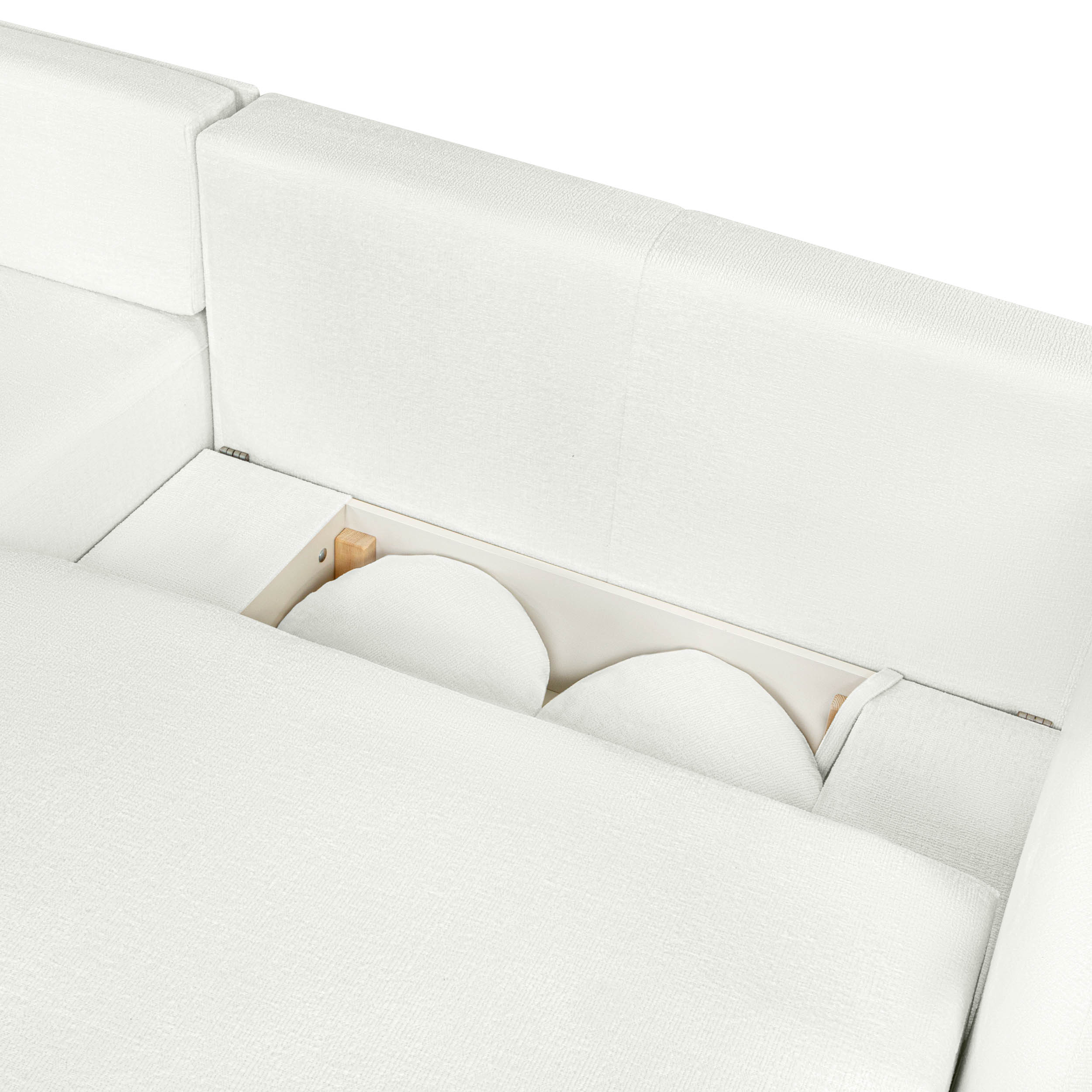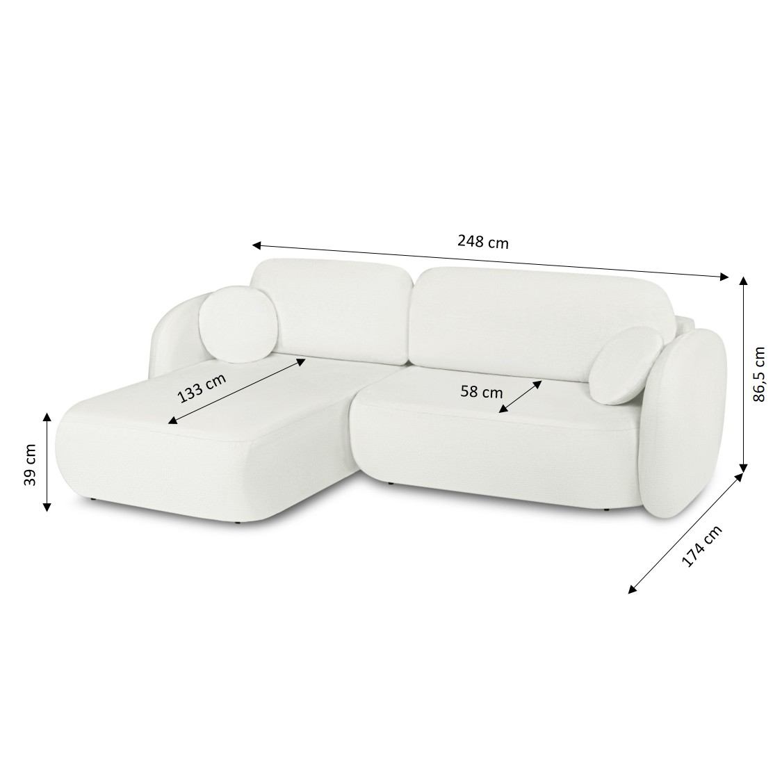 Divano angolare sinistro convertibile CARLOTTA 4 posti in tessuto ciniglia écru