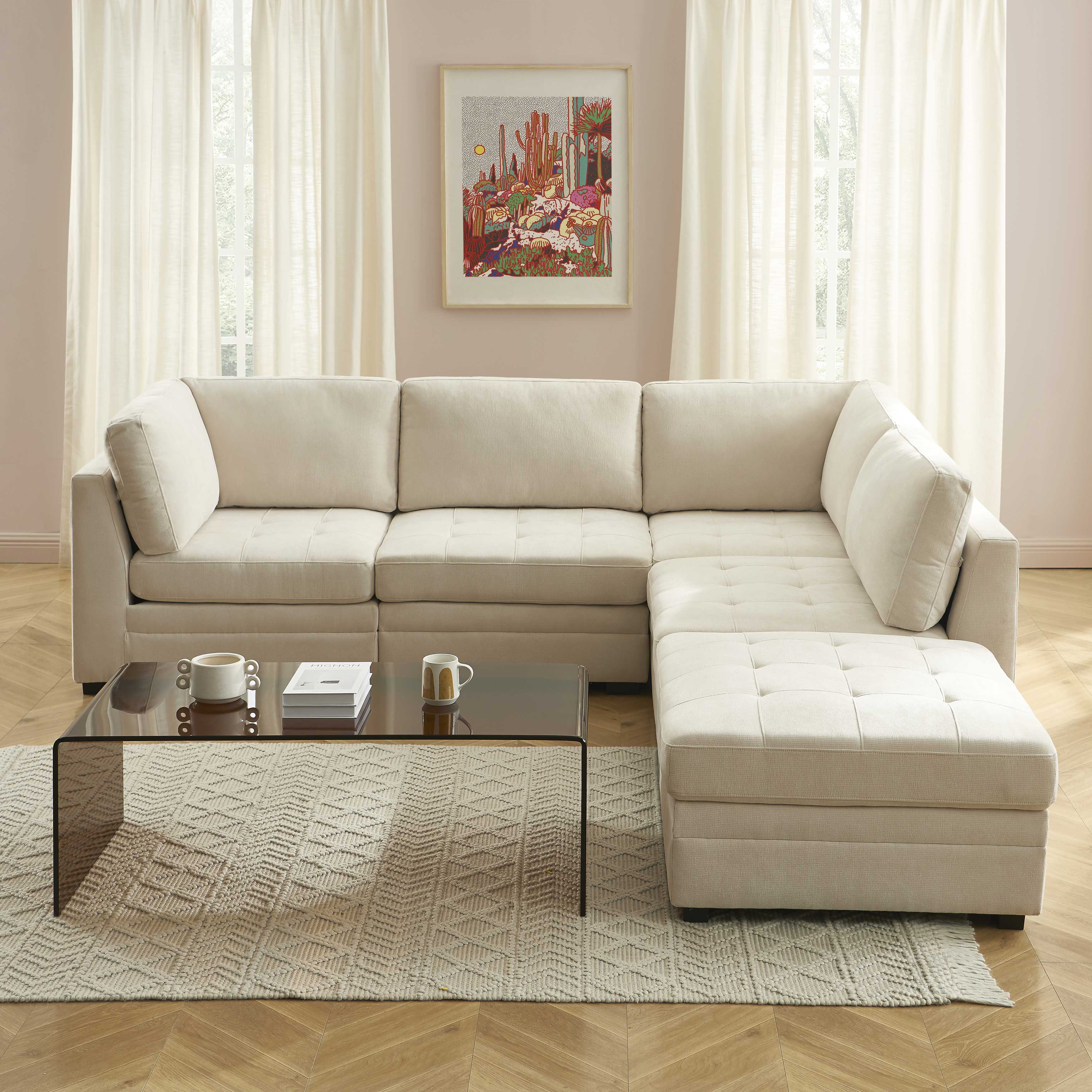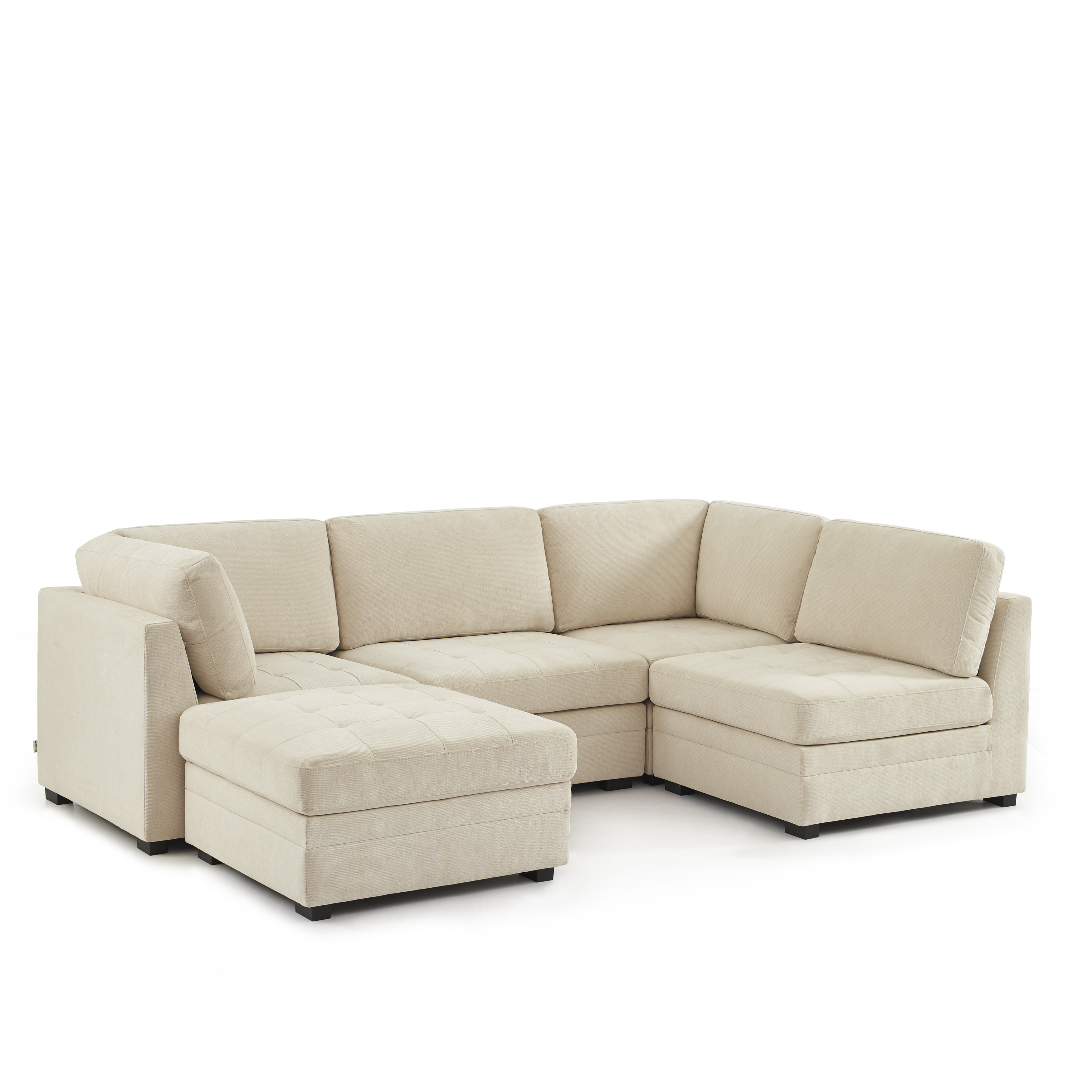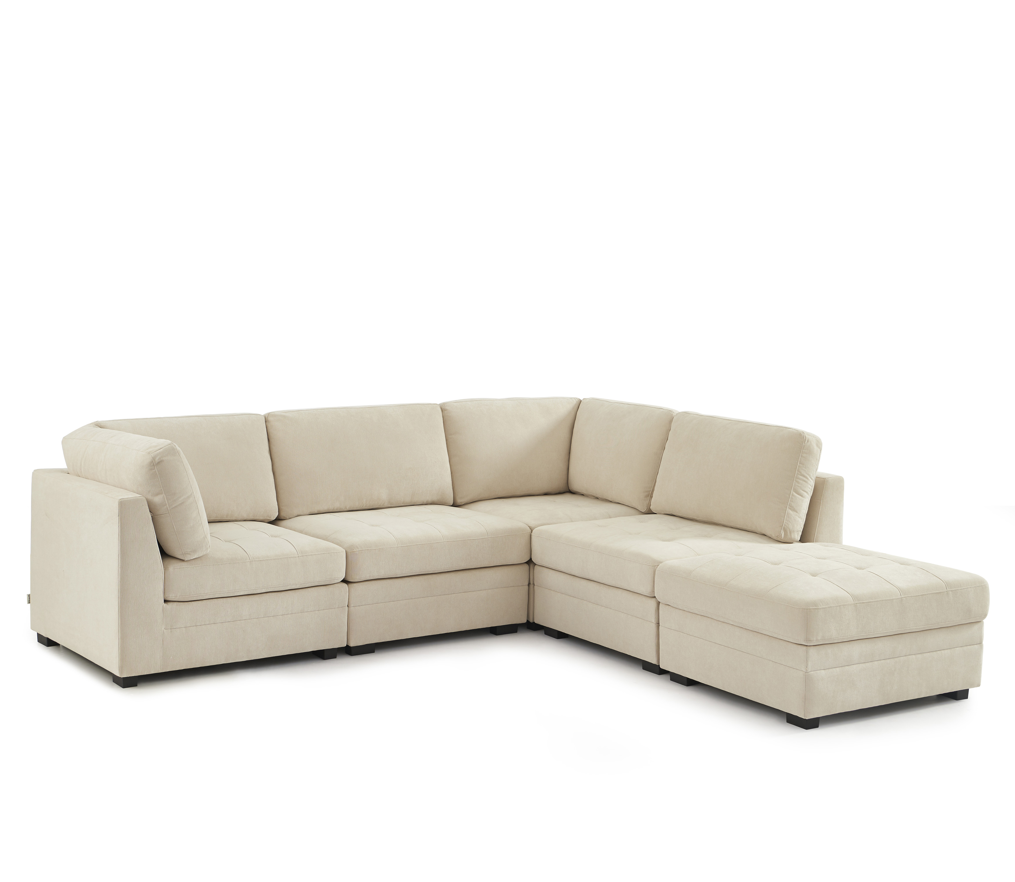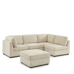 Composto da poltrone e un pouf, il divano angolare BILLIE si adatta ai tuoi desideri per creare un salotto accogliente e moderno.