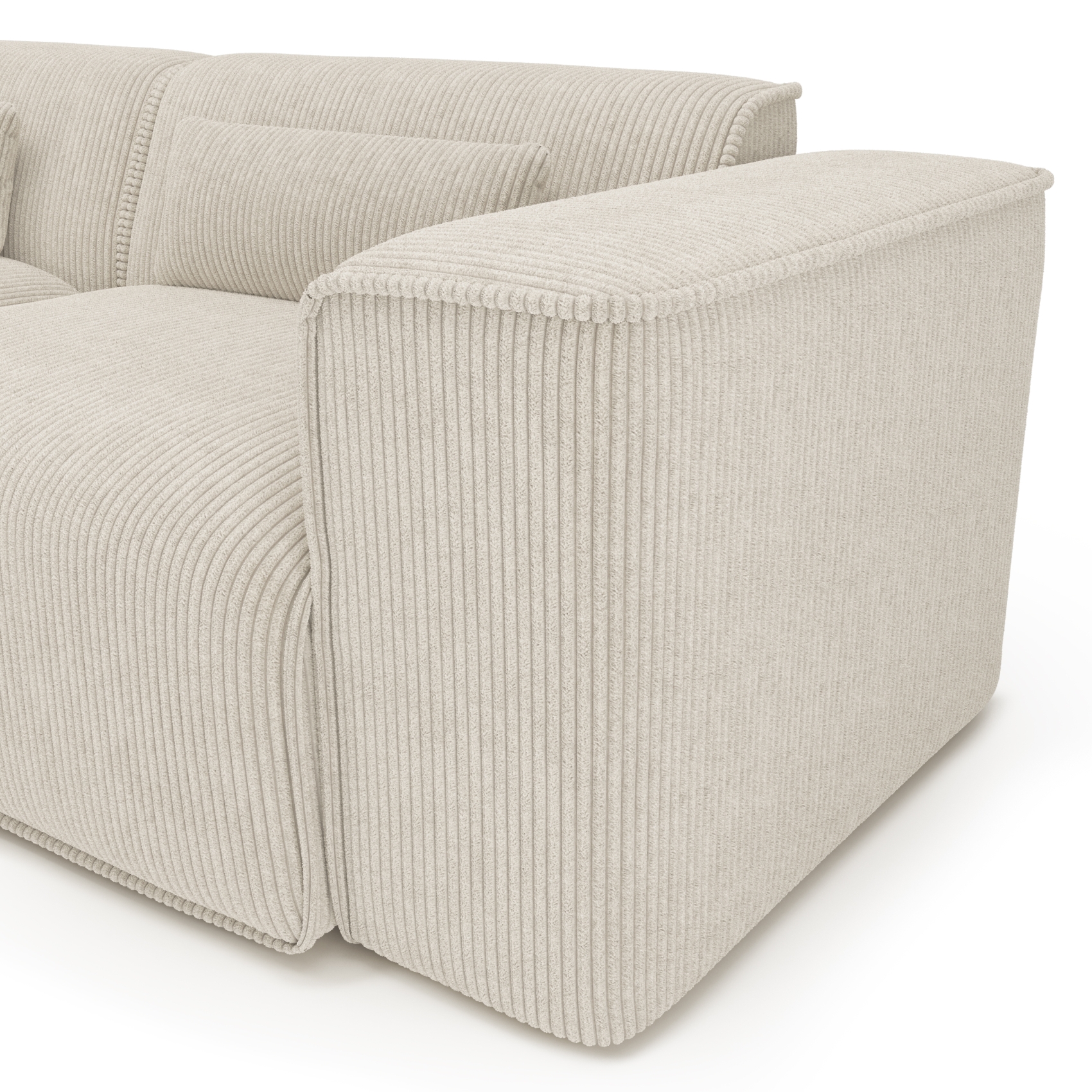 Rivestito in velluto a coste 100% poliestere con una grammatura di 465 g/m², il divano NUNA si distingue per la sua tonalità facile da abbinare. Le sue linee contemporanee e il suo aspetto sobrio gli consentono di integrarsi in molti ambienti: moderni, minimalisti o naturali.