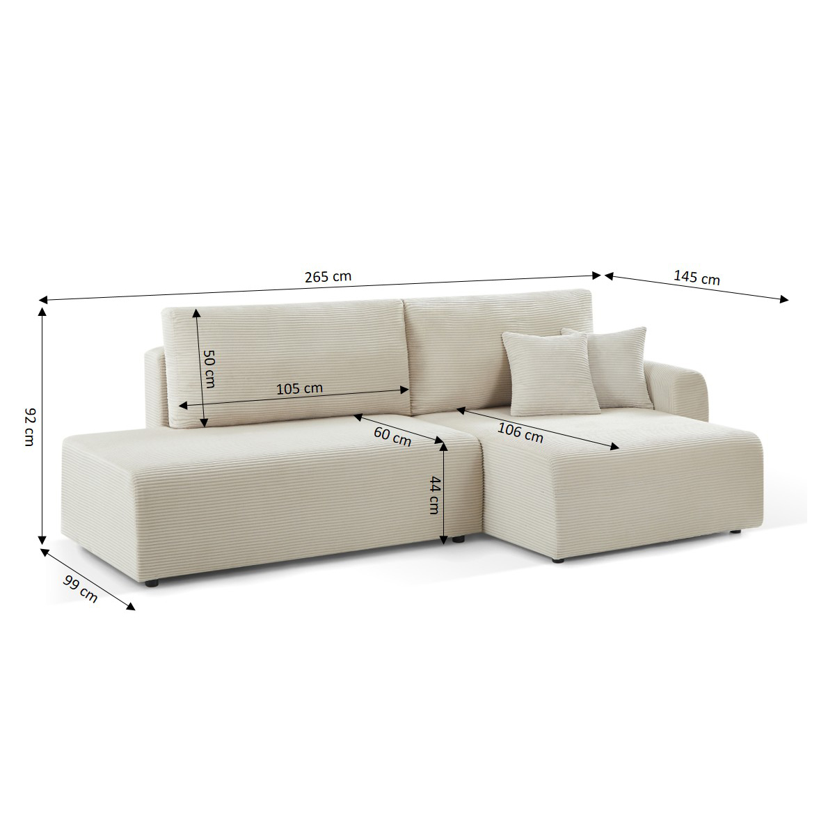 - L265 x P145 x H92