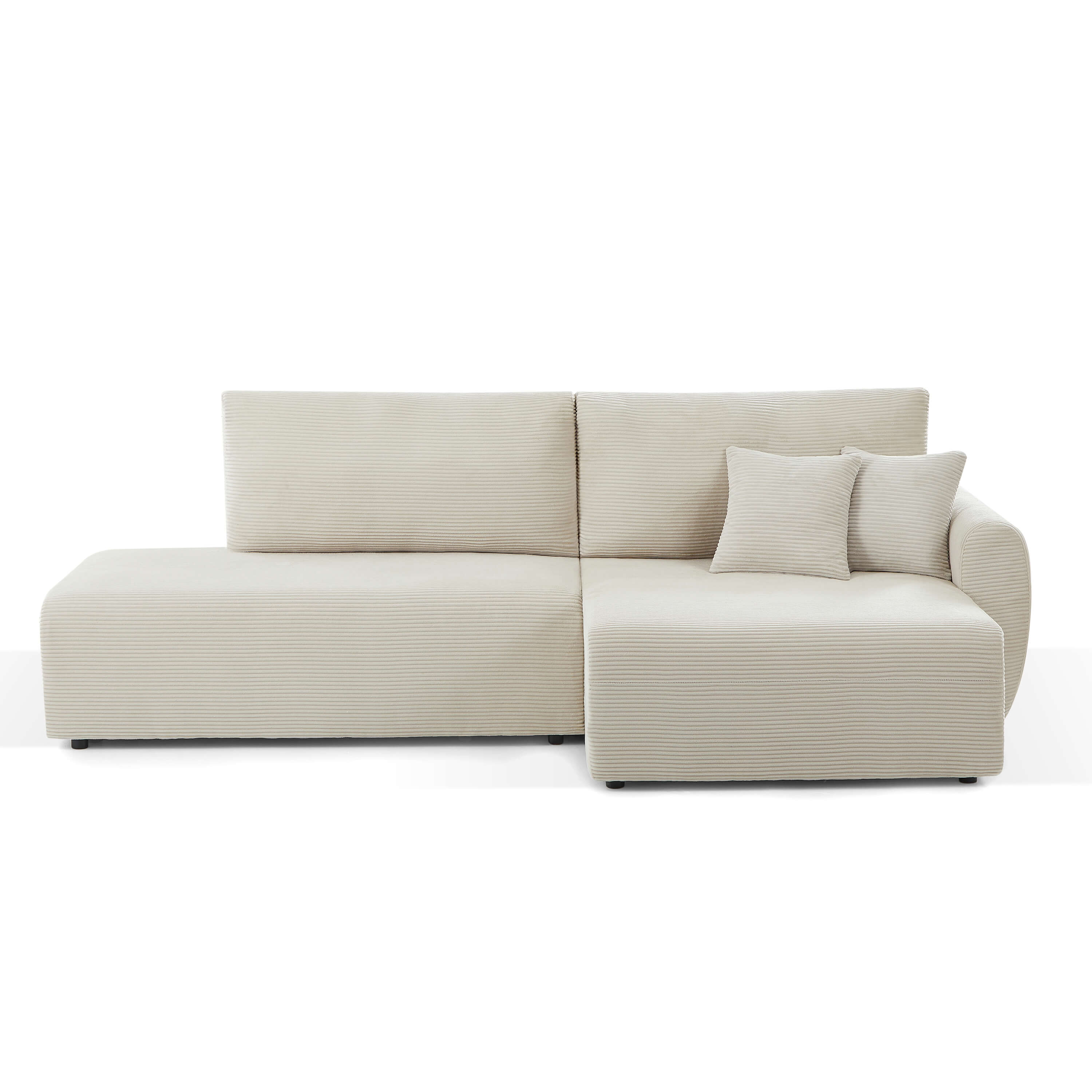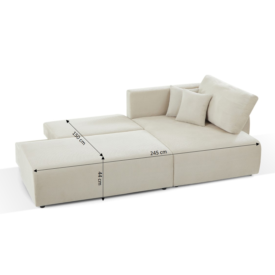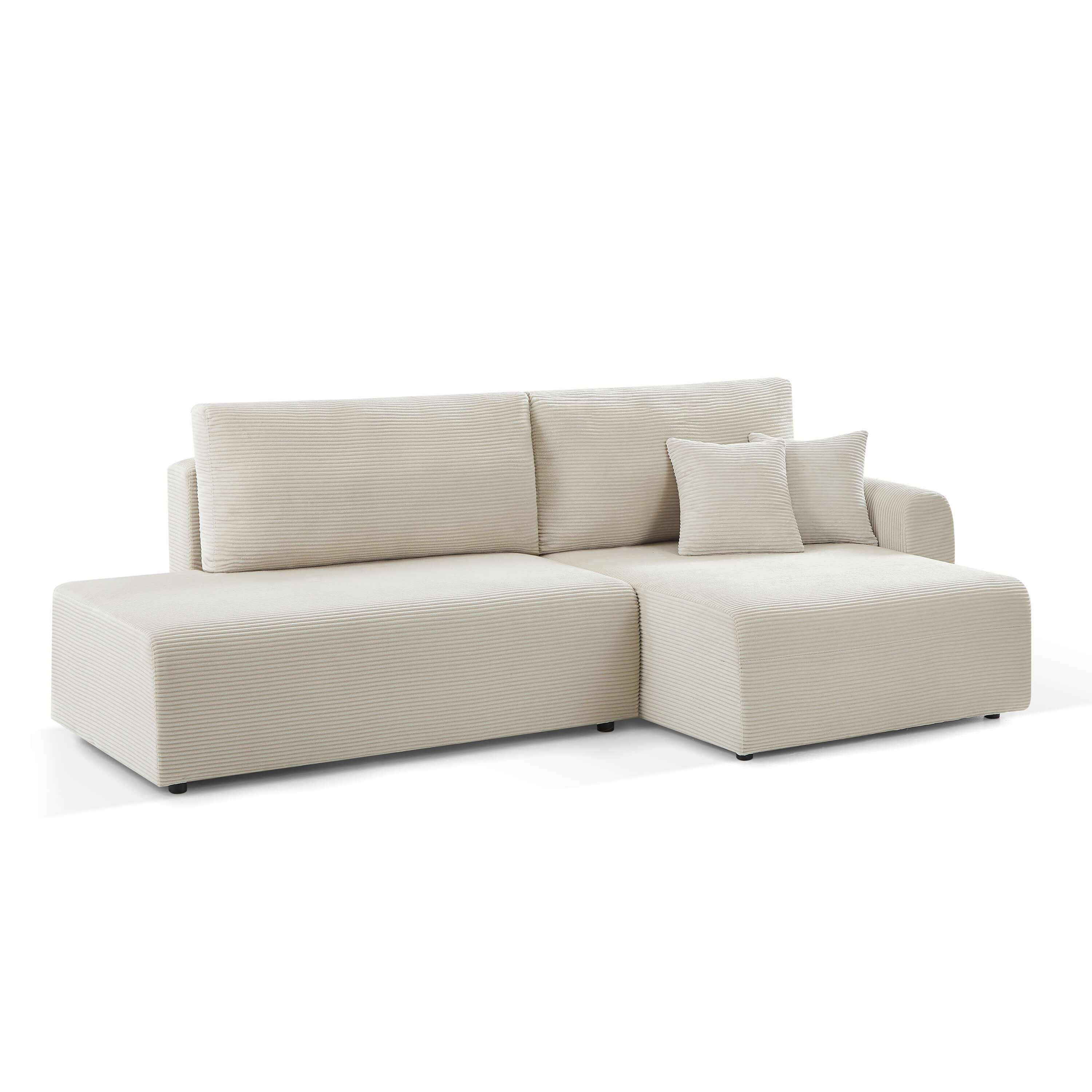 Divano angolare destro aperto trasformabile DANILO 4 posti in velluto a coste beige