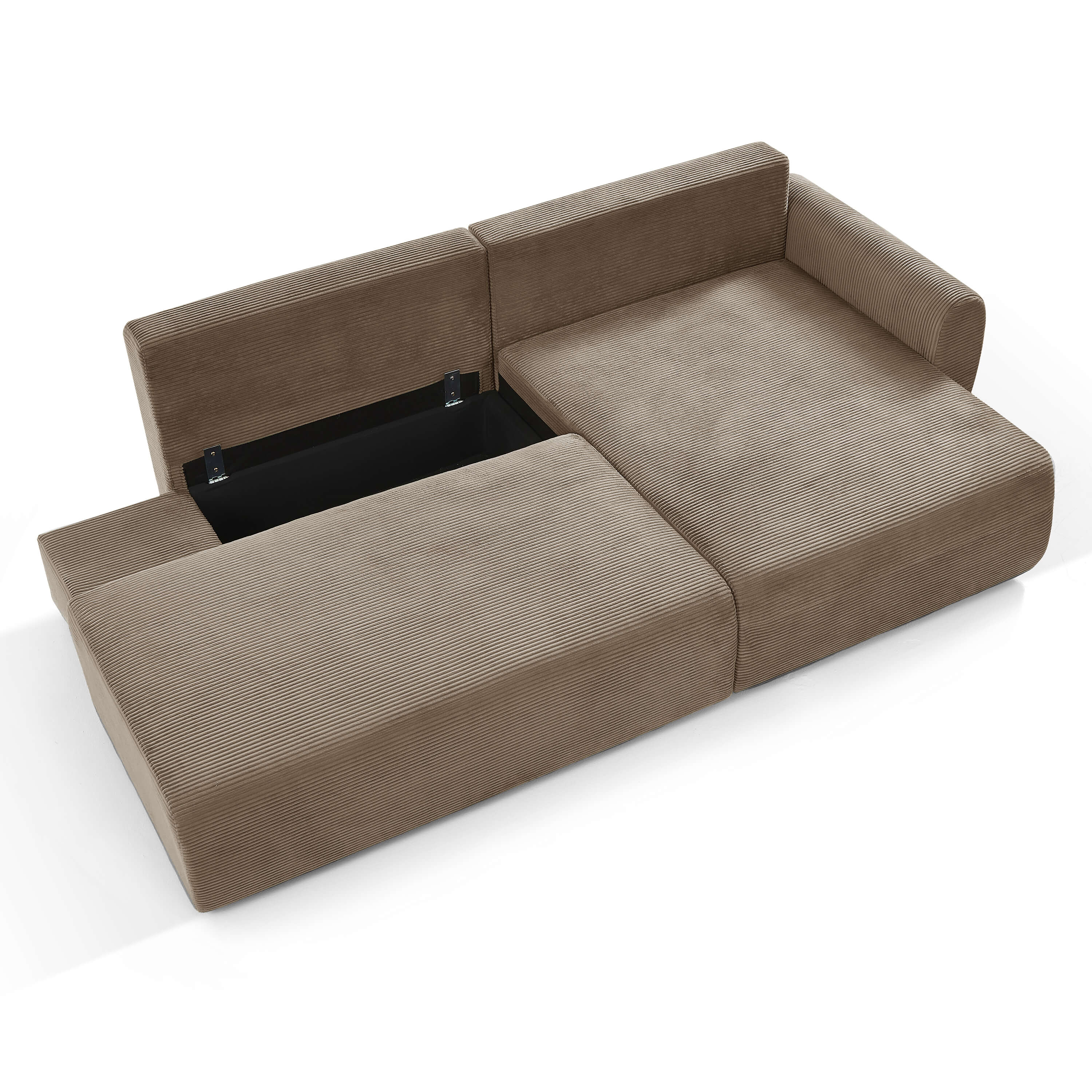 Il divano angolare aperto DANILO seduce con il suo design contemporaneo e il suo rivestimento in velluto a coste, morbido al tatto e di tendenza. Le sue linee pulite e le sue forme accoglienti creeranno un'atmosfera intima nel vostro interno, integrandosi facilmente con diversi stili di arredamento.