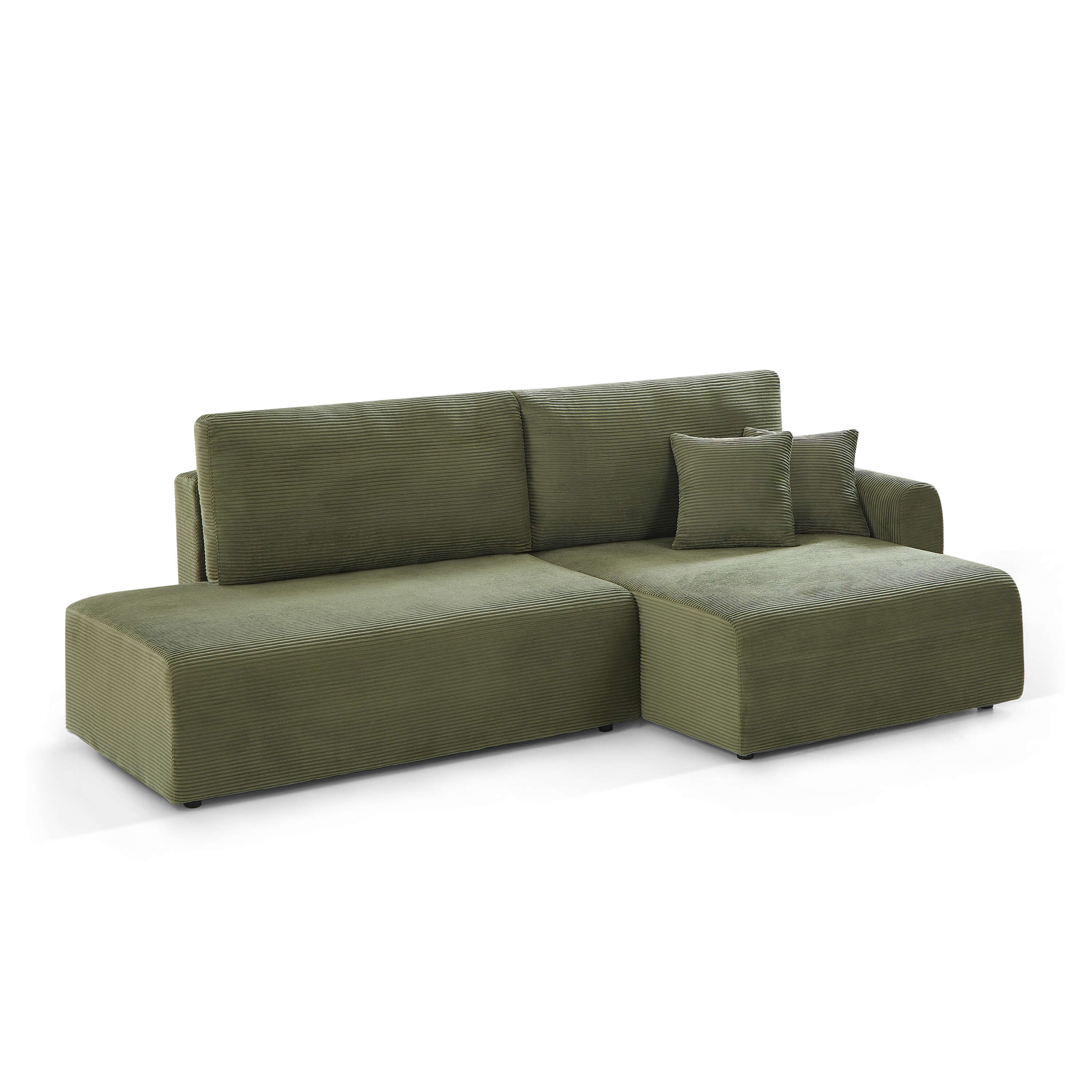 Divano angolare destro aperto trasformabile DANILO 4 posti in velluto a coste verde