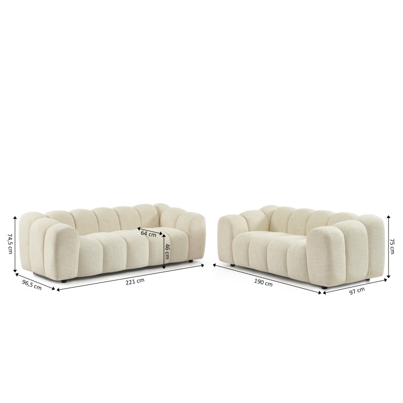 Canapé 3 places : L221 x P96,5 x H74,5 - Canapé 2 places : L190 x P97 x H75