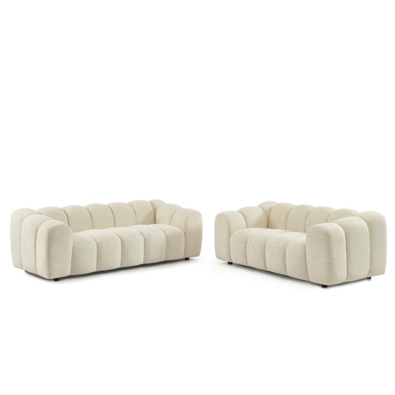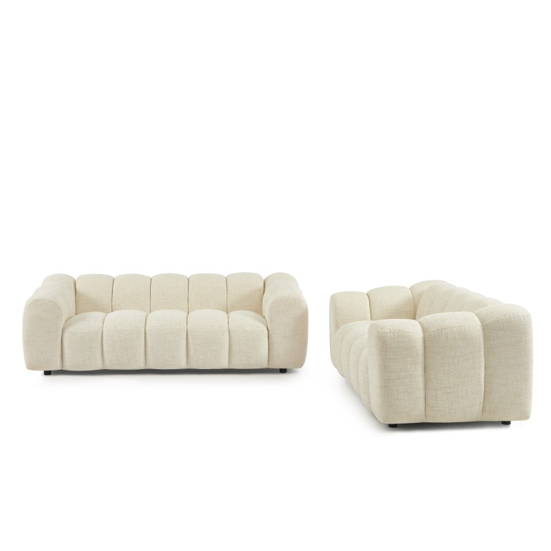 Set divani fissi 3+2 SUNNY in tessuto tweed écru