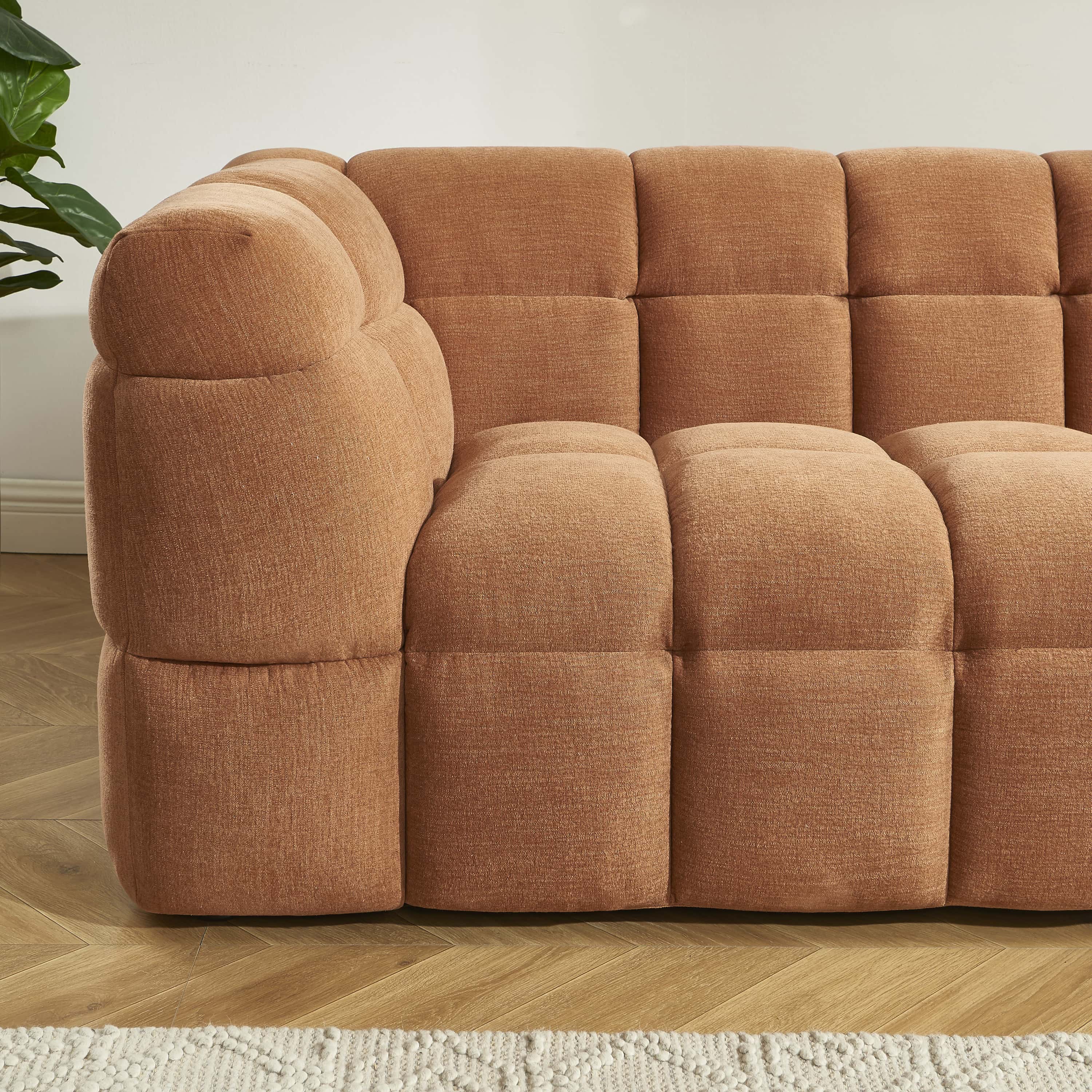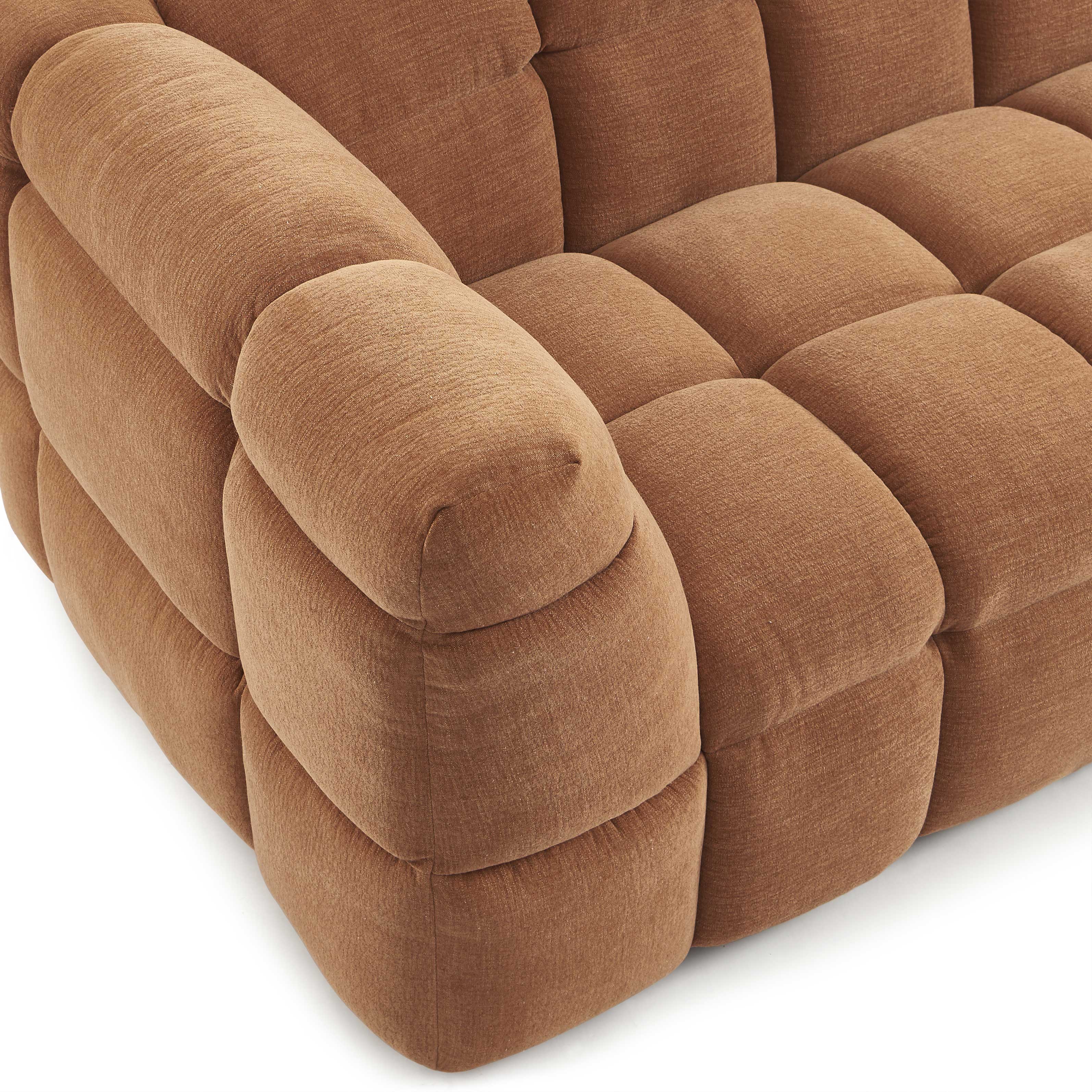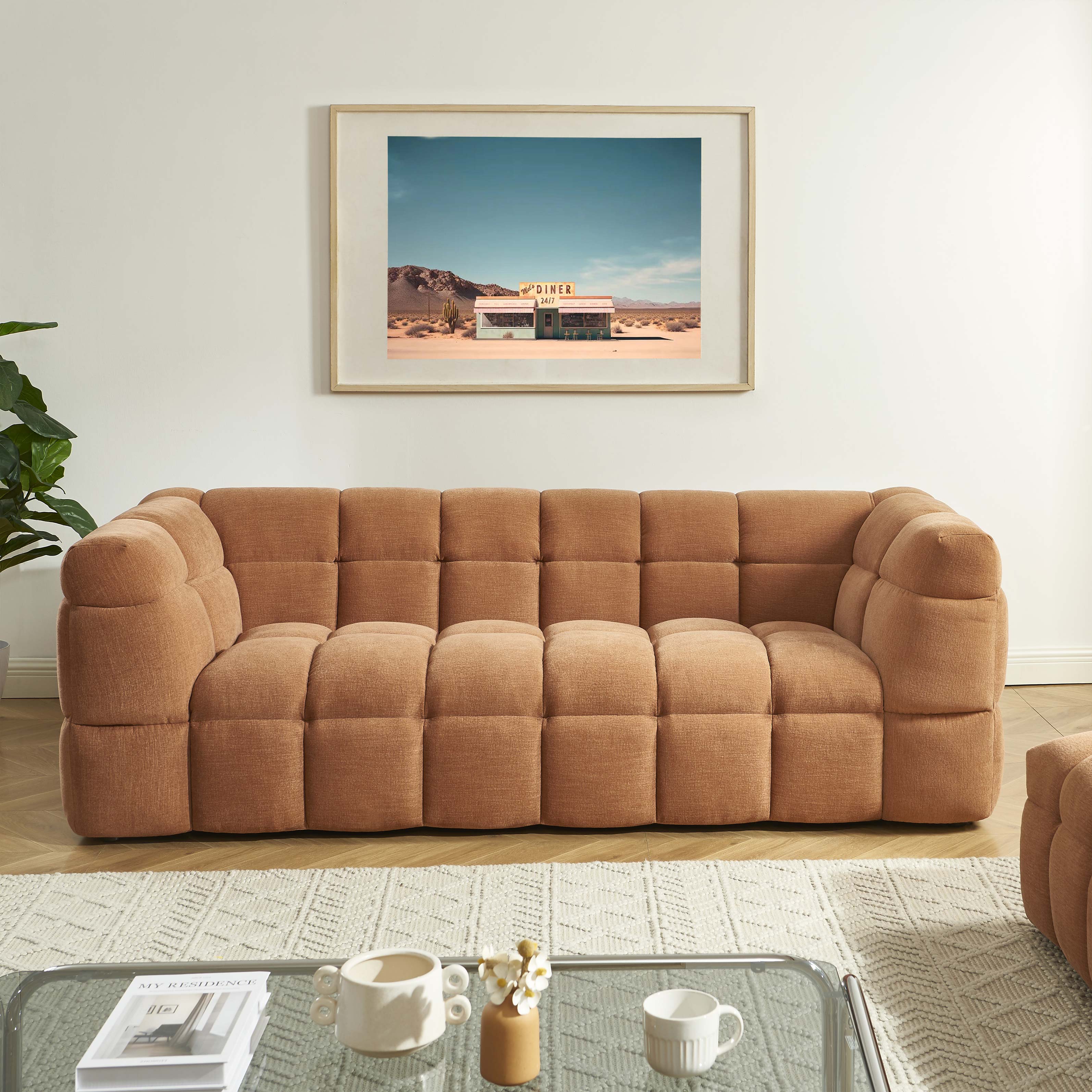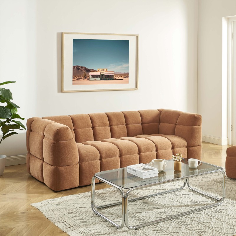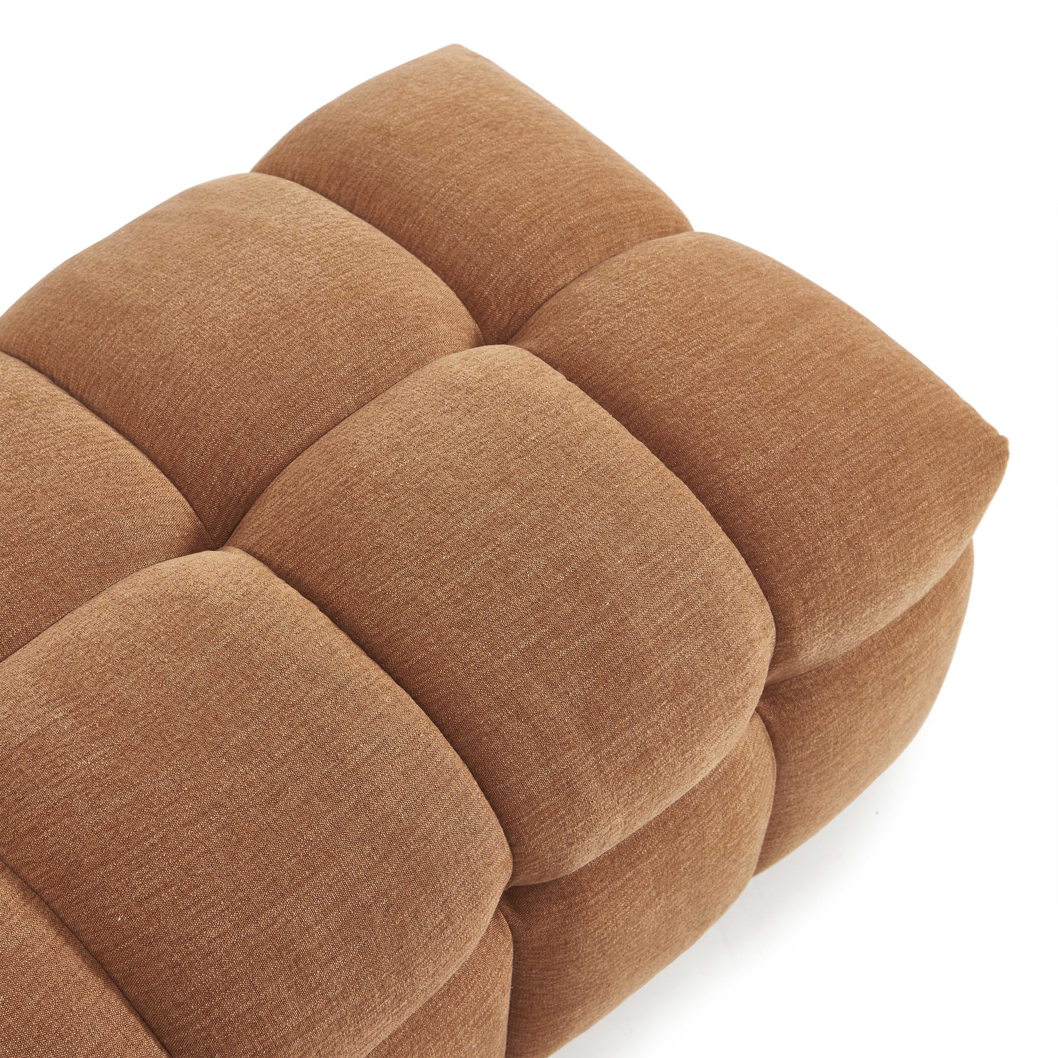Set divano lineare a 3 posti + pouf MOODY in tessuto lino scoiattolo