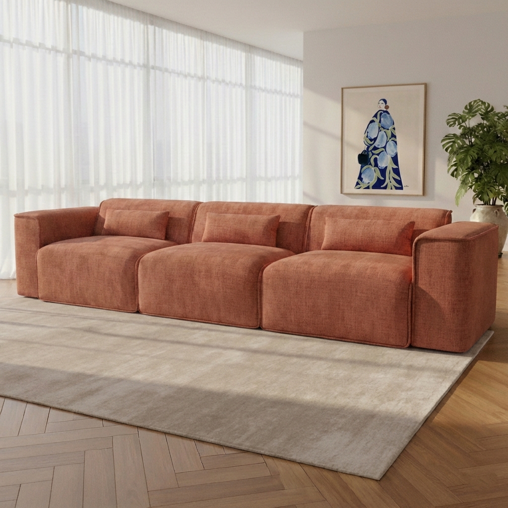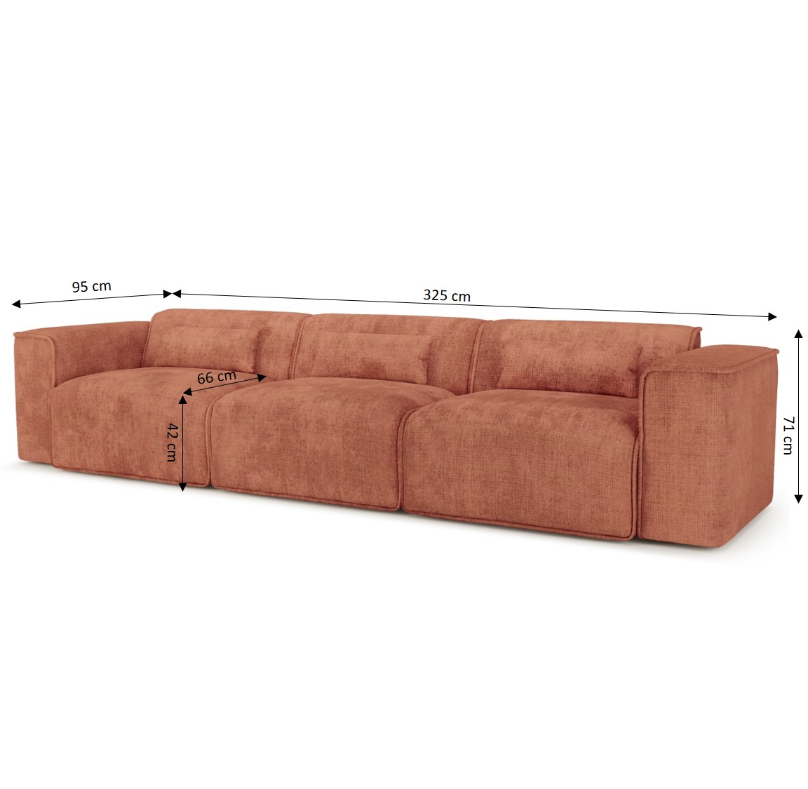 • Divano fisso NUNA 4/5 posti in tessuto terracotta