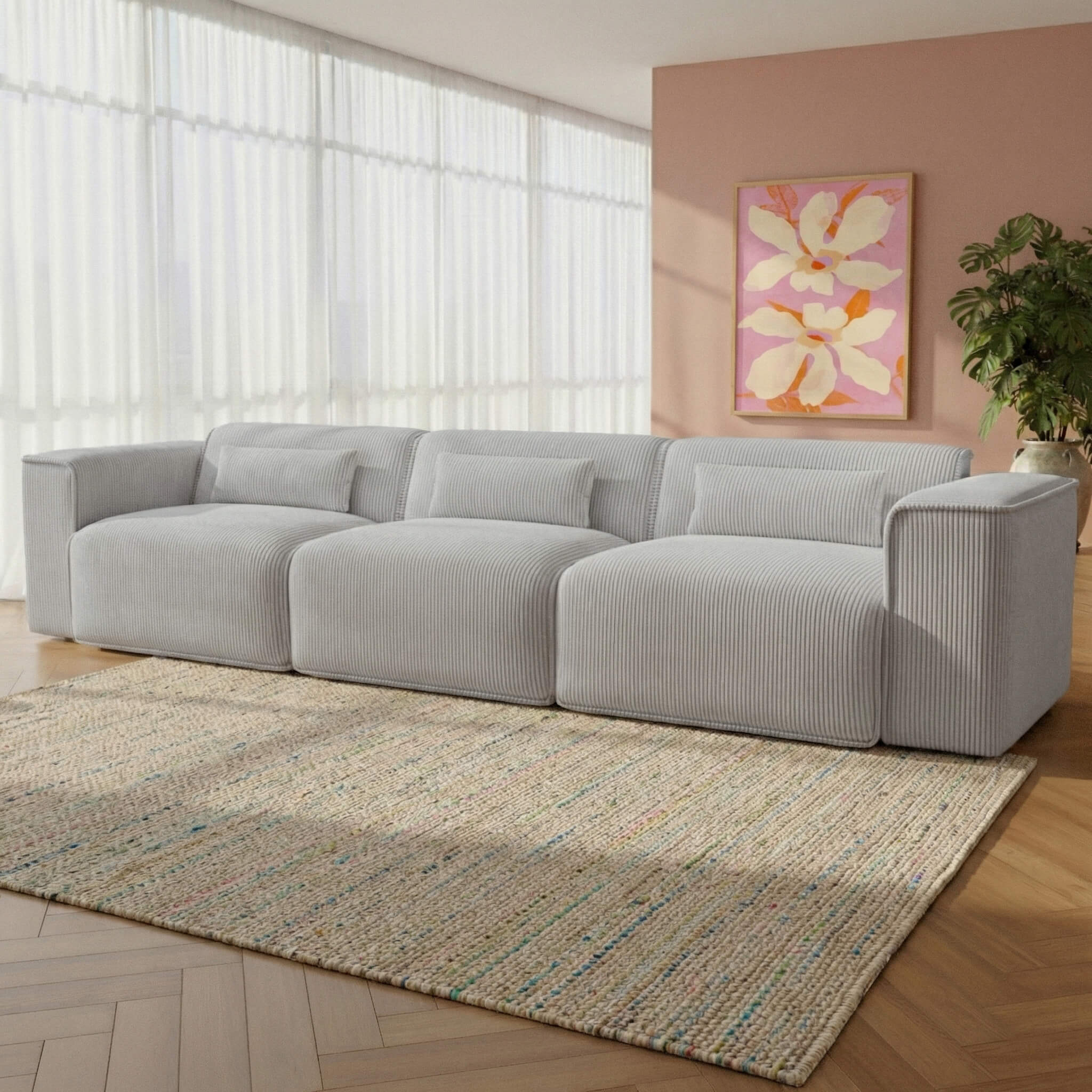 Rivestito in morbido velluto a coste, NUNA si distingue per la sua morbidezza. La sua tonalità sobria ed elegante gli permette di integrarsi naturalmente in qualsiasi tipo di arredamento, sia esso contemporaneo, scandinavo o minimalista. Un divano senza tempo che dona calore e stile al vostro salotto.