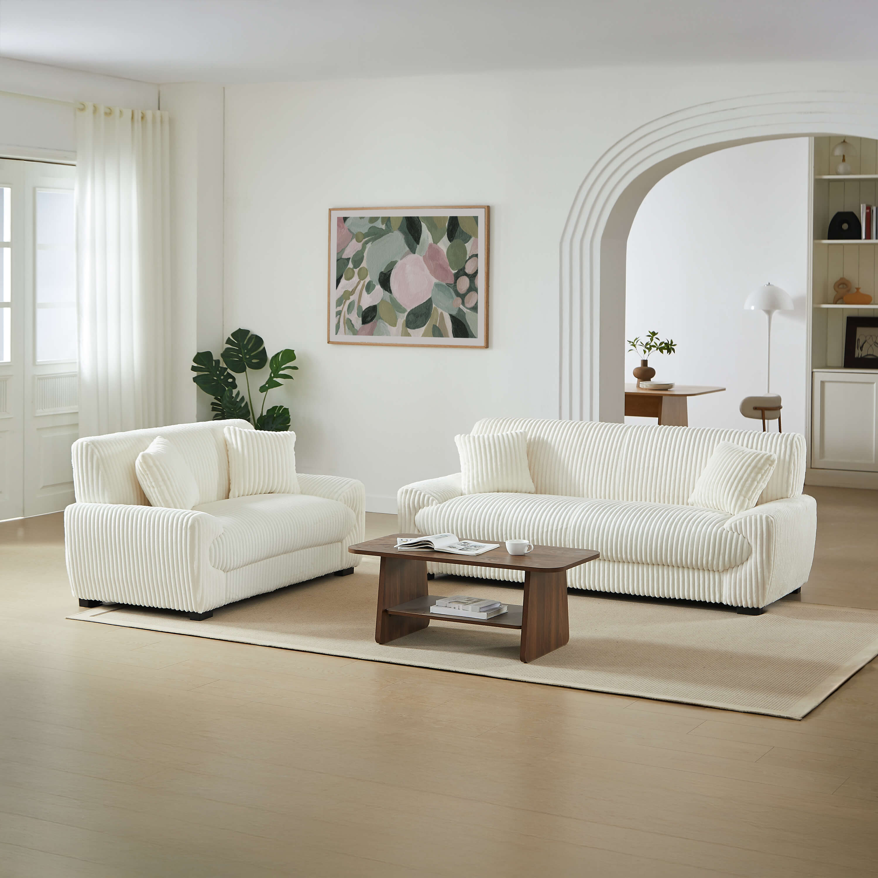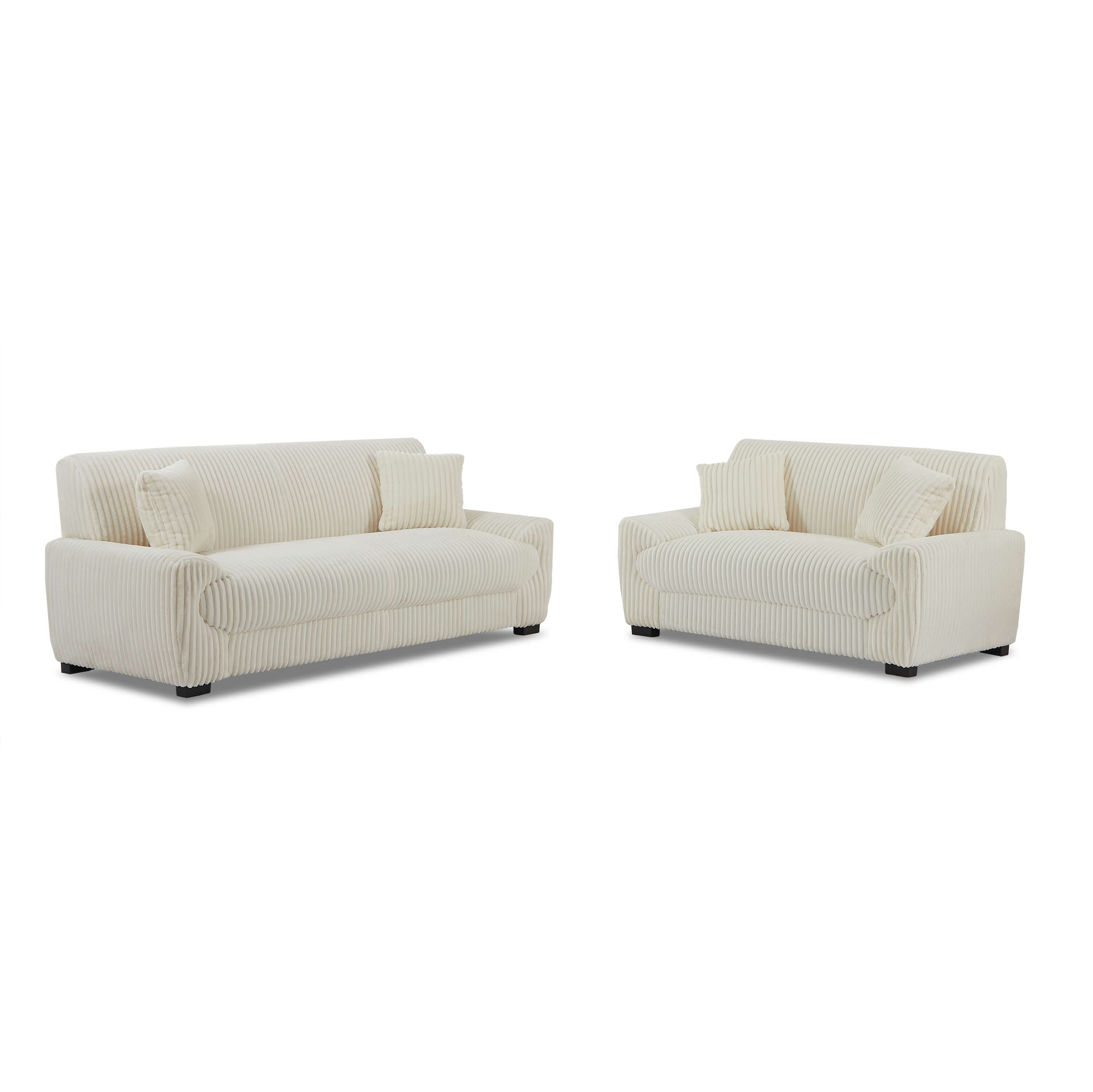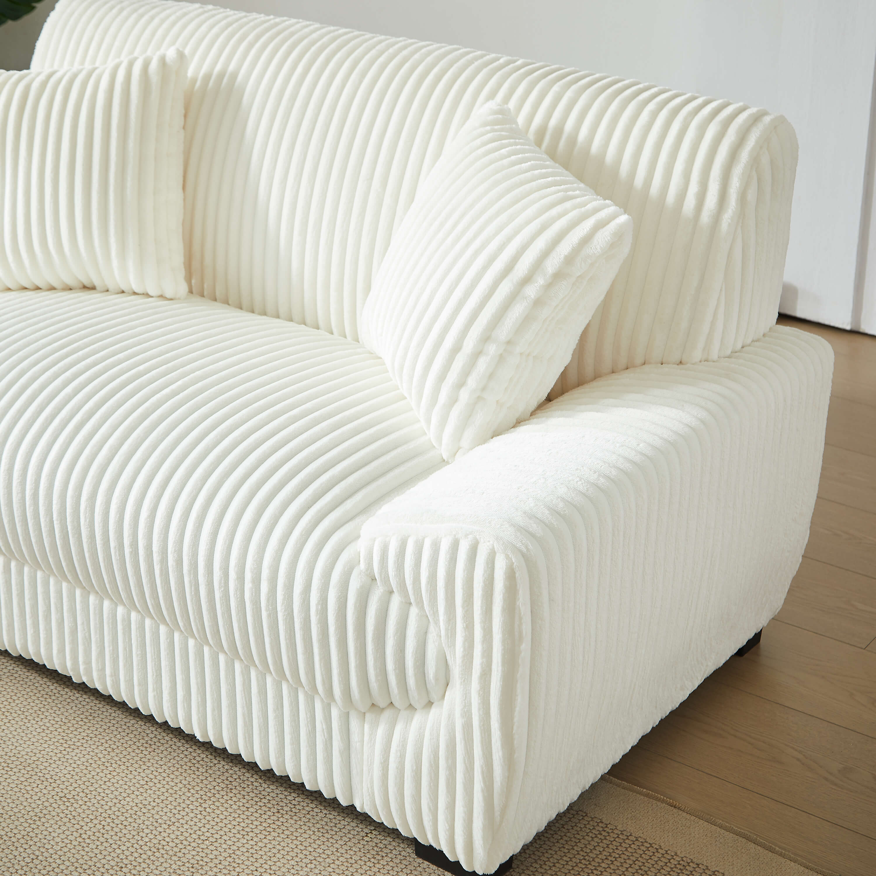 Rivestito in velluto a coste morbido al tatto, il set ADEA unisce estetica e comfort. I discreti piedini neri sottolineano il suo look contemporaneo, mentre i cuscini decorativi inclusi ne rafforzano lo spirito accogliente. Facile da integrare, questo set si adatta facilmente a diversi stili di arredamento, dal più moderno al più cocooning.