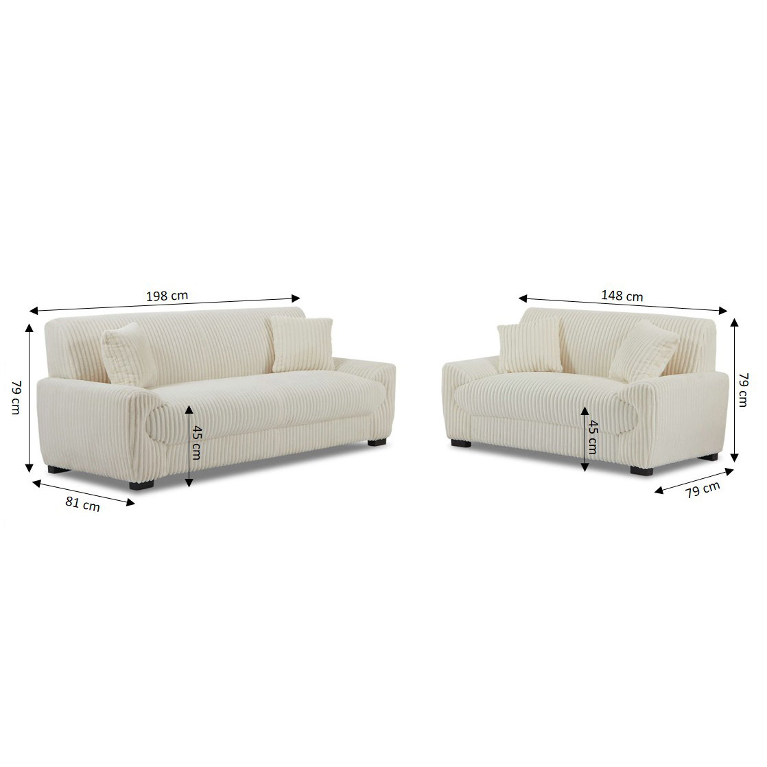 - Dimensioni del divano a 2 posti: L148 x P79 x H79 cm