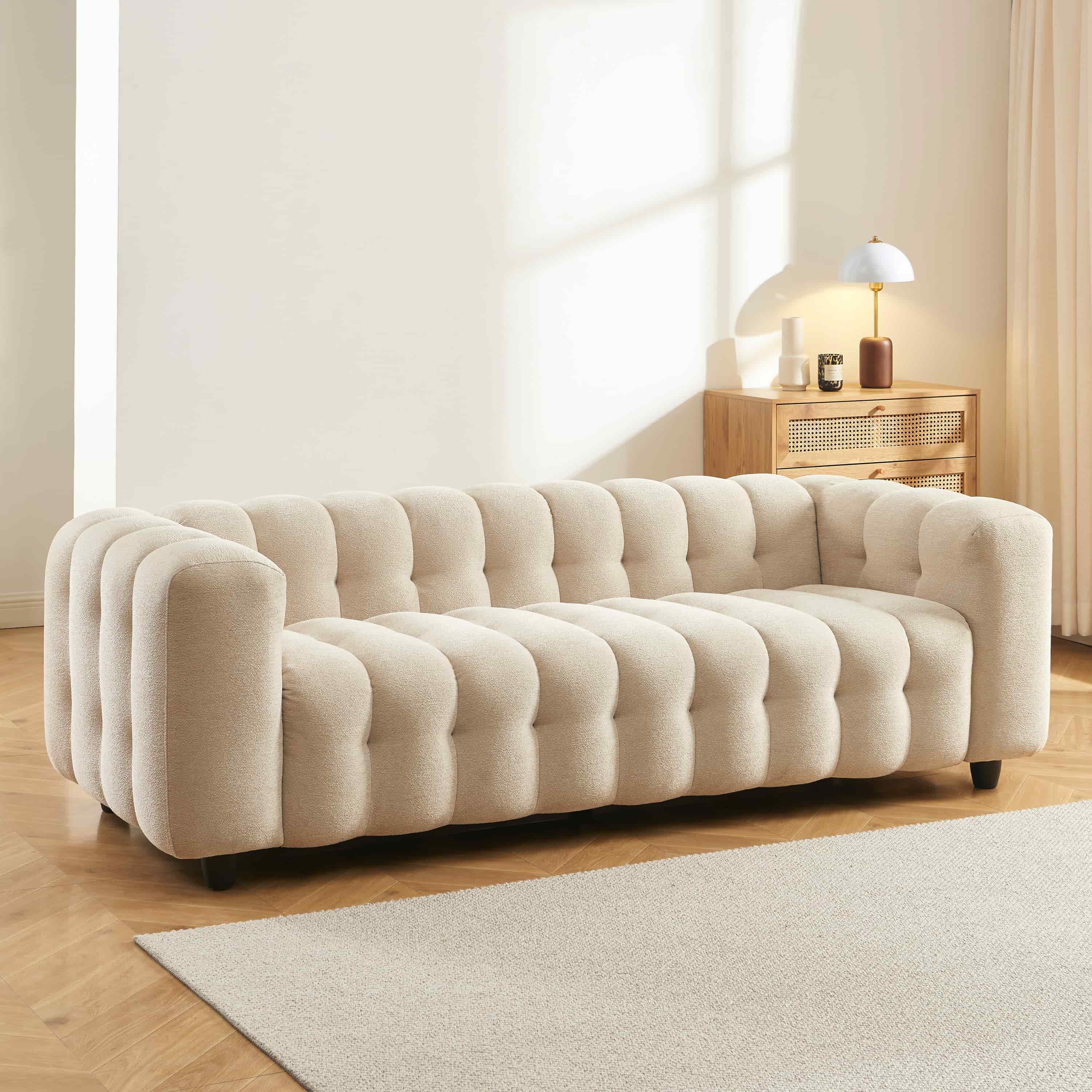 Il divano dritto TOBI affascina con il suo design audace e la sua seduta generosa. Le sue linee arrotondate e il rivestimento in tessuto testurizzato gli conferiscono un aspetto sofisticato, ideale per aggiungere carattere al suo arredamento.