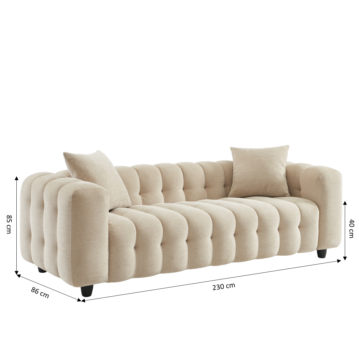 Con la sua seduta spaziosa e i 2 cuscini aggiuntivi, questo divano a 3 posti la invita a rilassarsi. La sua morbida imbottitura assicura un comfort ottimale, perfetto per i suoi momenti di riposo o di socializzazione.