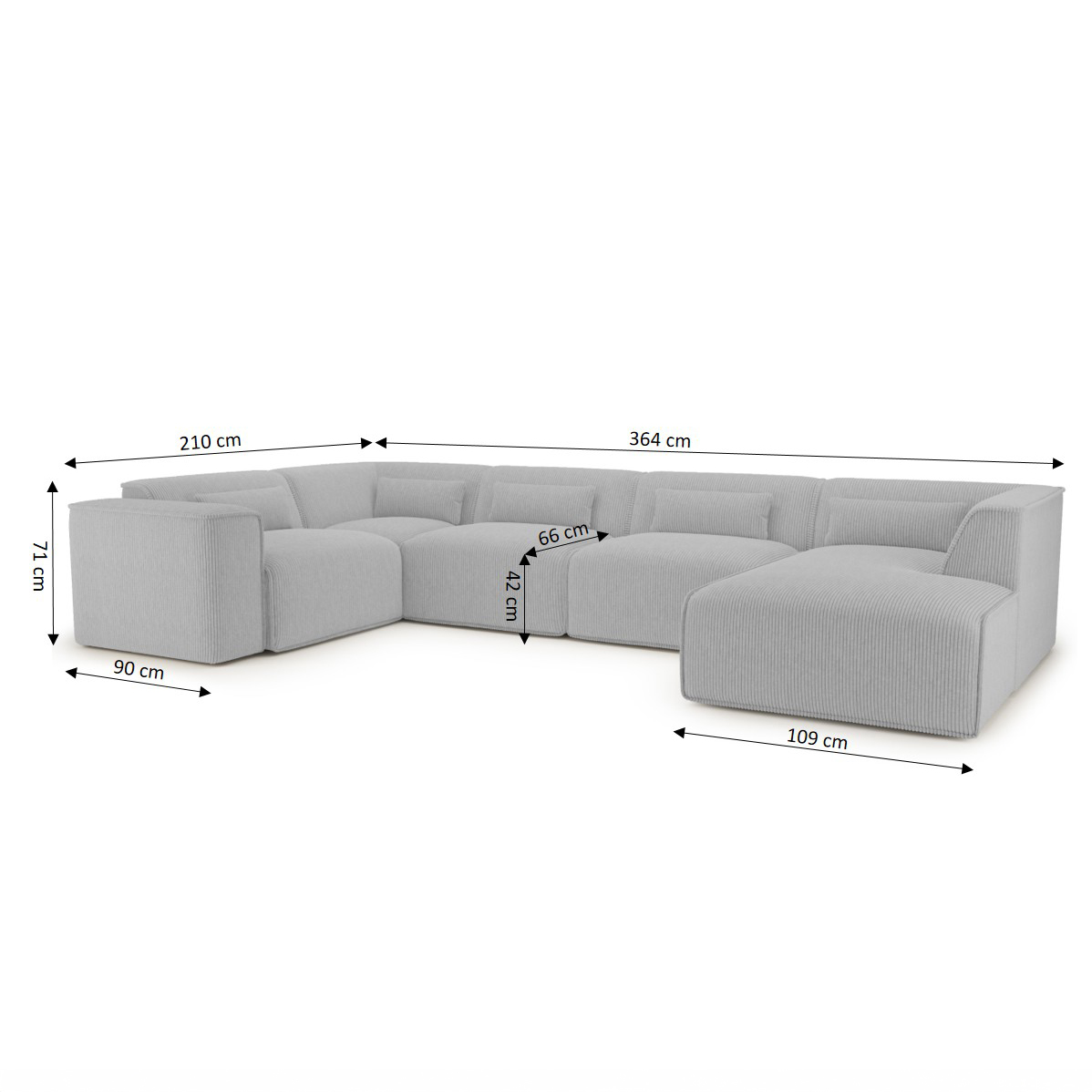 Con la sua forma a U e la sua capacità di 7 posti, il divano panoramico NUNA trasforma il vostro salotto in un vero e proprio spazio di condivisione. La sua chaise longue offre un comfort supplementare per rilassarsi, leggere o guardare un film. Perfetto per le famiglie o per gli amanti degli spazi ampi e accoglienti.