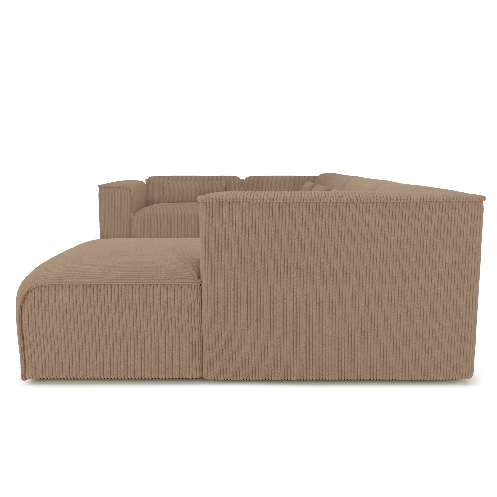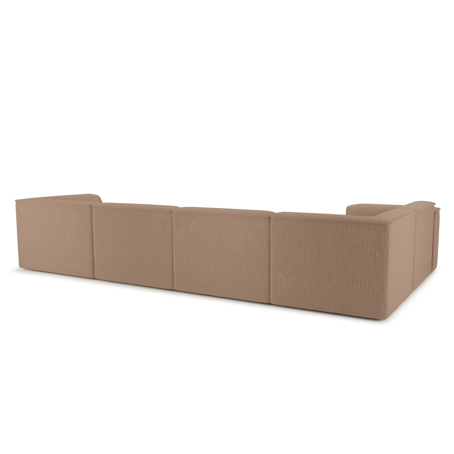 Divano panoramico fisso NUNA 7 posti con poltrona destra in velluto a coste marrone