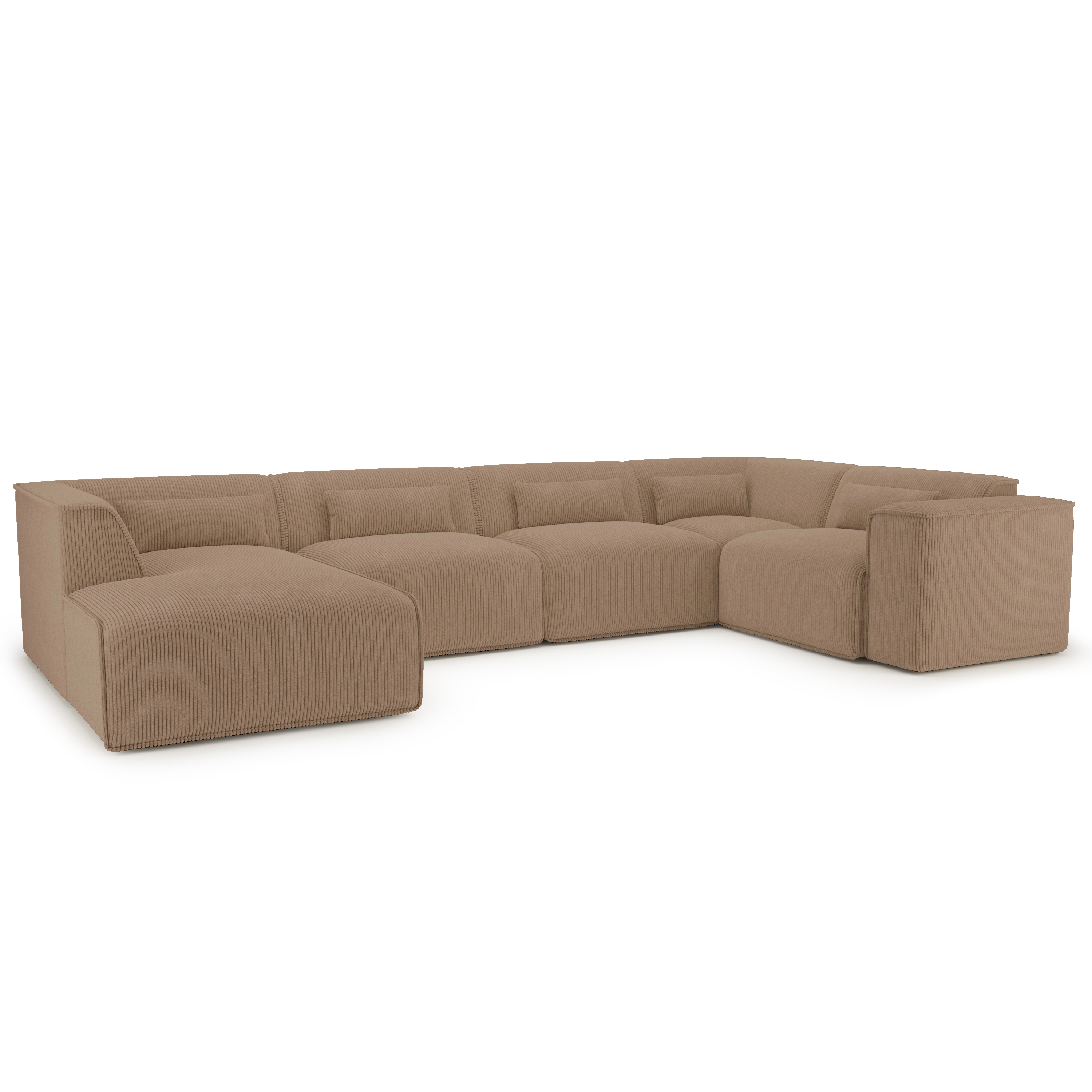 Divano panoramico fisso NUNA 7 posti con poltrona sinistra in velluto a coste marrone