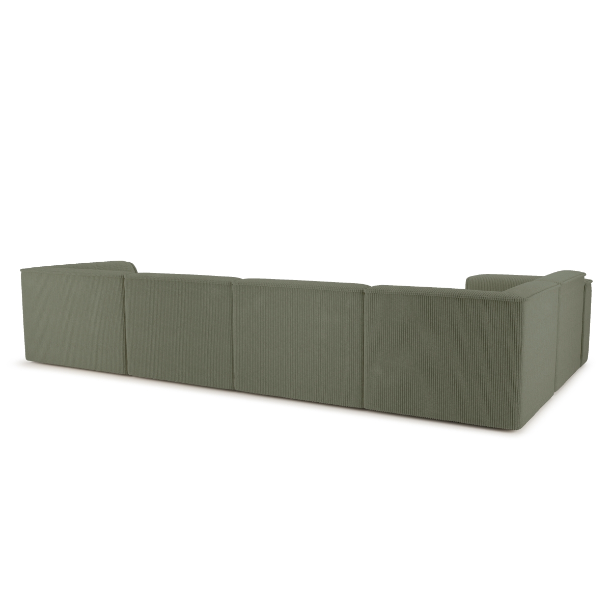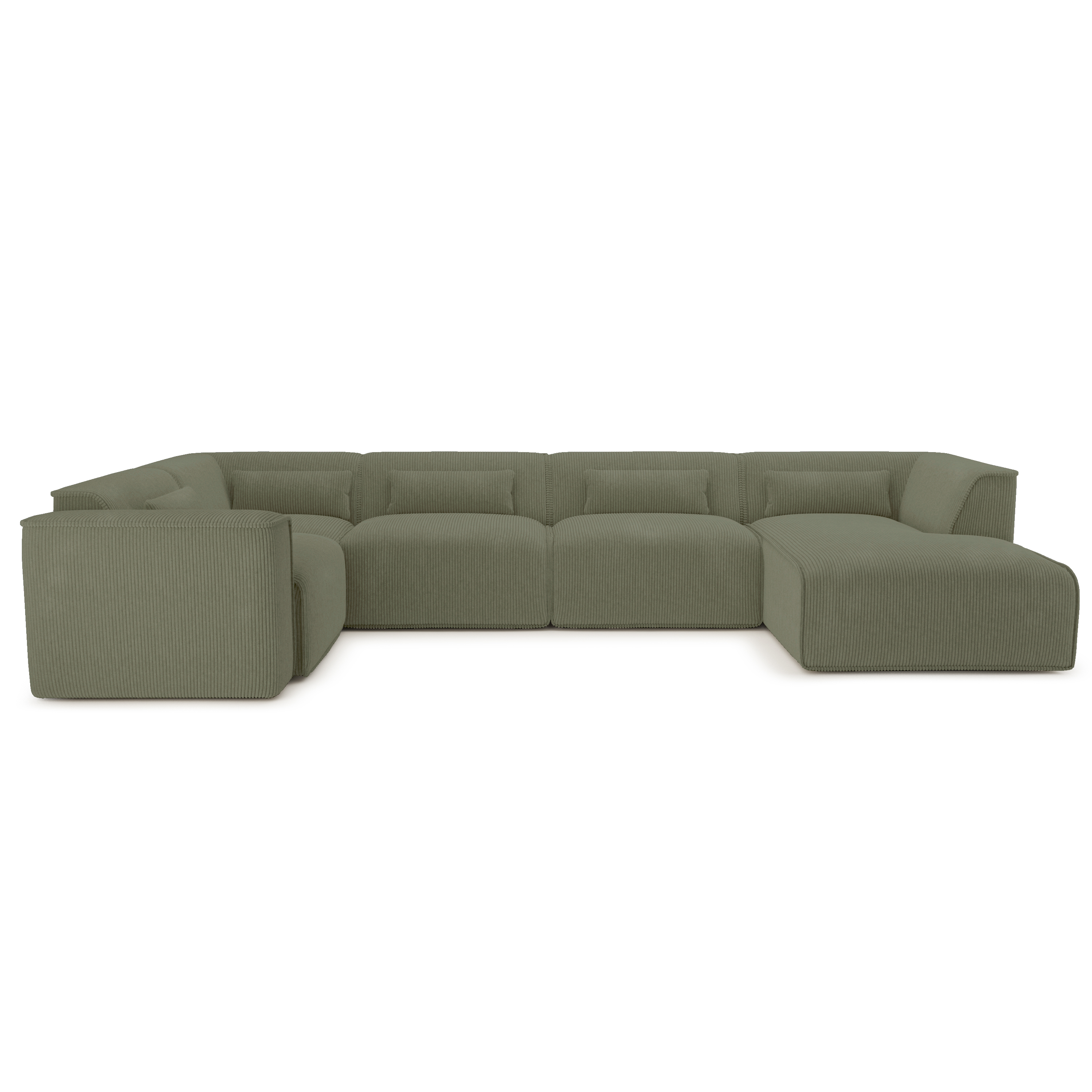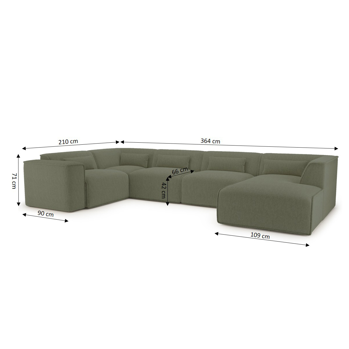 Divano panoramico fisso NUNA 7 posti con poltrona destra in velluto a coste verde