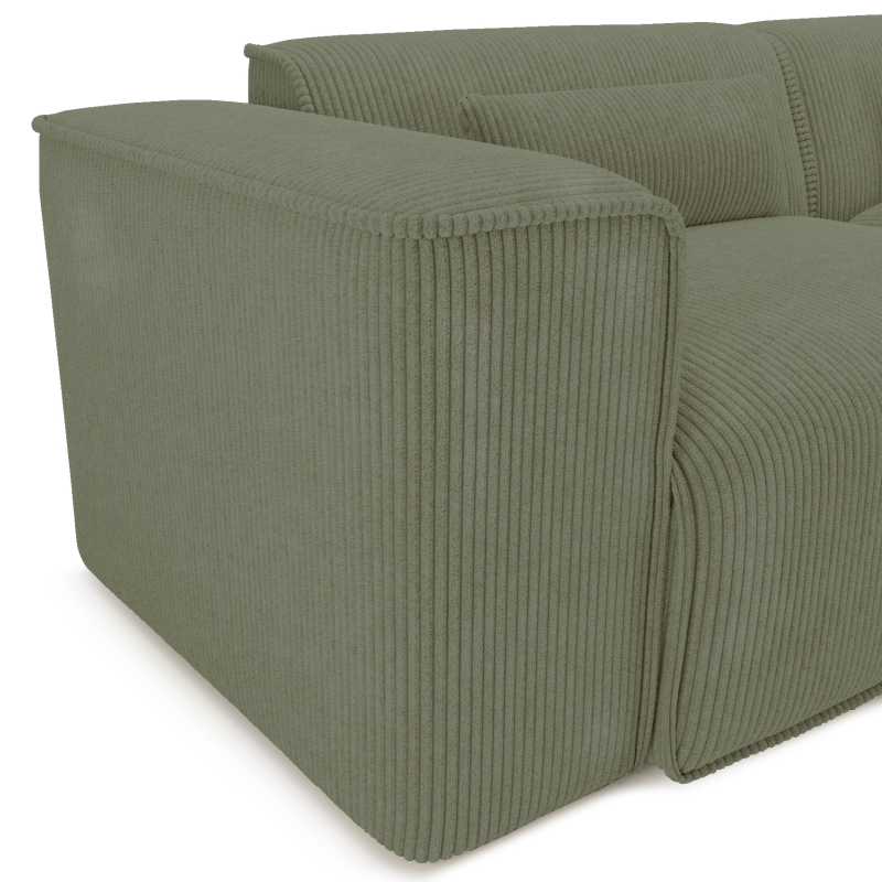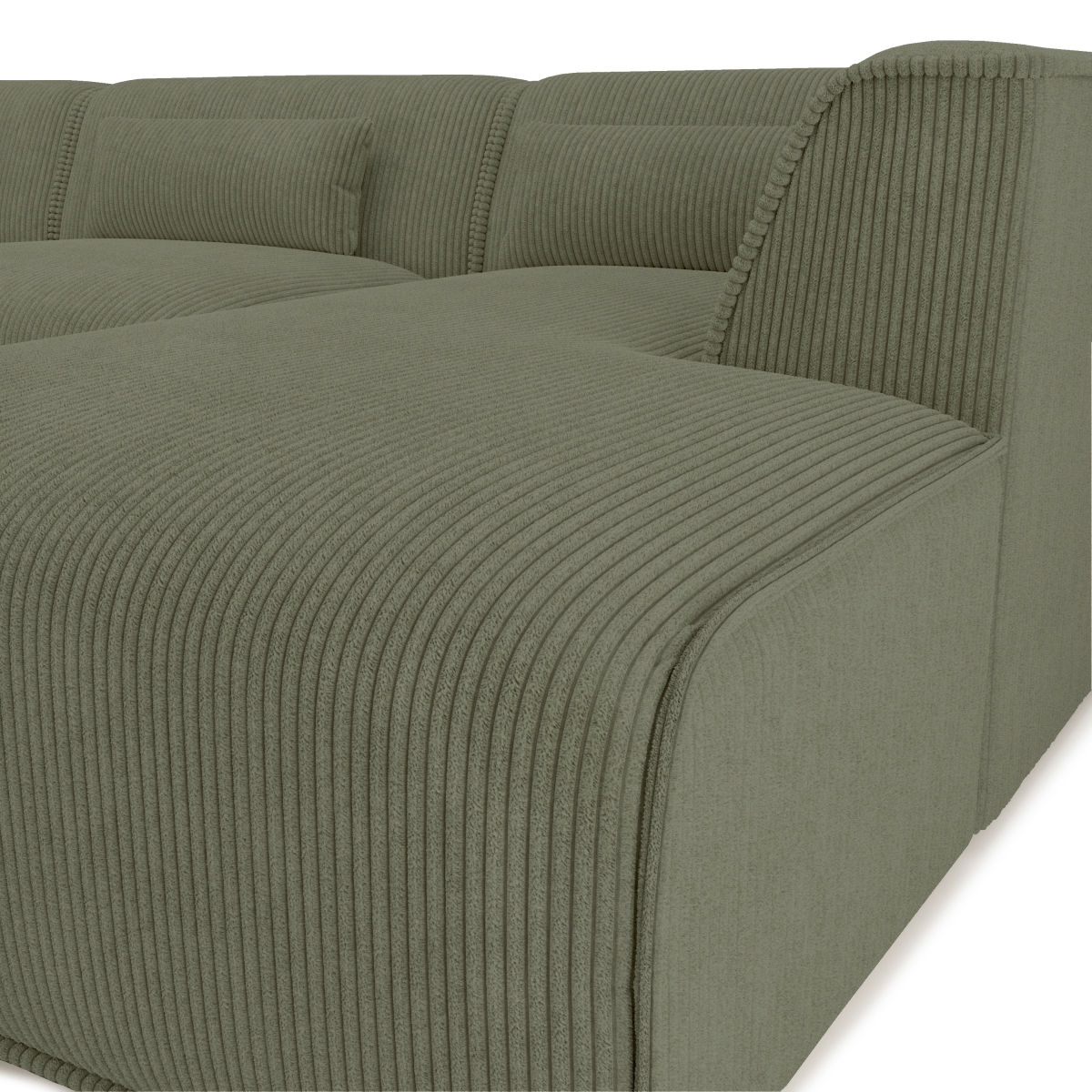 • Divano panoramico fisso NUNA 7 posti con poltrona destra in velluto a coste verde