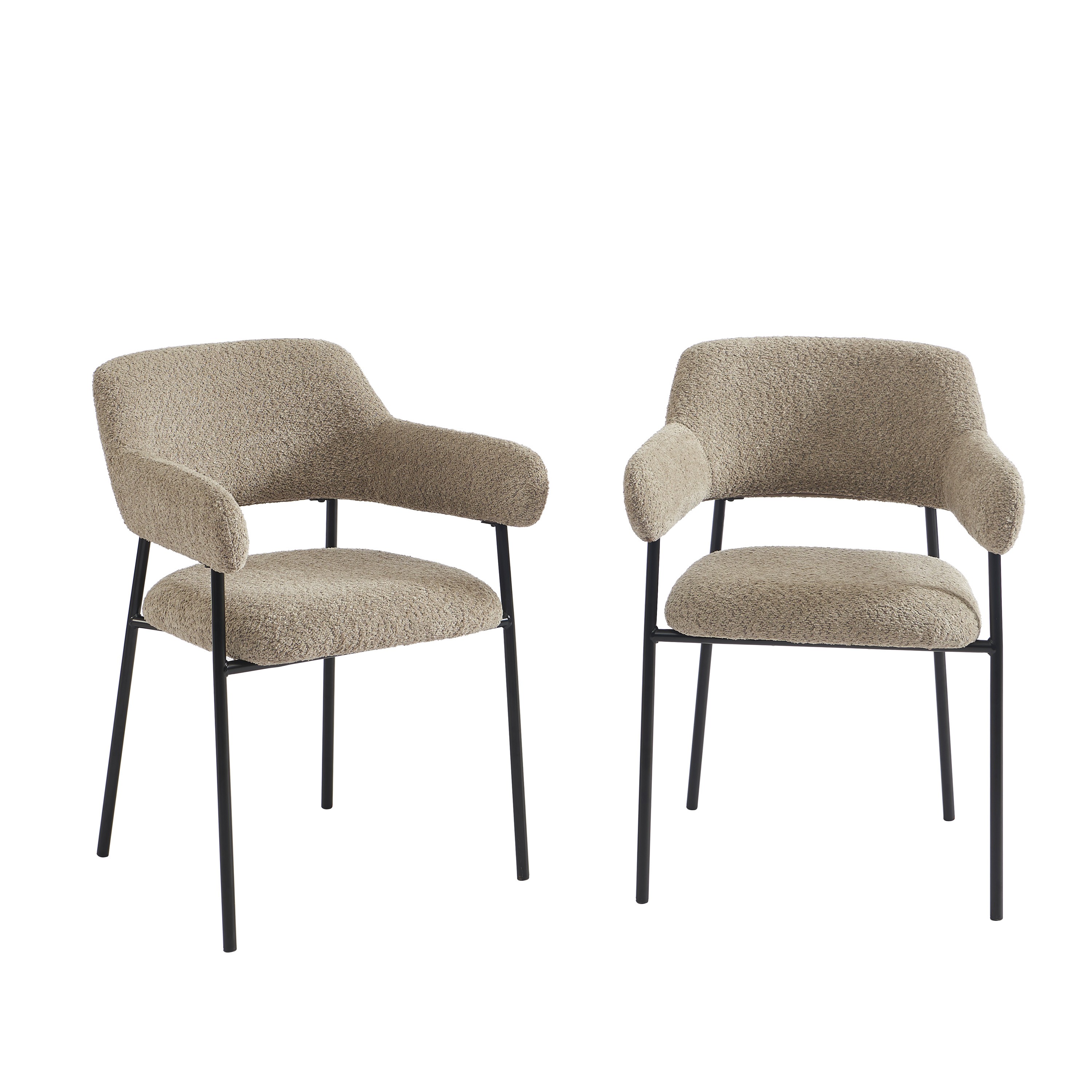 Set di 2 poltrone da pranzo IVAN in tessuto marrone glacé con gambe in metallo nero