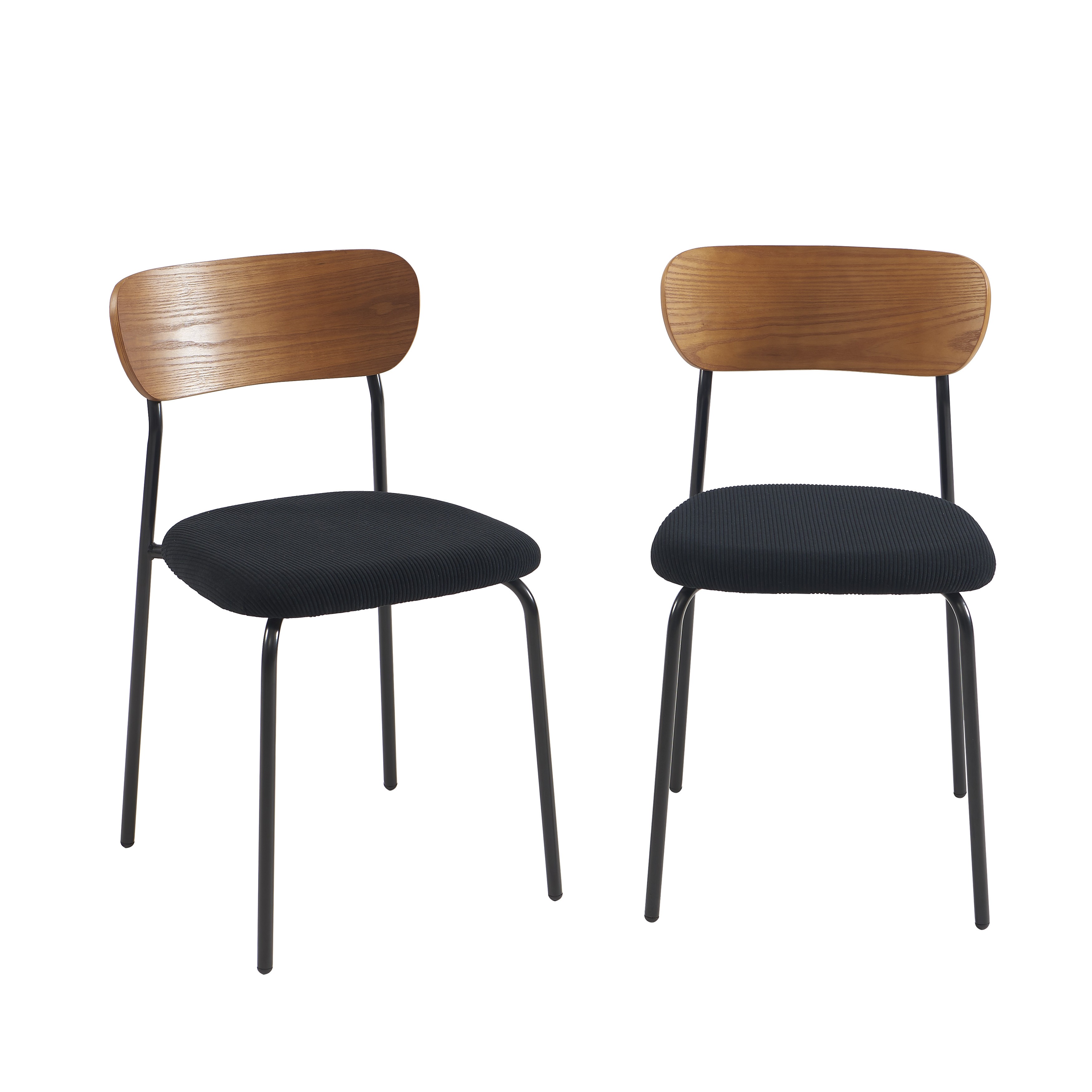 Set di 2 sedie FRIDA in velluto a coste nero con gambe in metallo nero