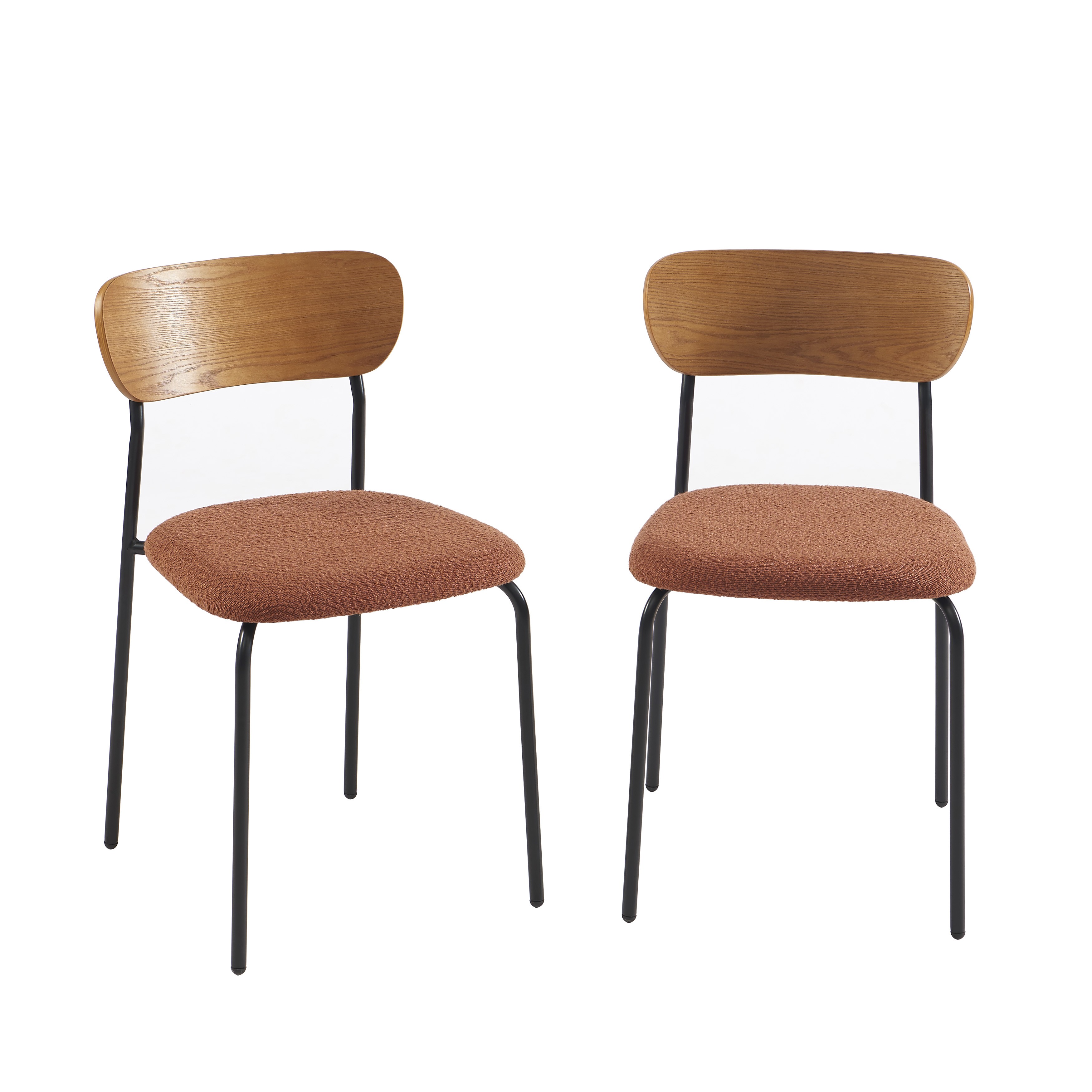 Set di 2 sedie FRIDA in tessuto bouclette terracotta con gambe in metallo nero