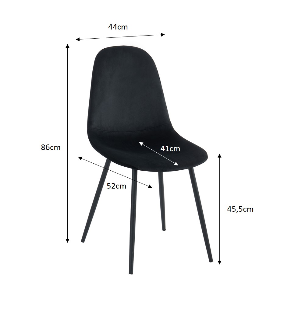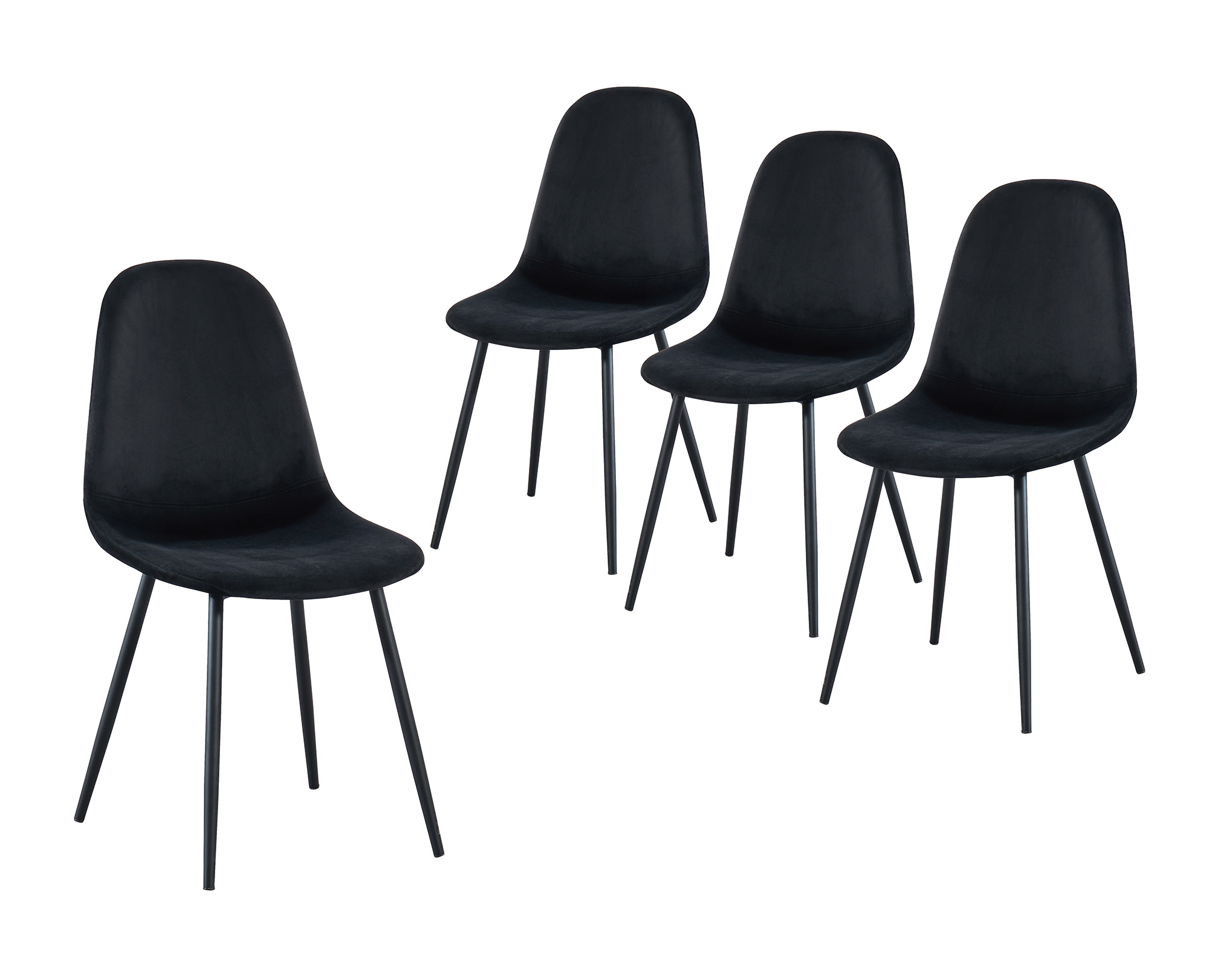 Set di 4 sedie LENA in velluto nero con gambe in metallo nero - dimensioni: 44 x 52 x 86 cm