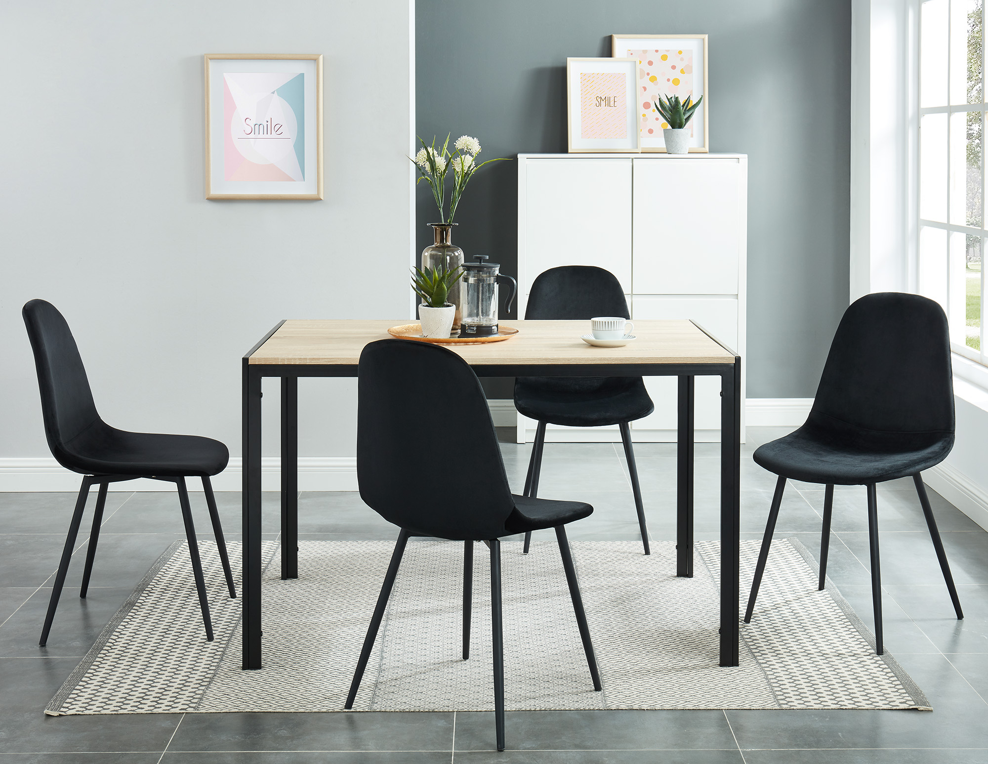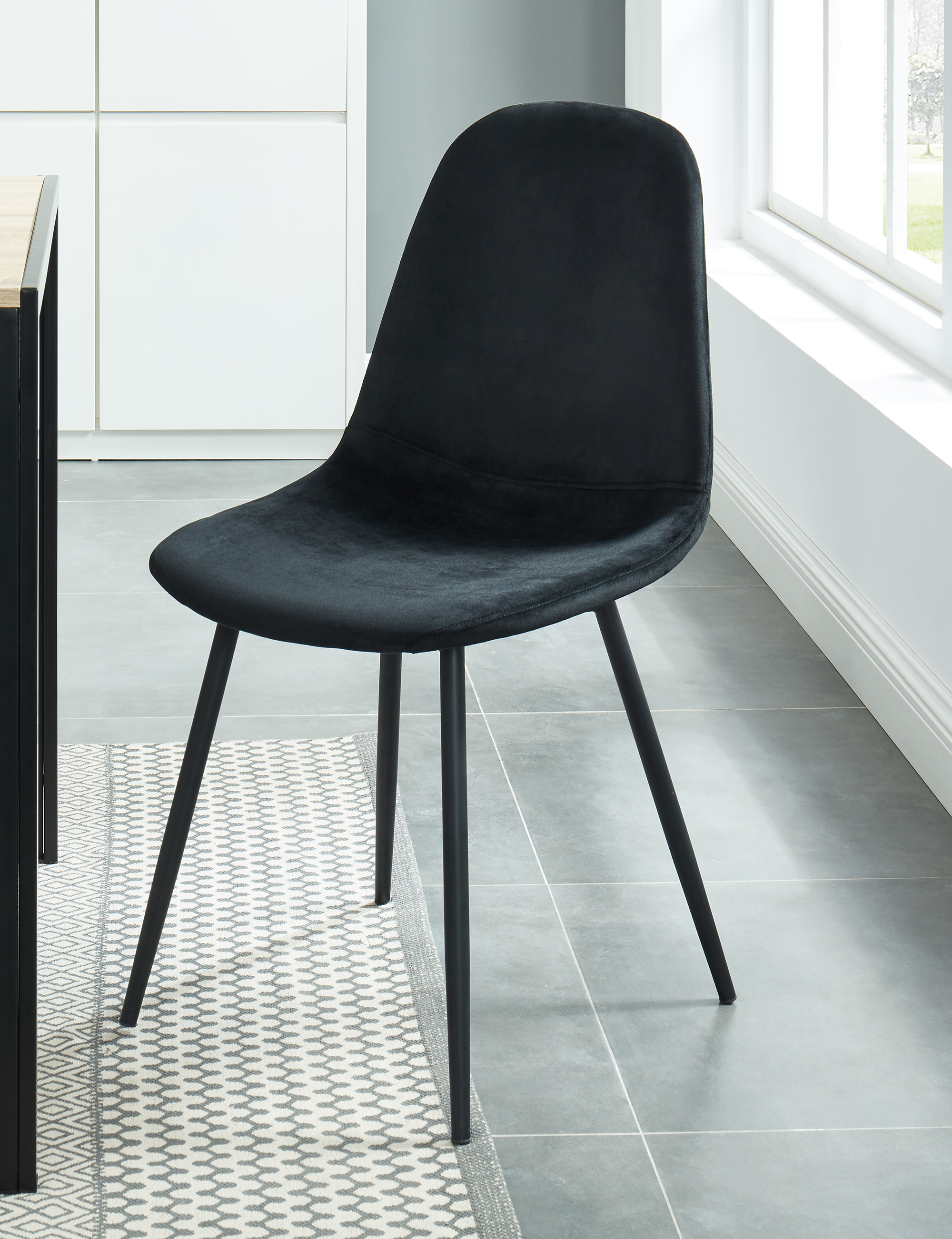 Set di 4 sedie LENA in velluto nero con gambe in metallo nero