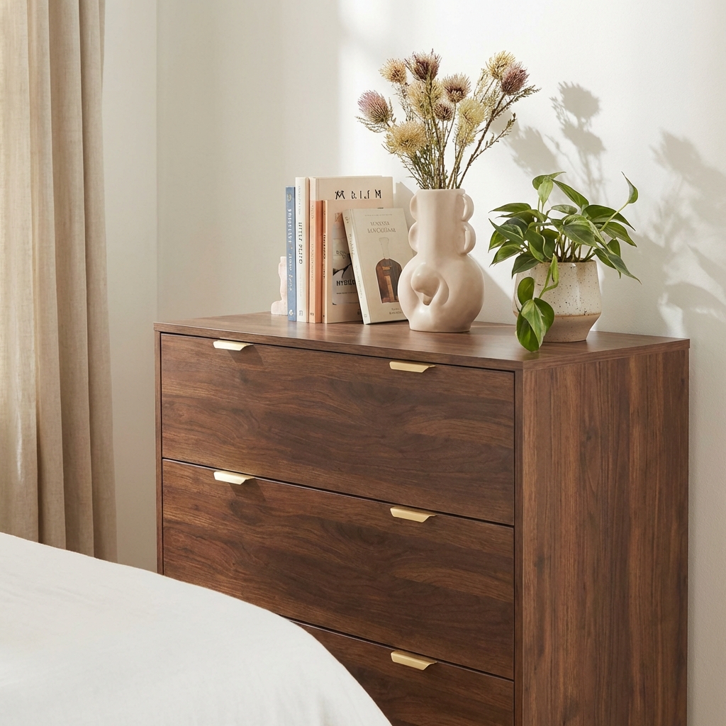 Il comò dispone di tre ampi cassetti, ideali per organizzare vestiti, biancheria o accessori. Ogni comodino è dotato di un cassetto e di una nicchia aperta, perfetta per tenere a portata di mano gli oggetti essenziali. Questo set combina funzionalità e organizzazione per un comodo utilizzo quotidiano.