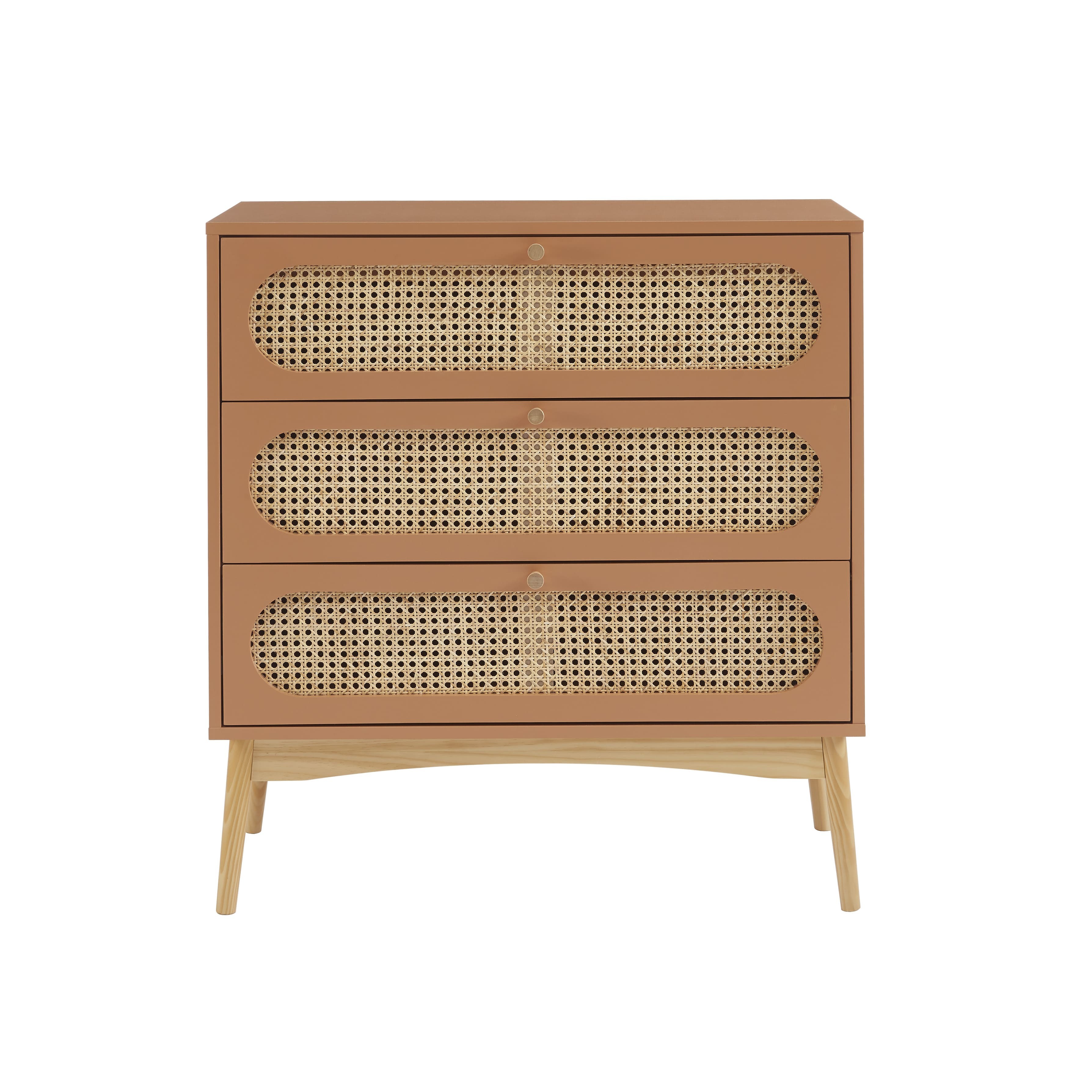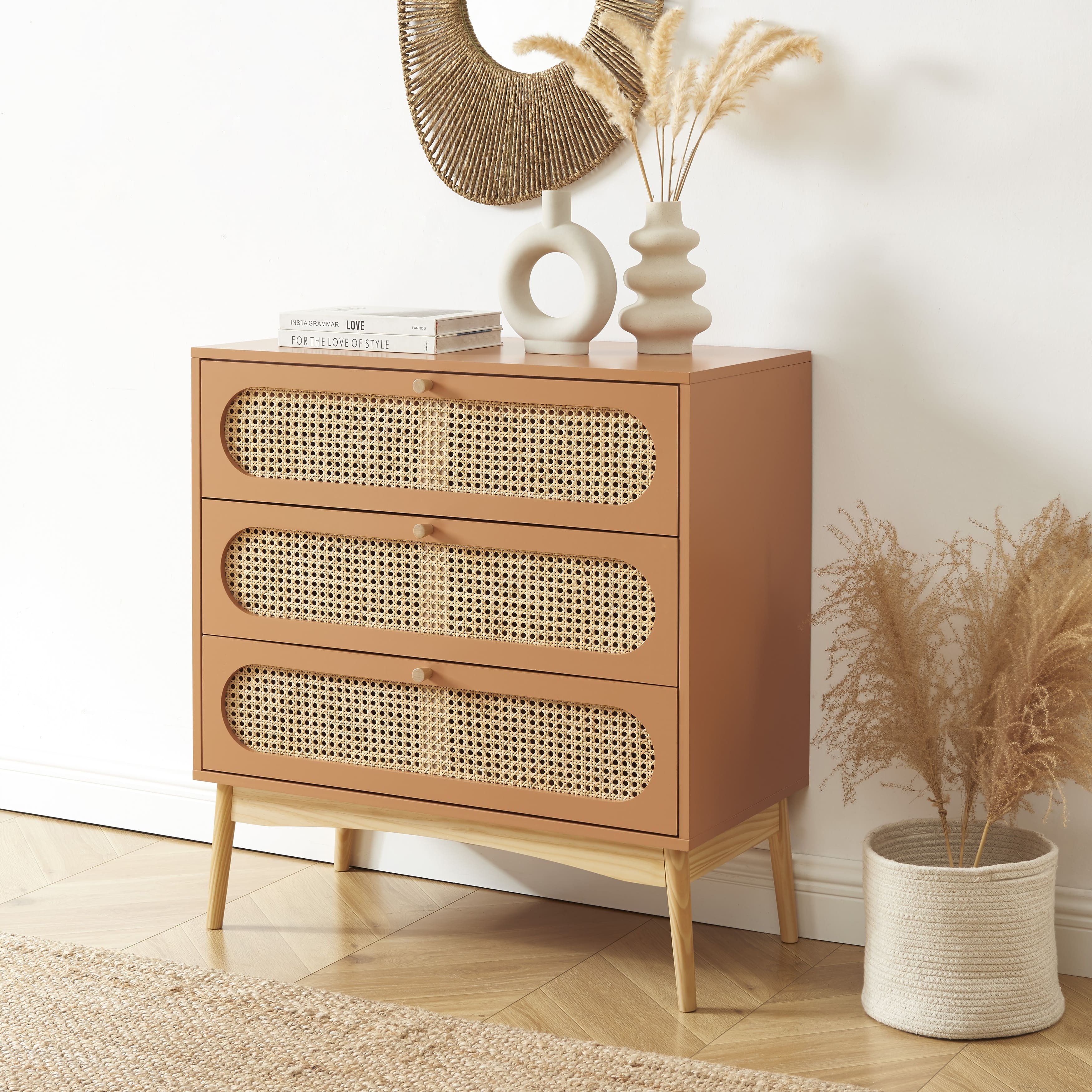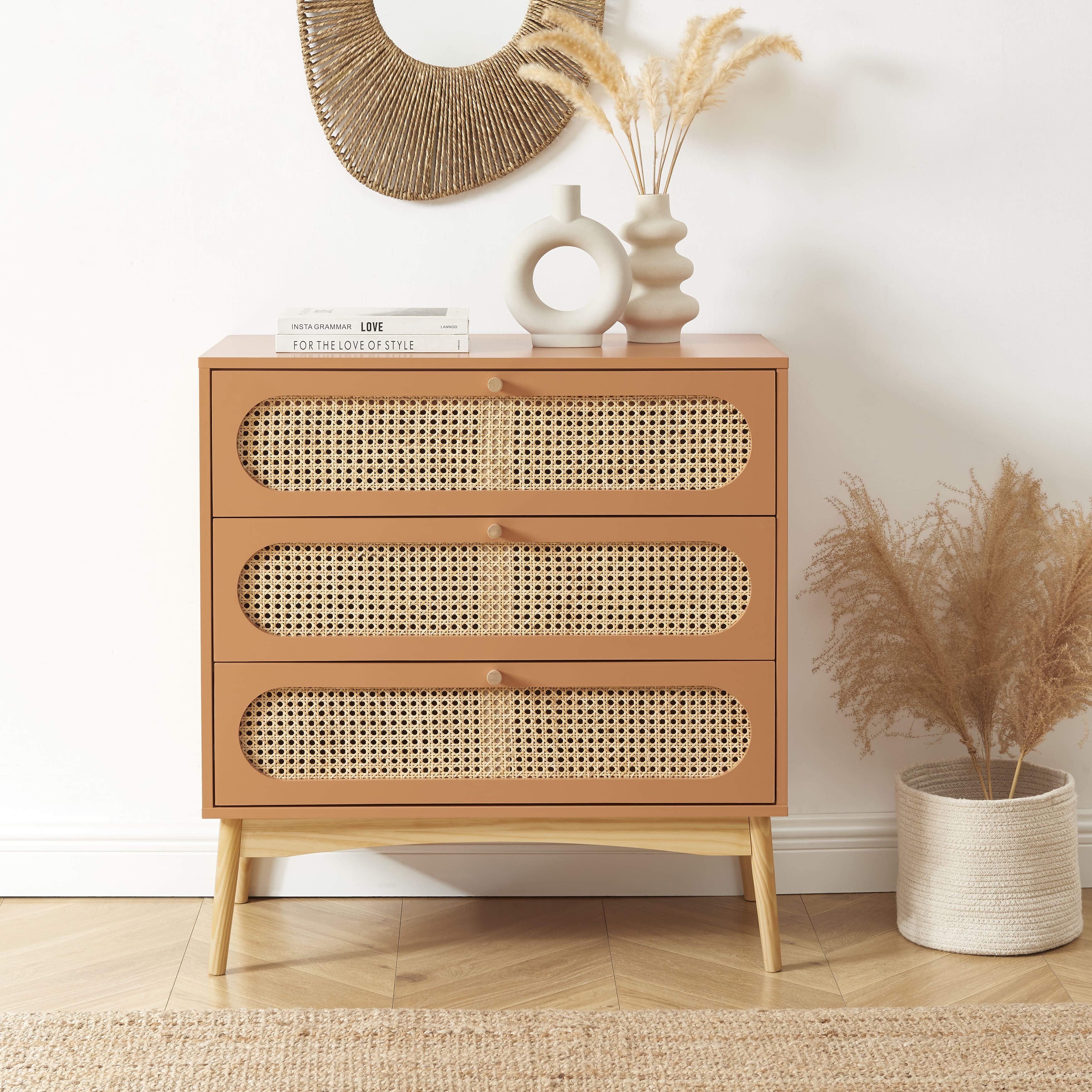 Cassettiera SIXTINE in terracotta e rattan, 3 cassetti
