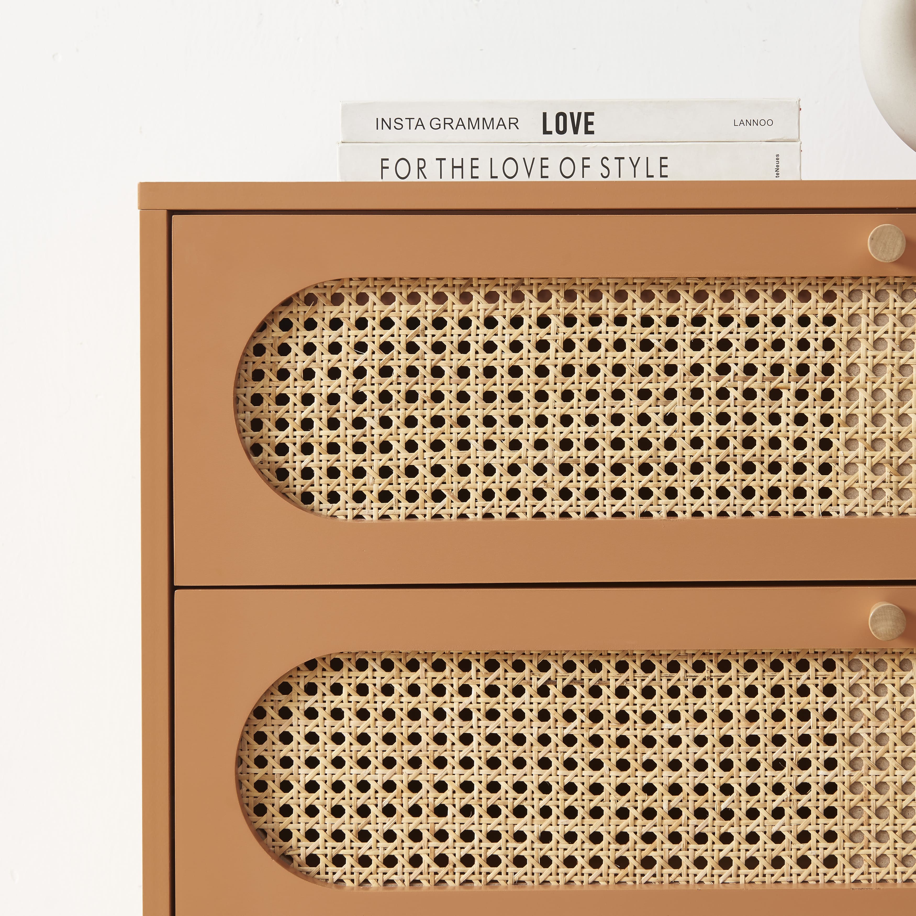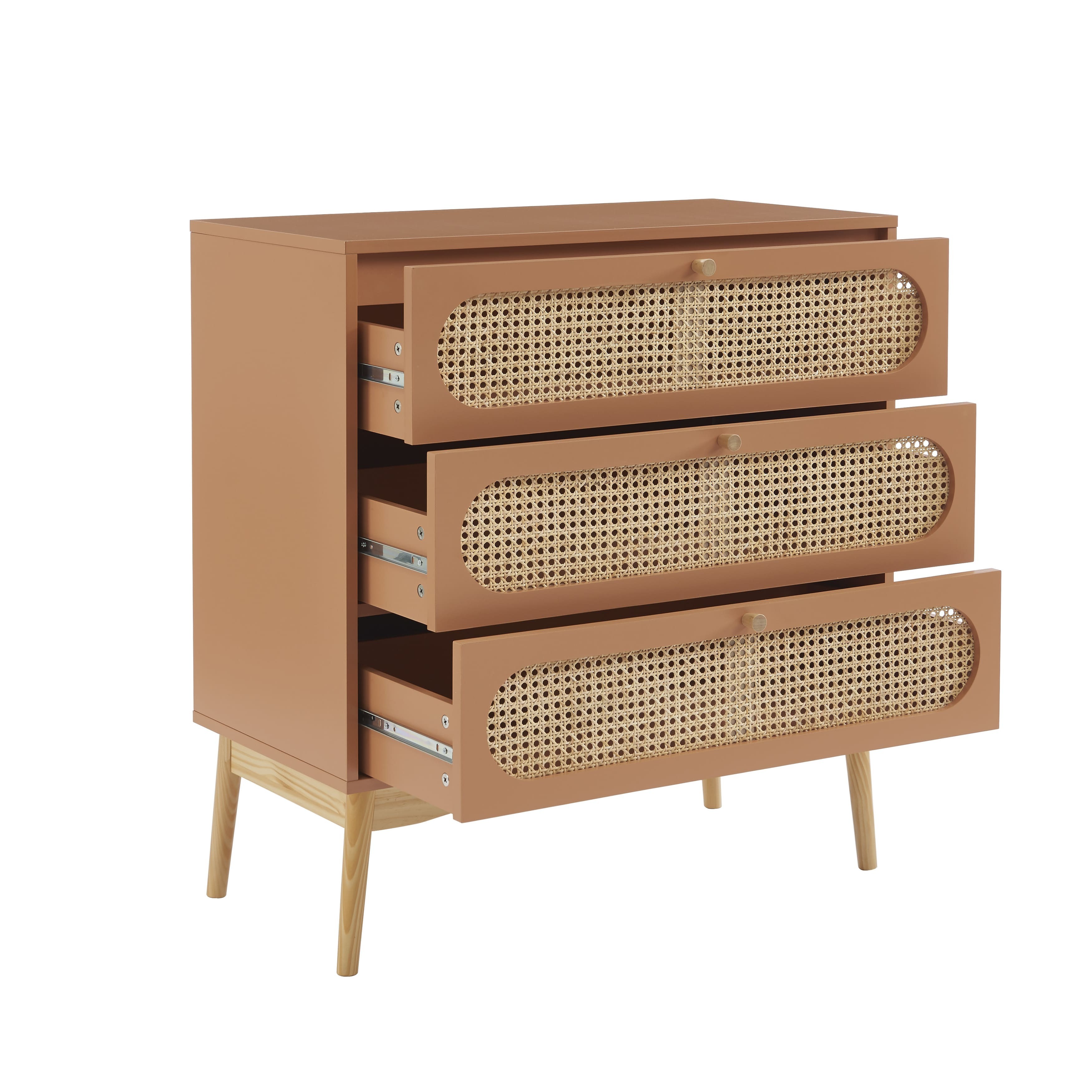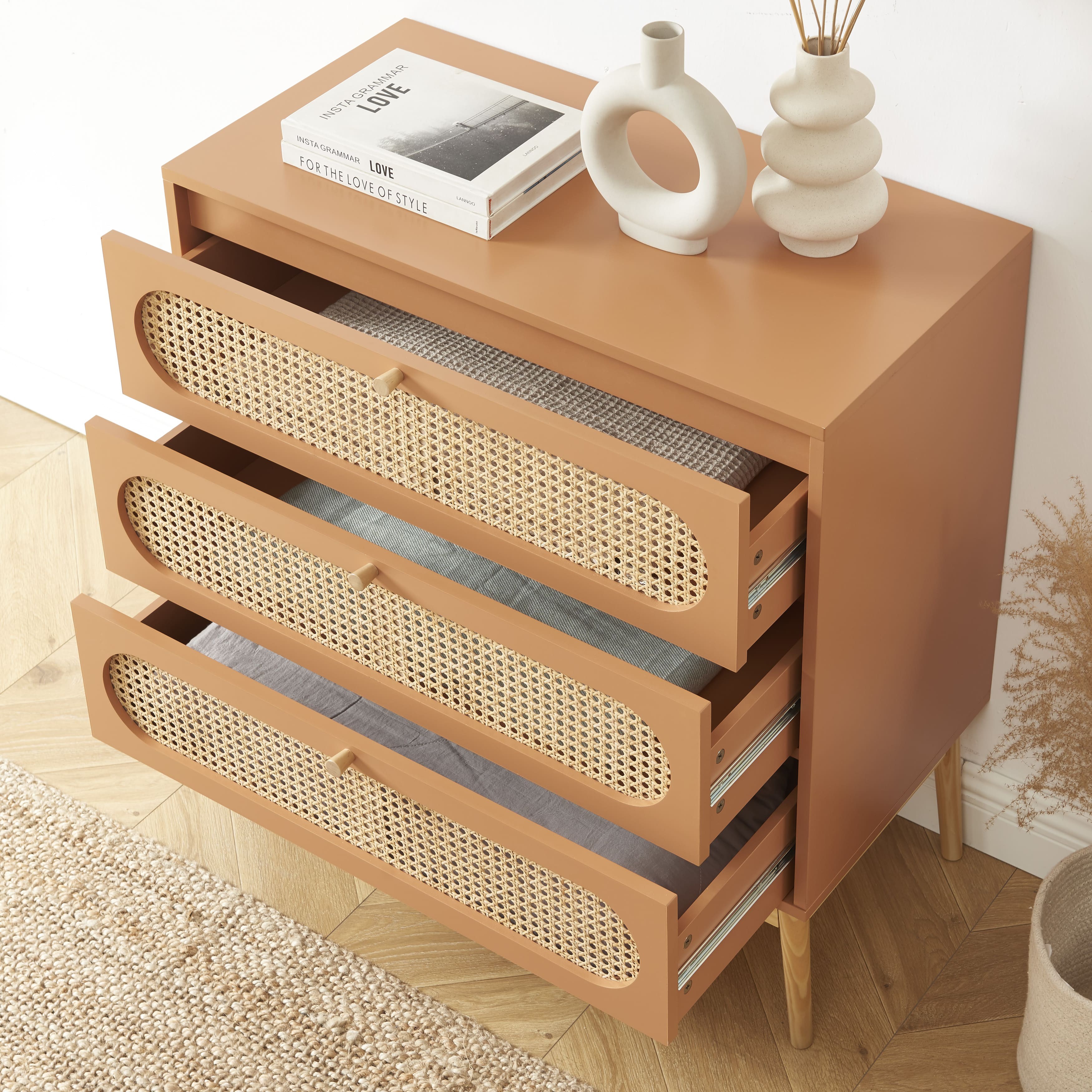 Cassettiera SIXTINE in terracotta e rattan, 3 cassetti