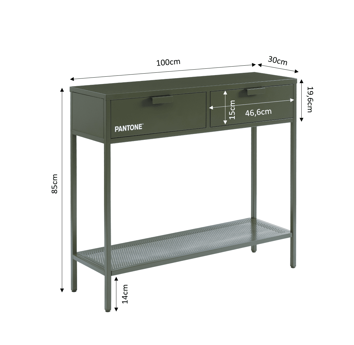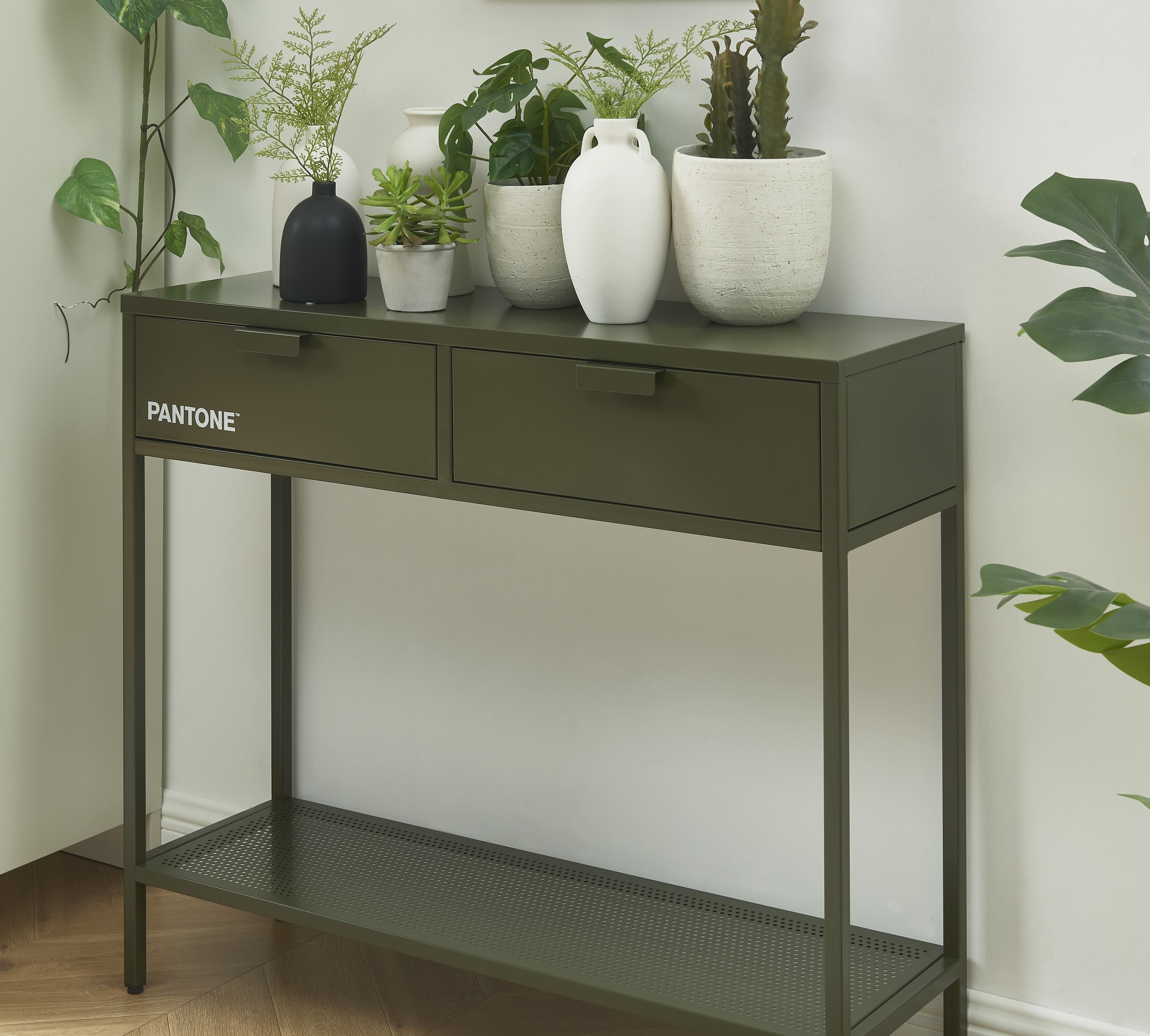 Infine, la consolle in metallo PANTONE le offre molto spazio di archiviazione grazie ai suoi 2 cassetti.