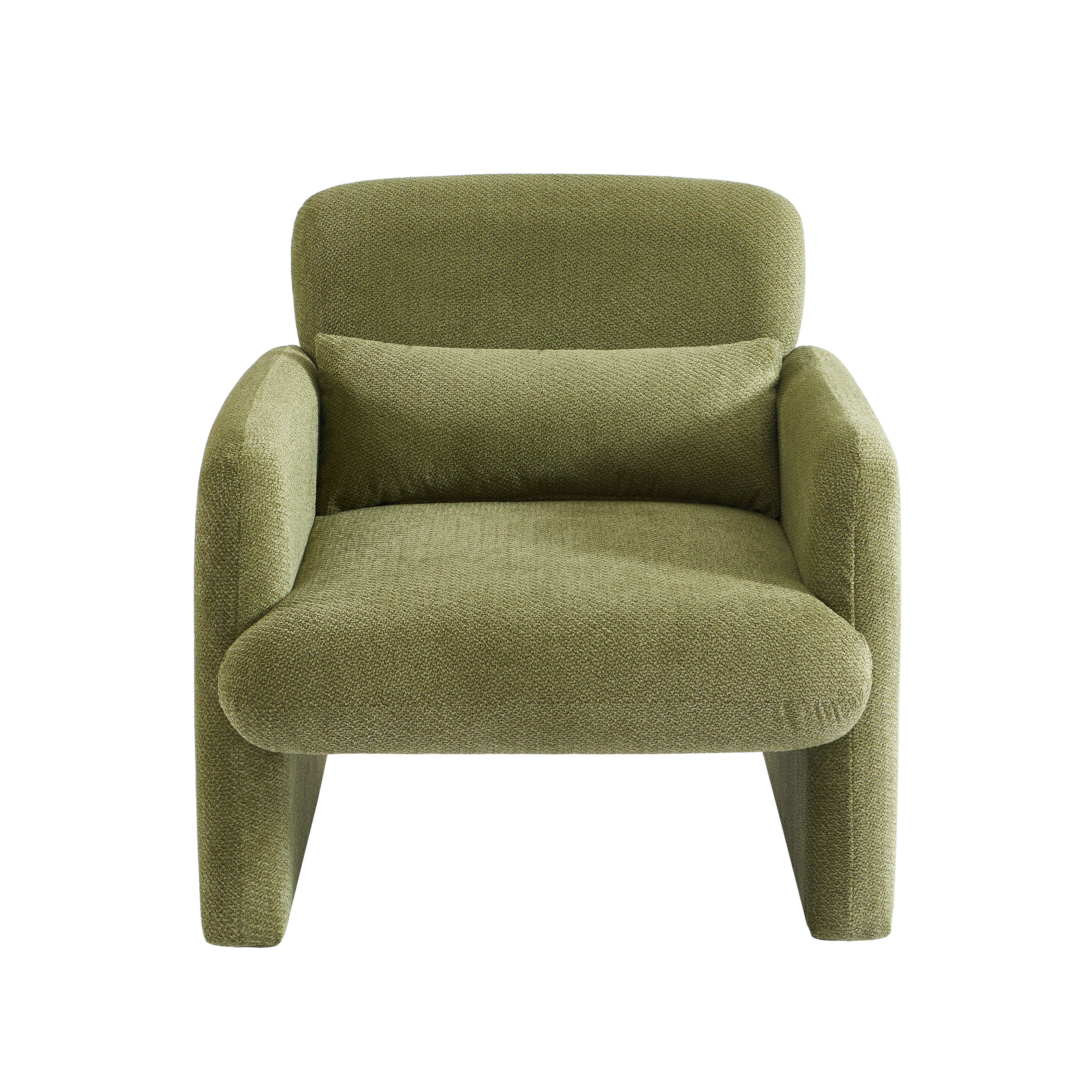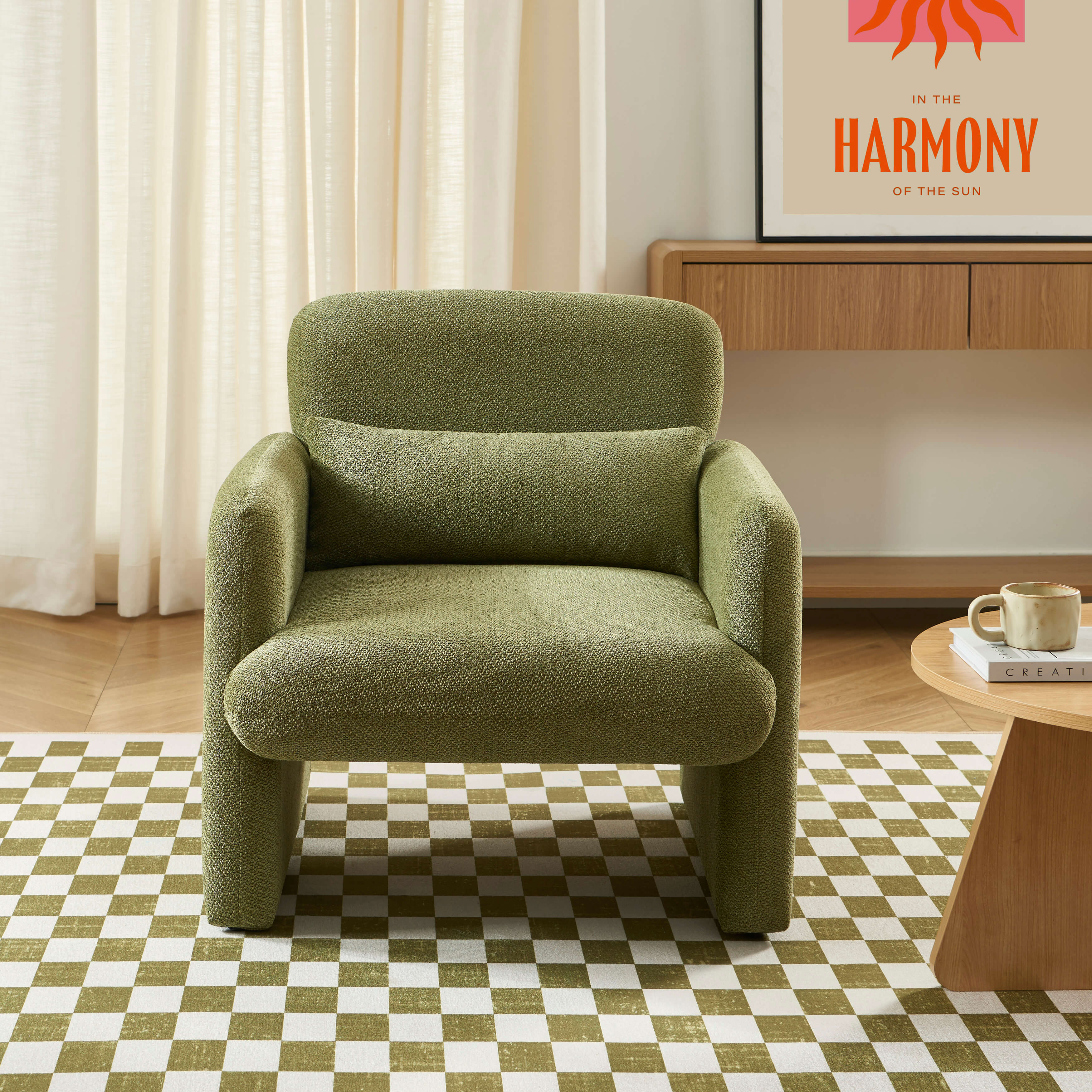 Con le sue forme arrotondate e il rivestimento in morbido tessuto, la poltrona OMA invita al relax.