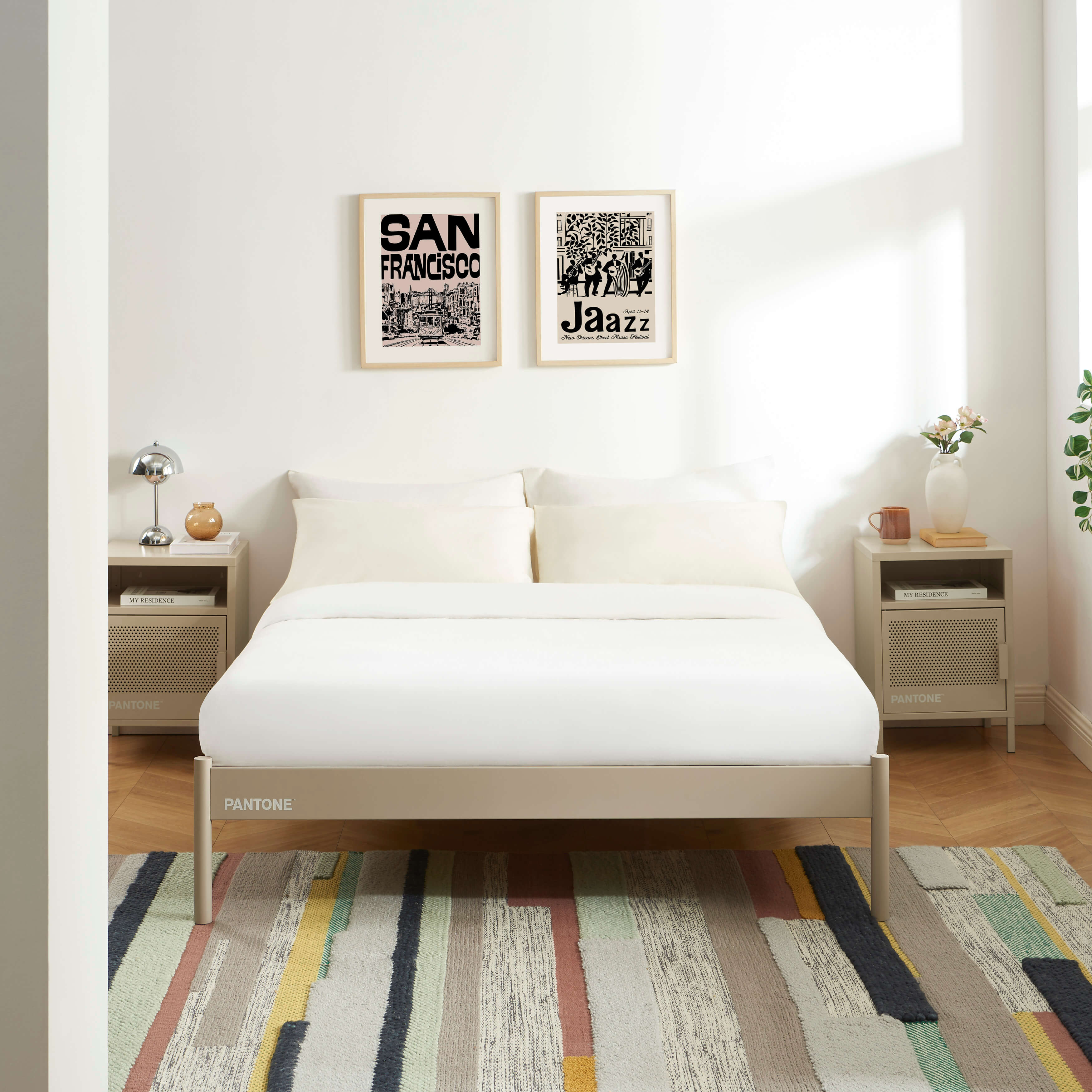 Il letto PANTONE è all'insegna della semplicità, con una struttura in metallo e senza testiera per un look leggero e moderno. Il suo design sobrio e pulito lo rende un elemento facile da integrare in qualsiasi tipo di arredamento: urbano, grafico, scandinavo o anche industriale. Una finitura trendy e colorata