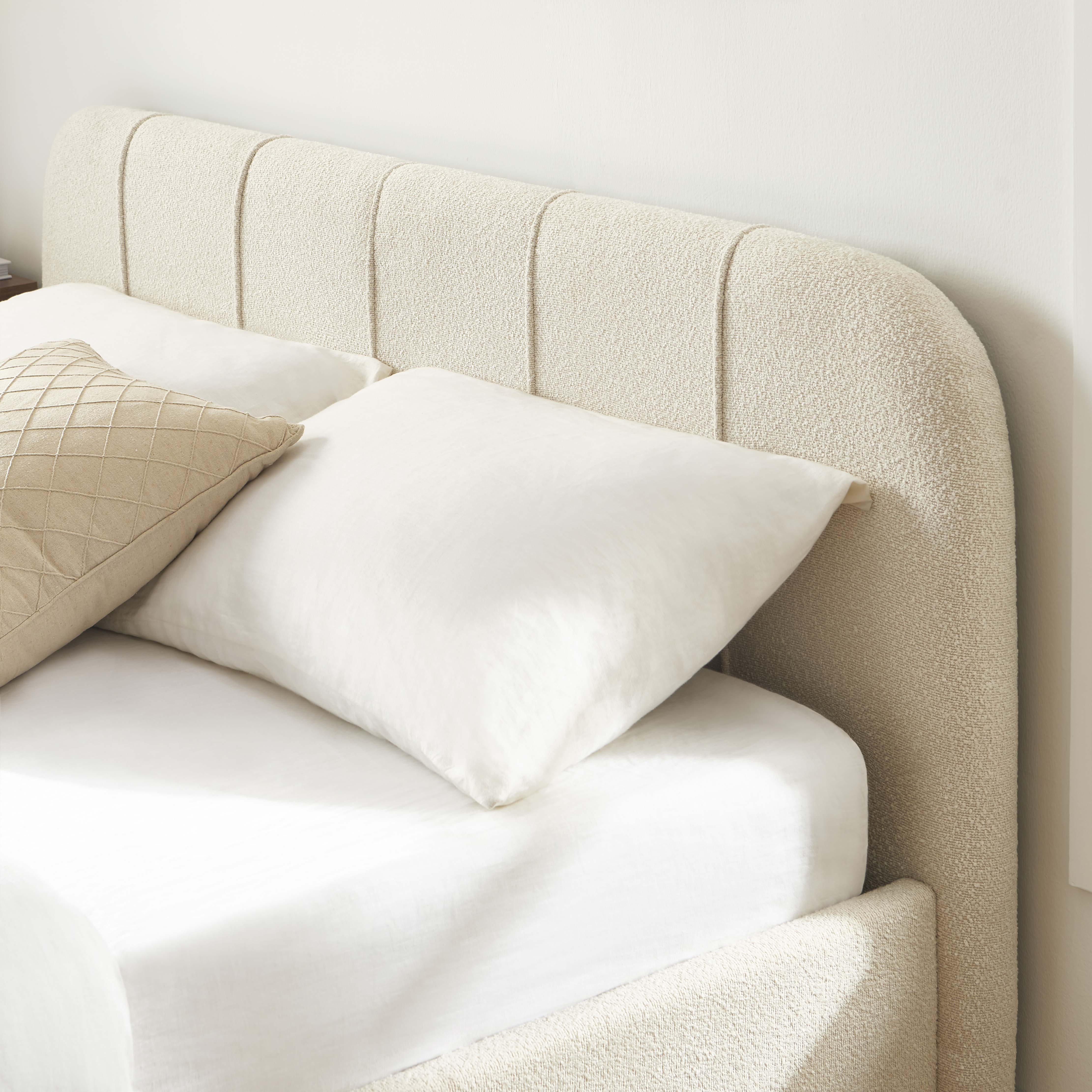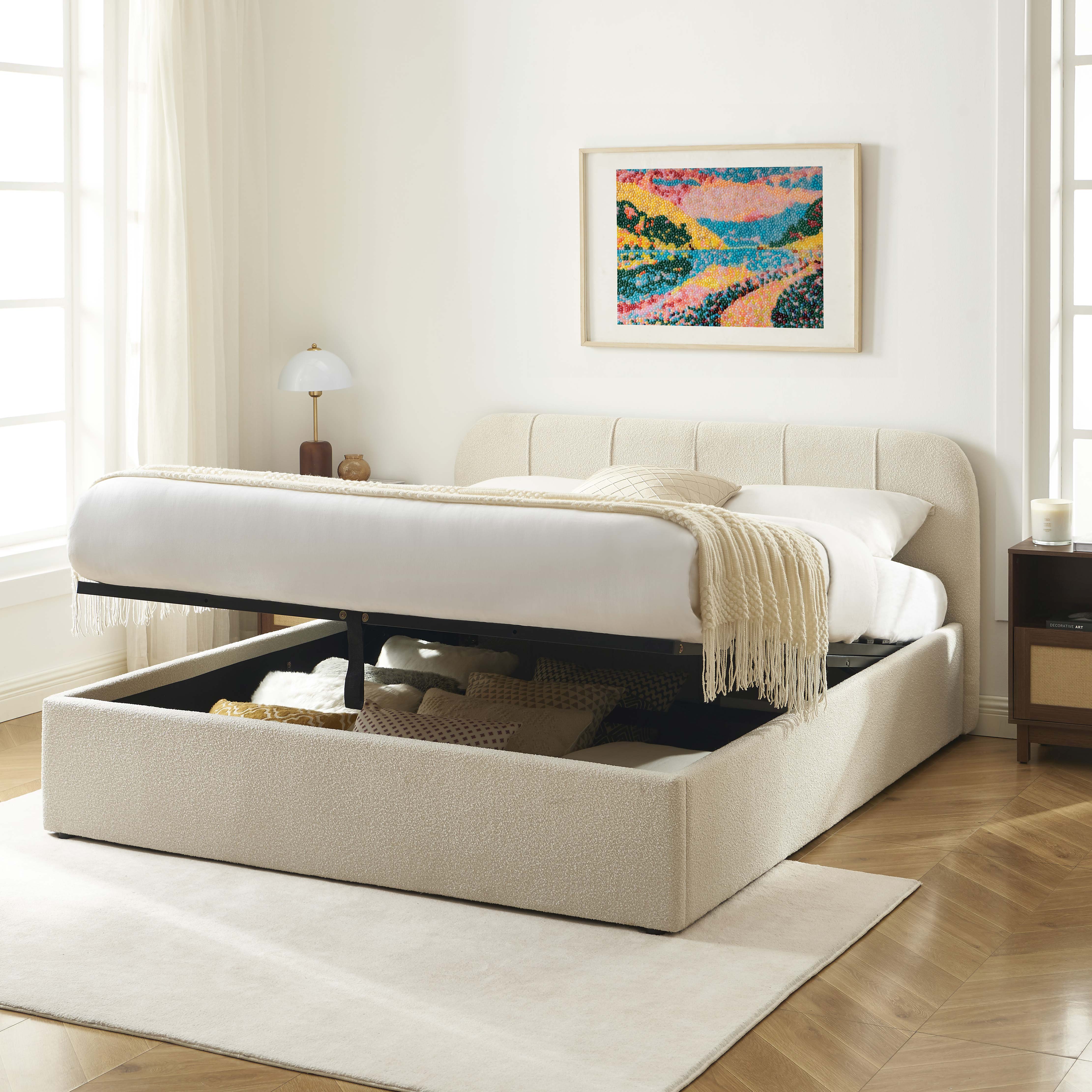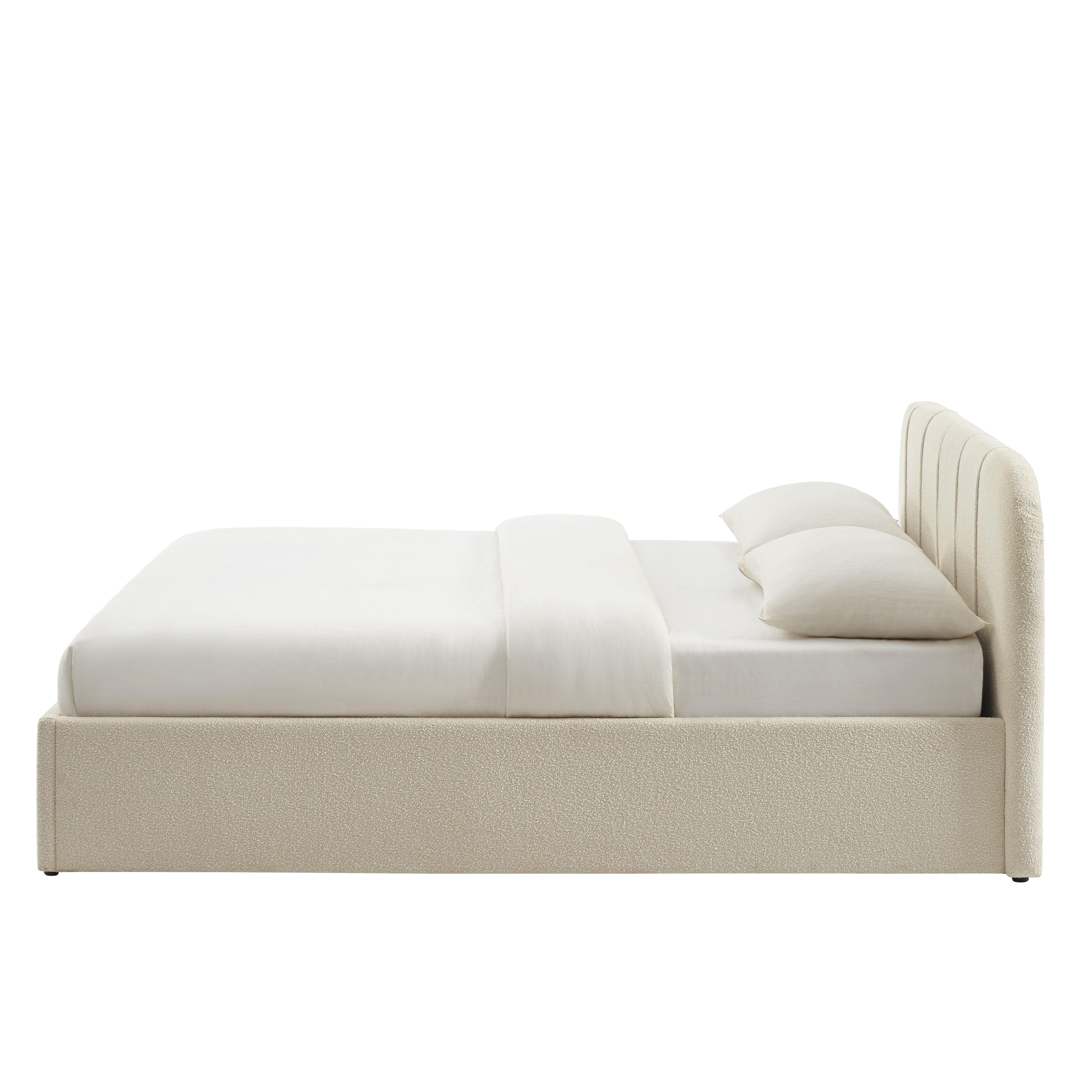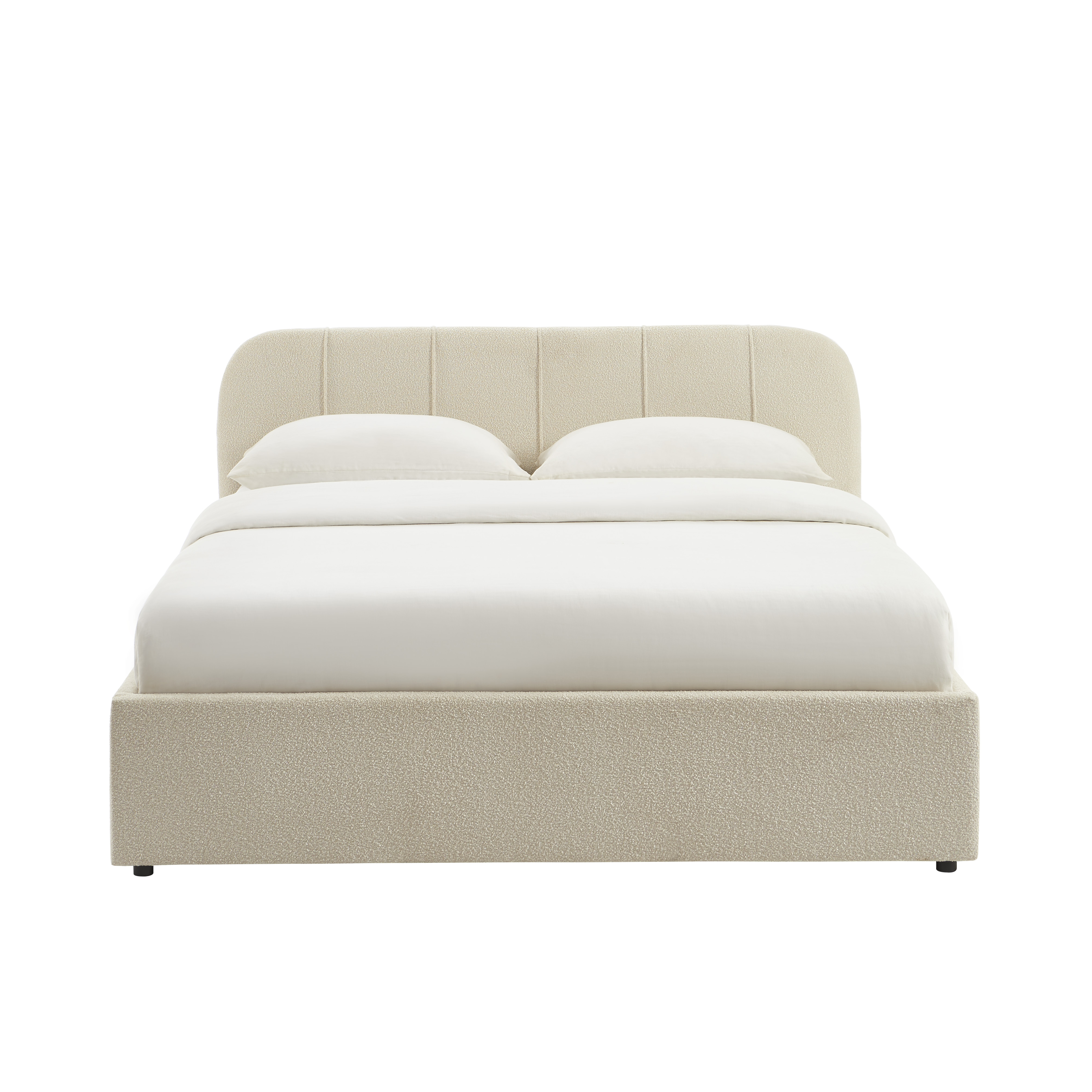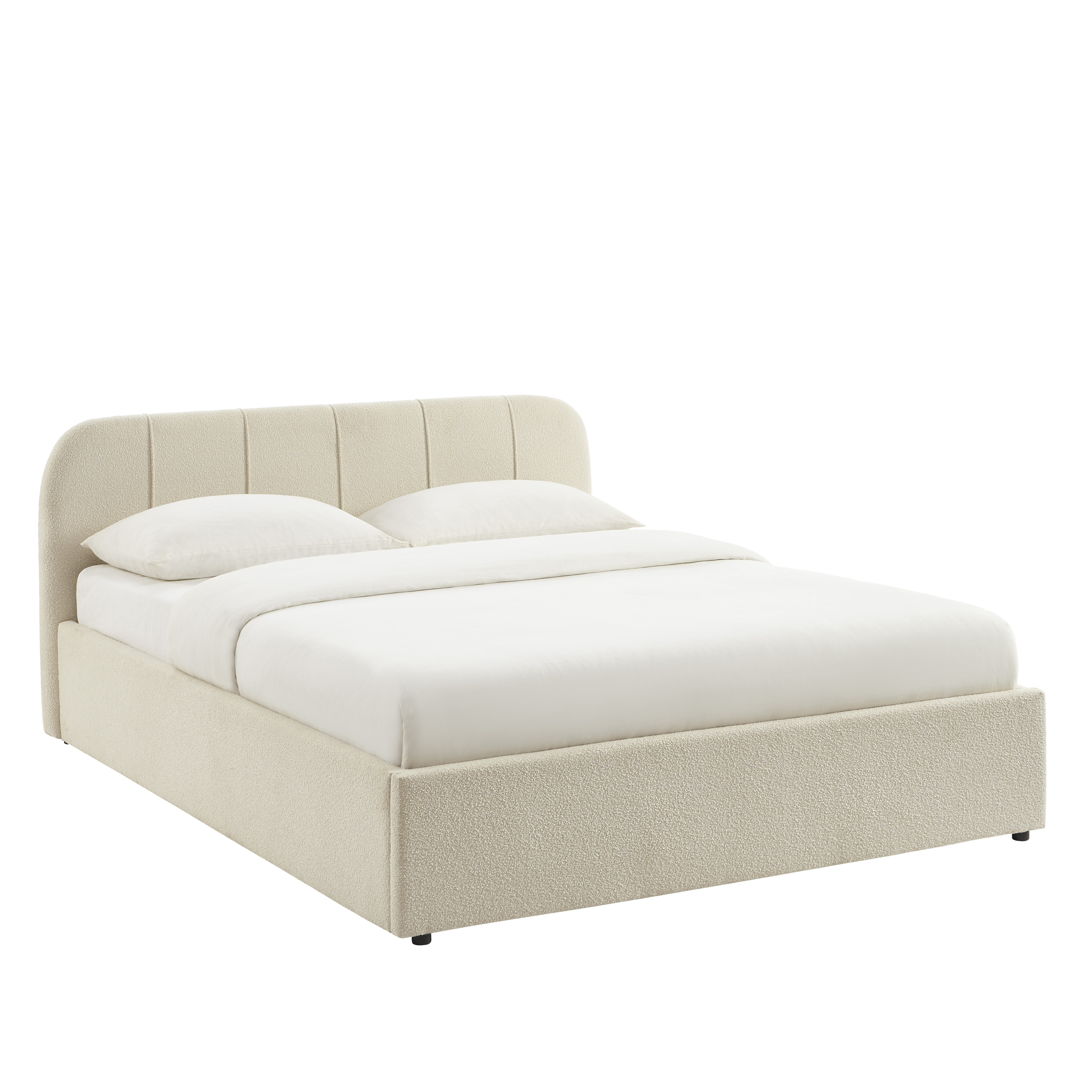 Aggiungete stile e spazio alla vostra camera con il letto contenitore YUME. Il rivestimento in tessuto ciniglia beige e la testiera imbottita daranno un tocco caldo e moderno alla vostra camera.
