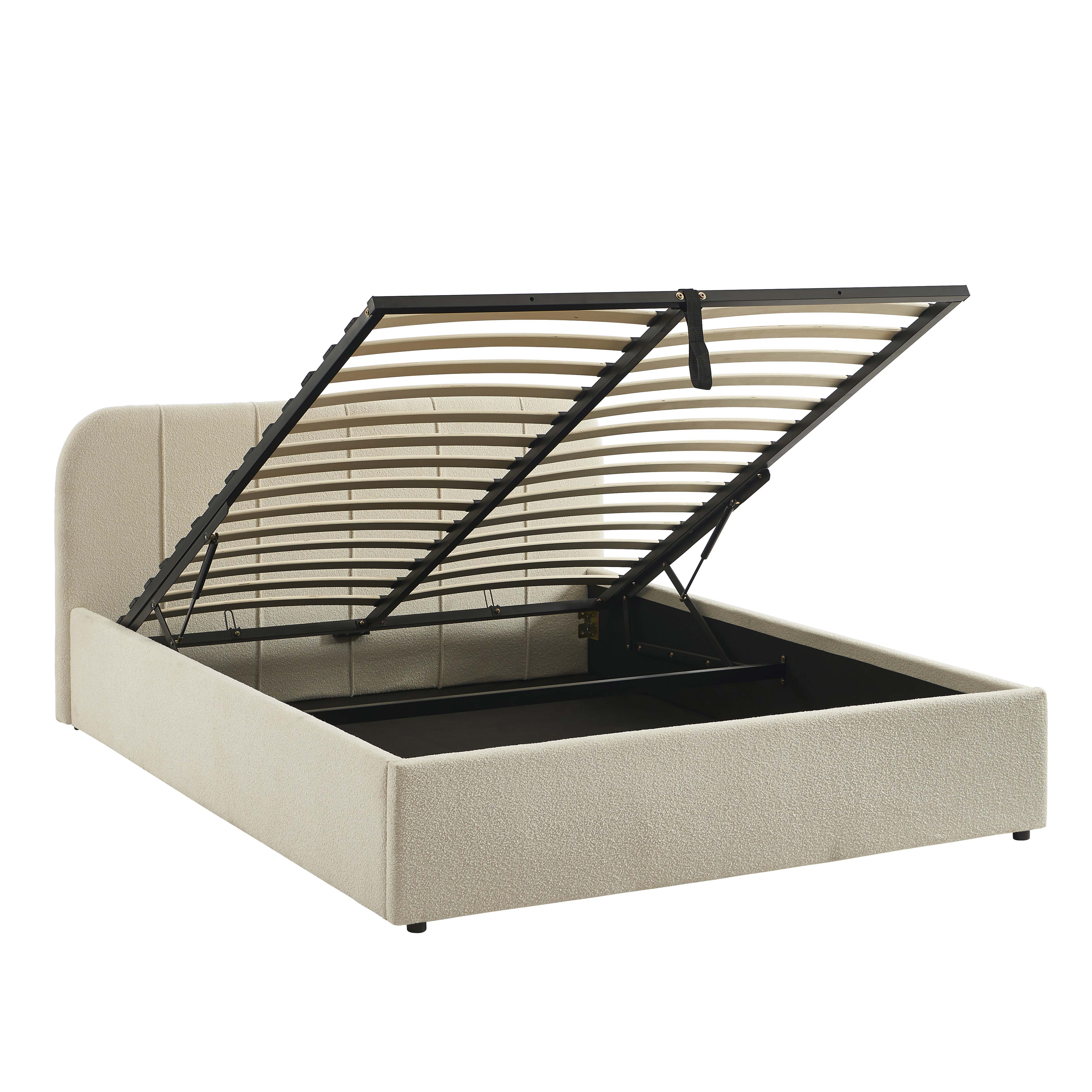 Letto contenitore YUME tessuto ciniglia beige 160x200 rete inclusa