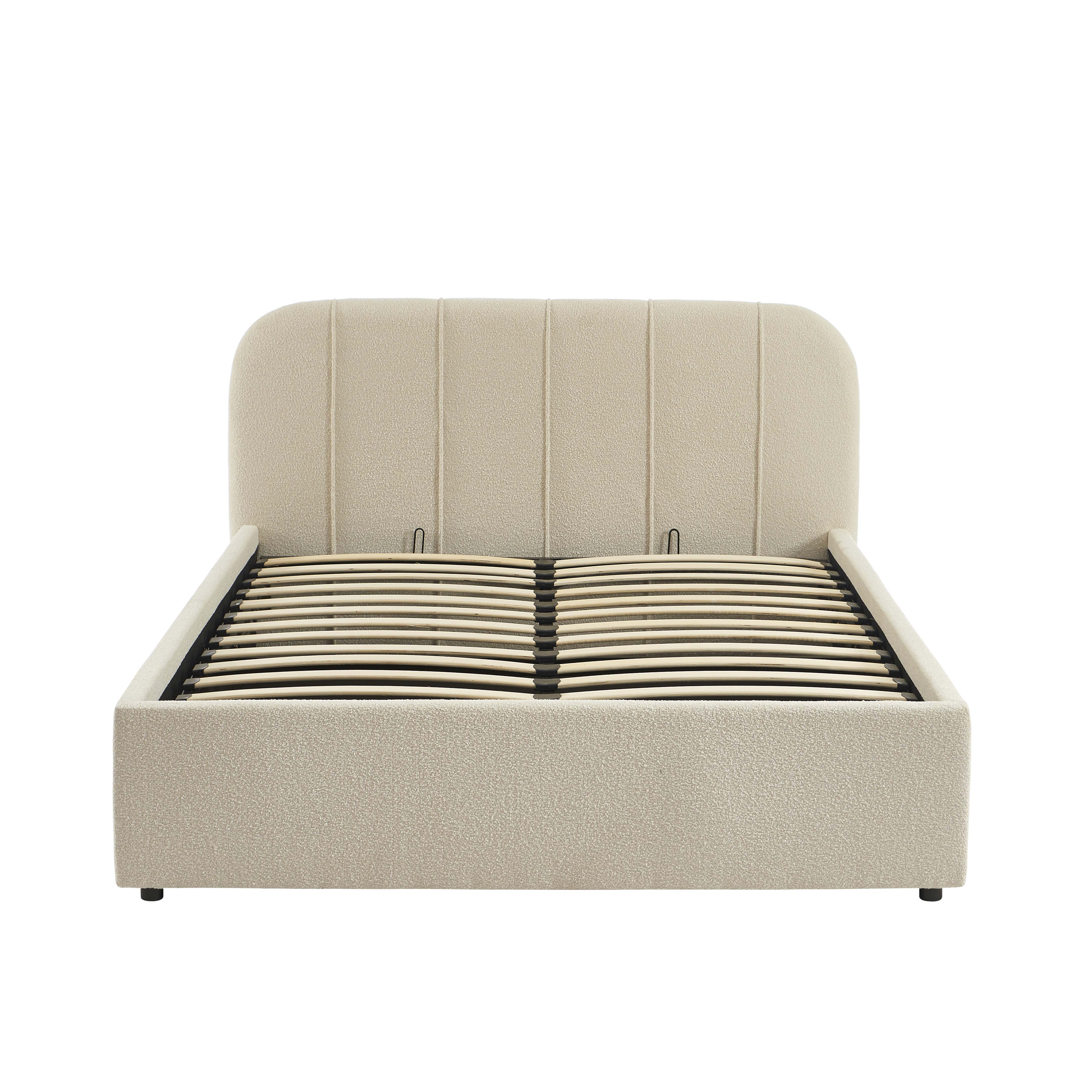 Letto contenitore YUME tessuto ciniglia beige 140x190 rete inclusa