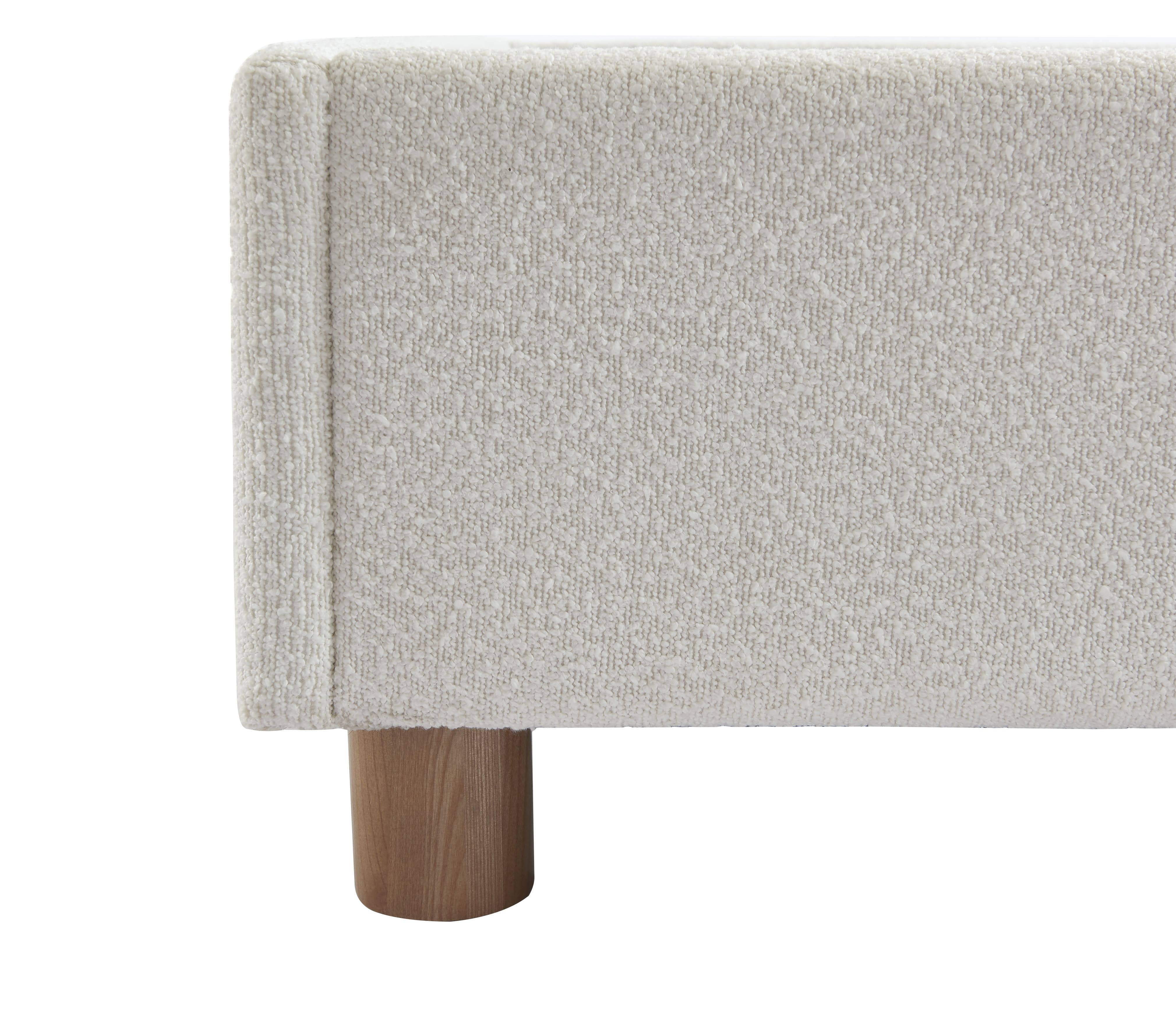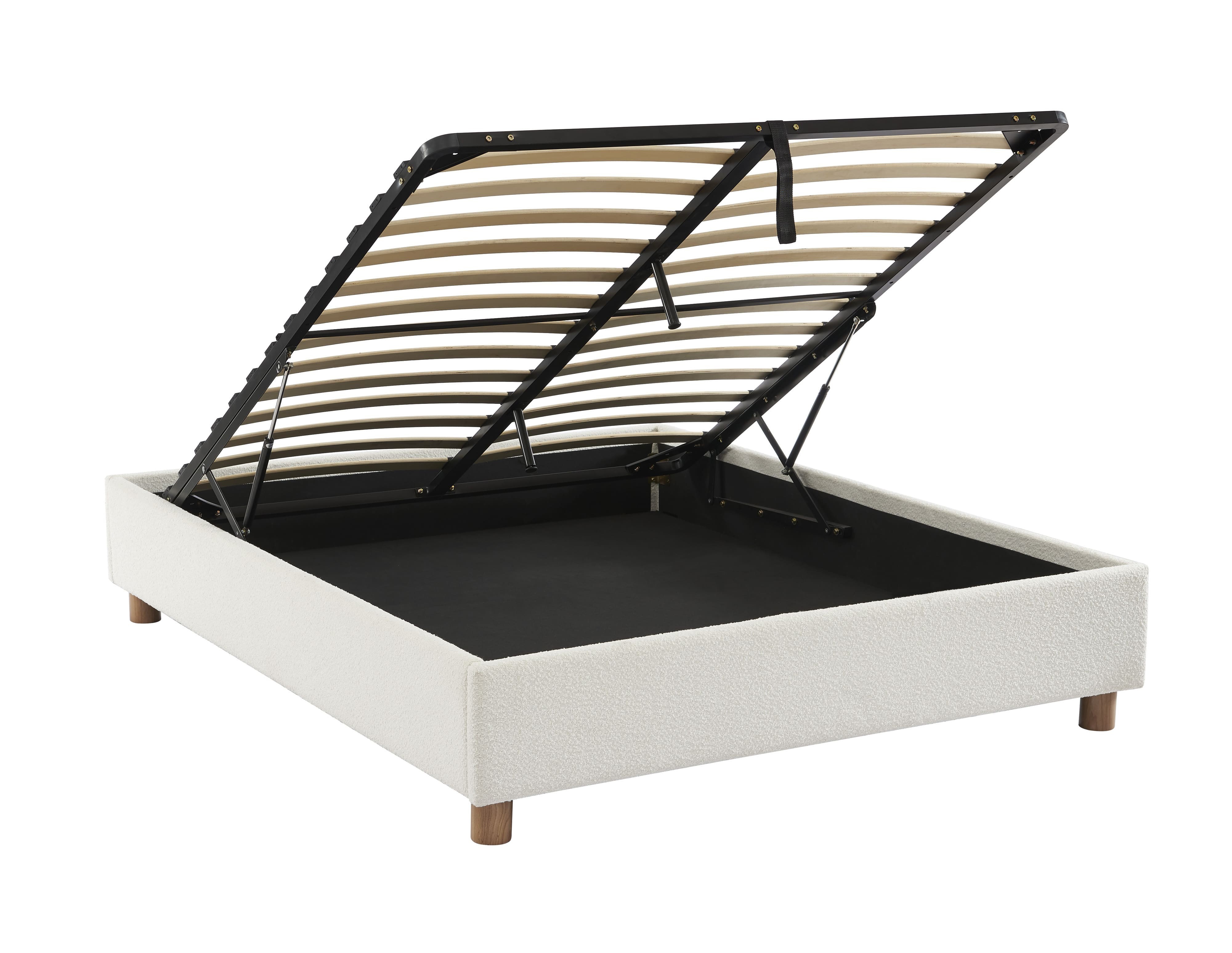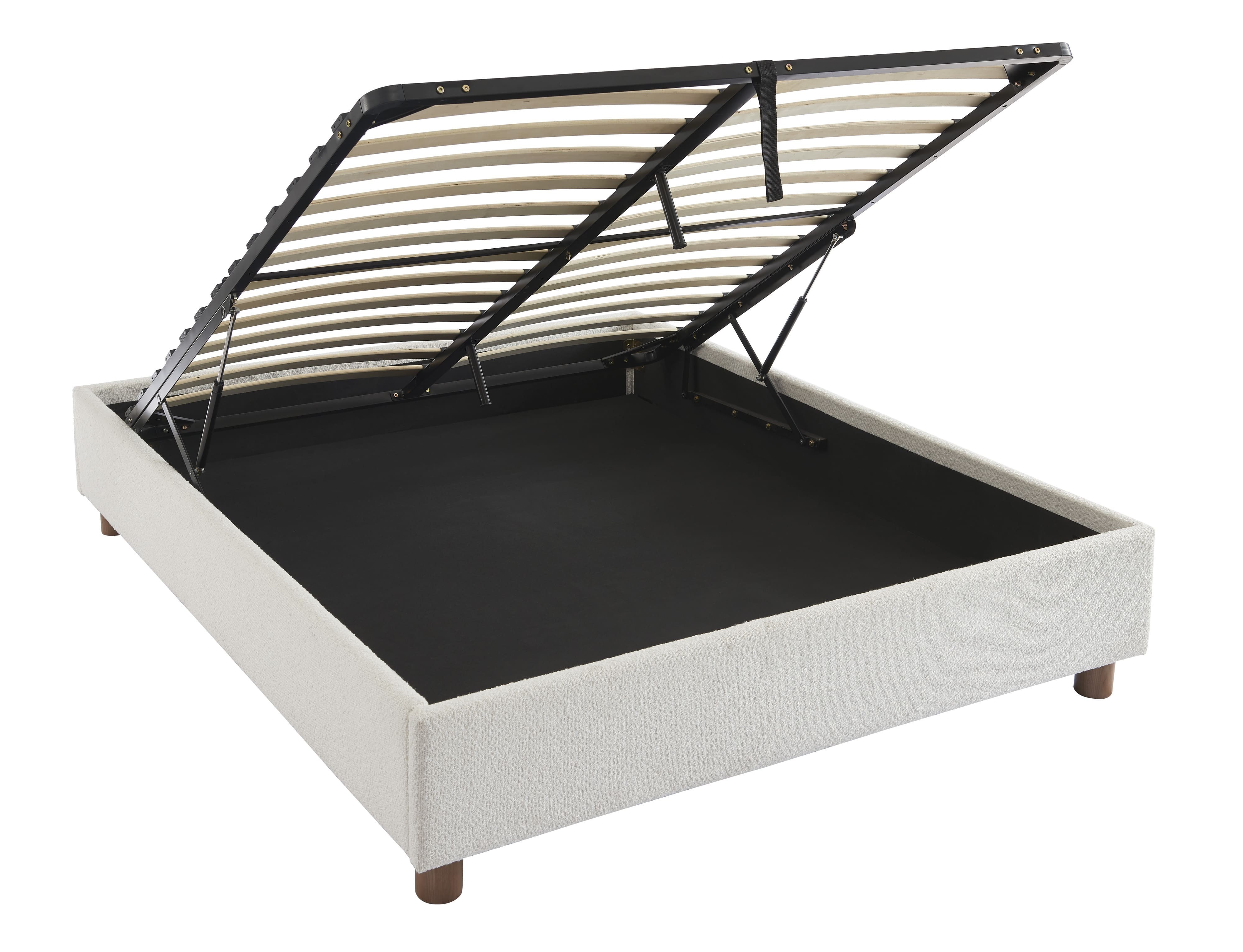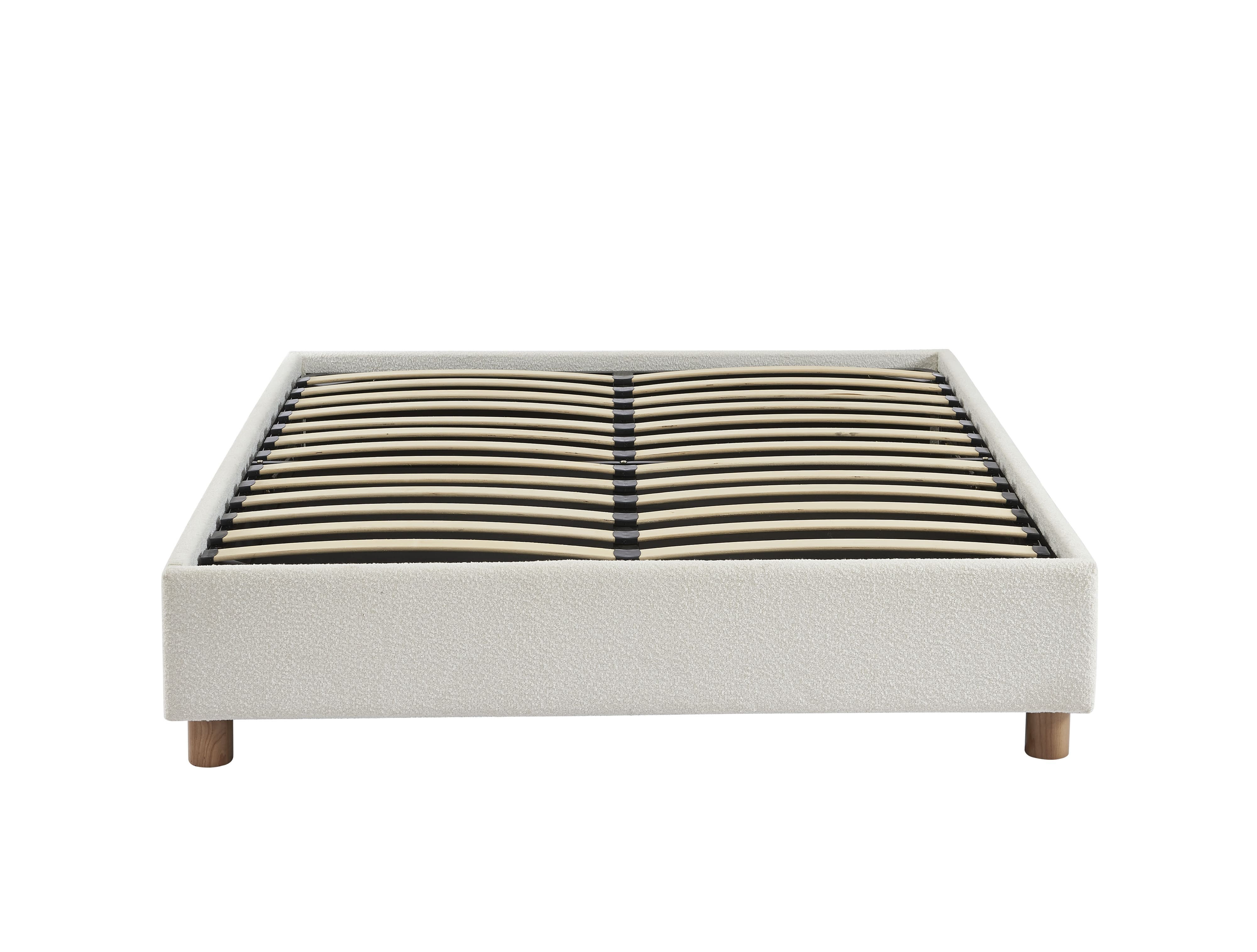 Oltre ad essere pratico, ci fa impazzire il suo rivestimento in tessuto bouclé, molto di tendenza in questo momento! Il tocco in più di questo letto contenitore? Le sue gambe in massello di frassino arrotondate, moderne e naturali.