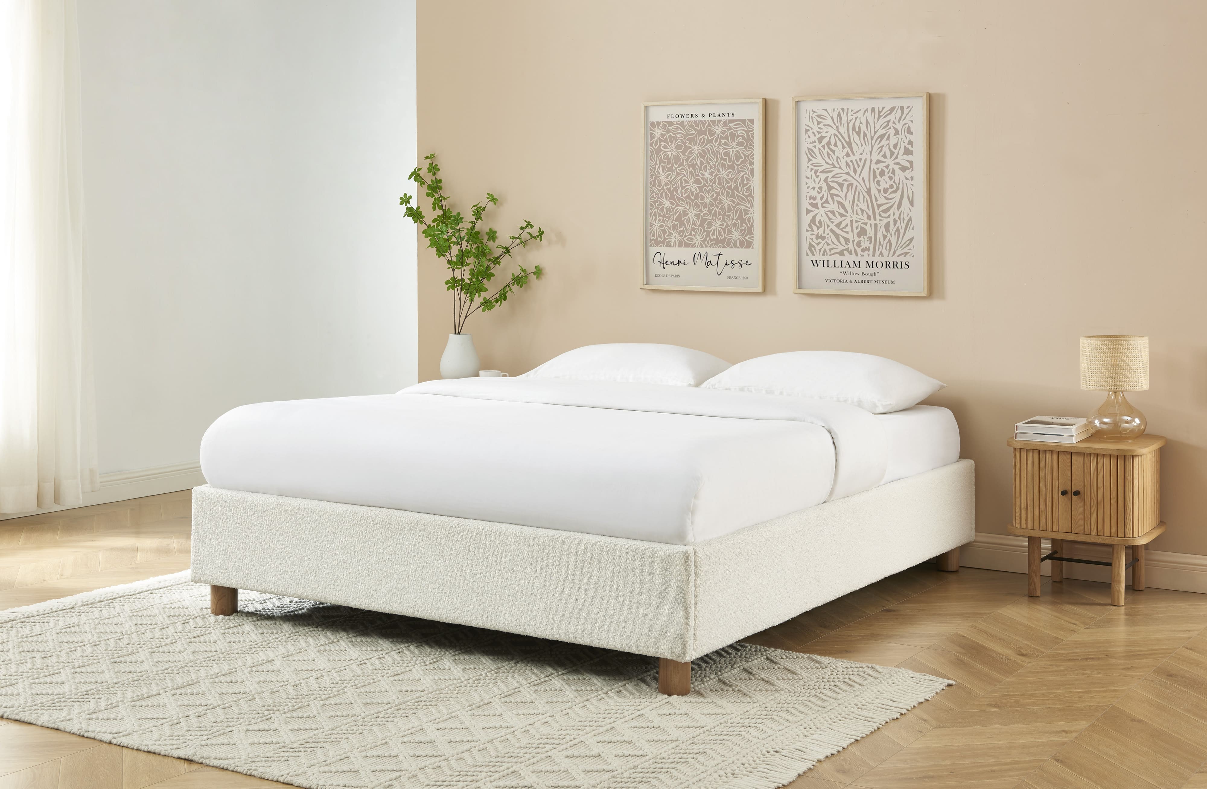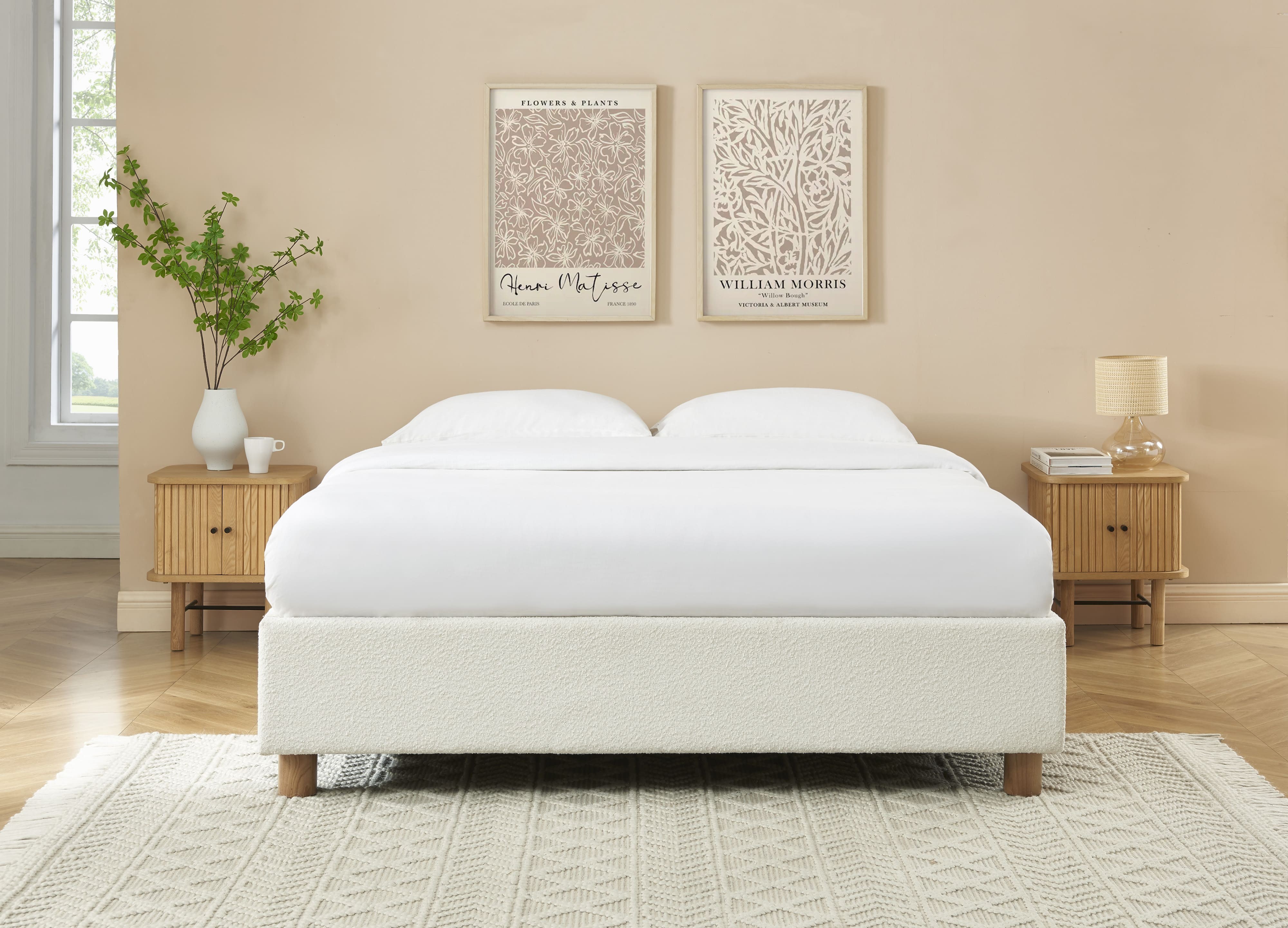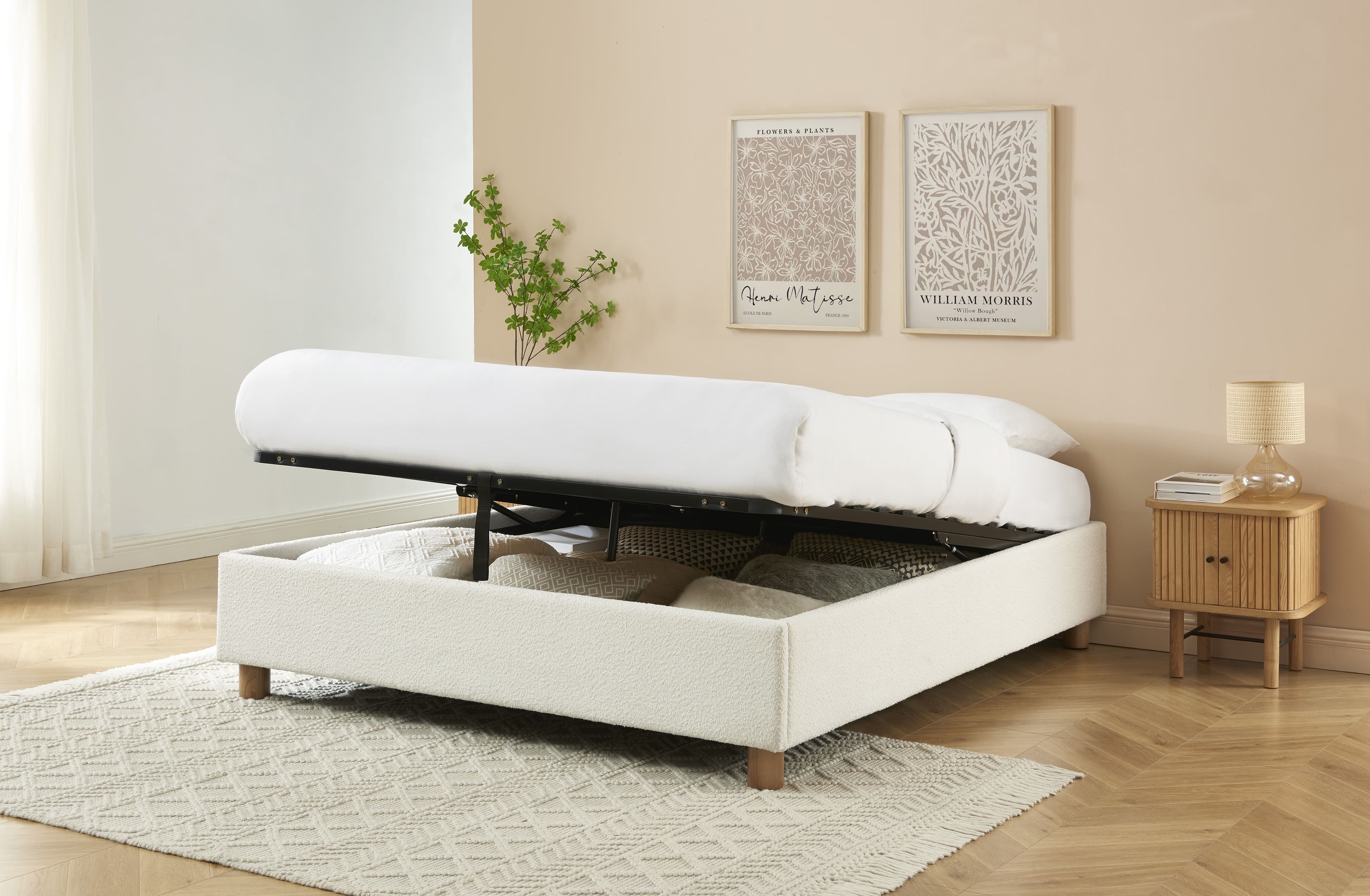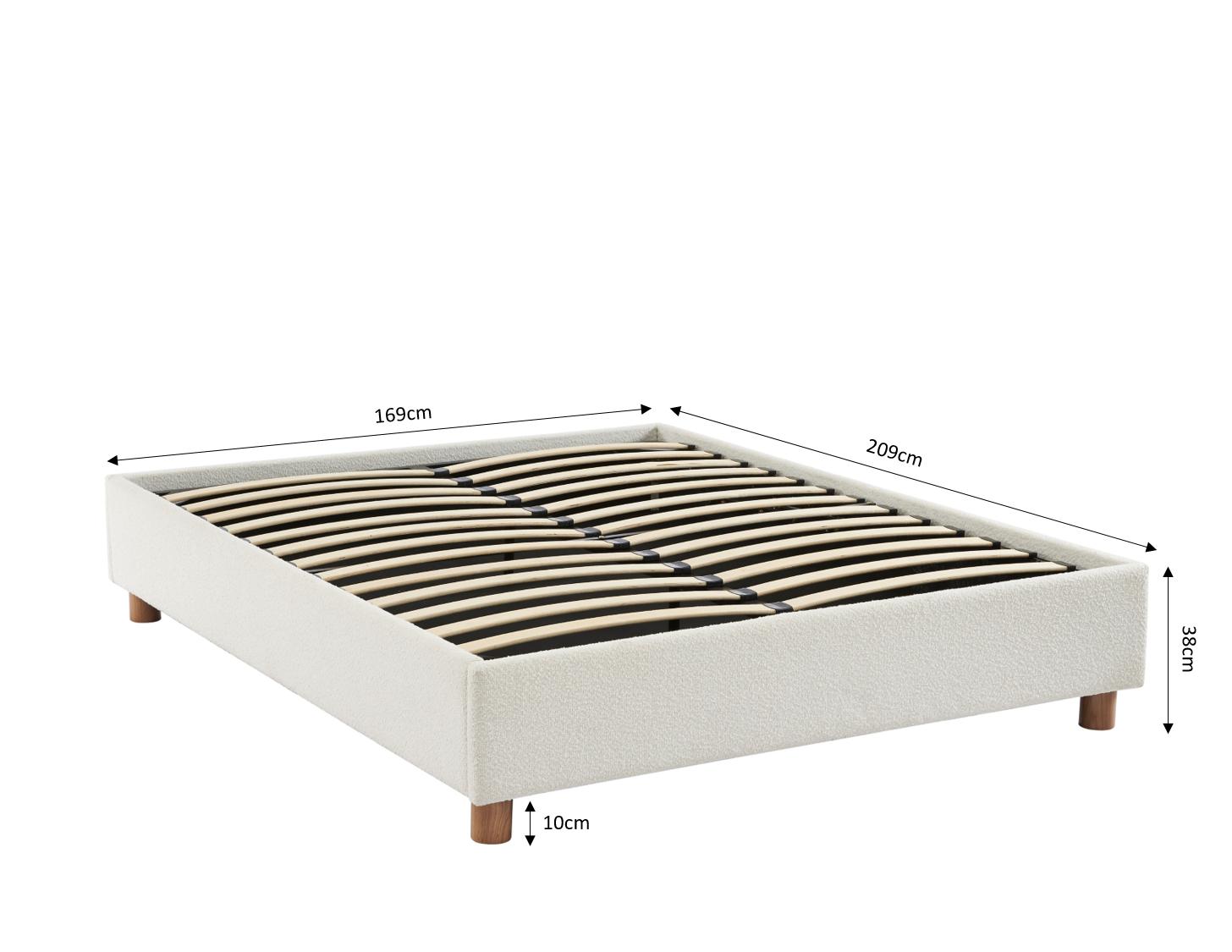 Oltre ad essere pratico, ci fa impazzire il suo rivestimento in tessuto bouclé, molto di tendenza in questo momento! Il tocco in più di questo letto contenitore? Le sue gambe in massello di frassino arrotondate, moderne e naturali.