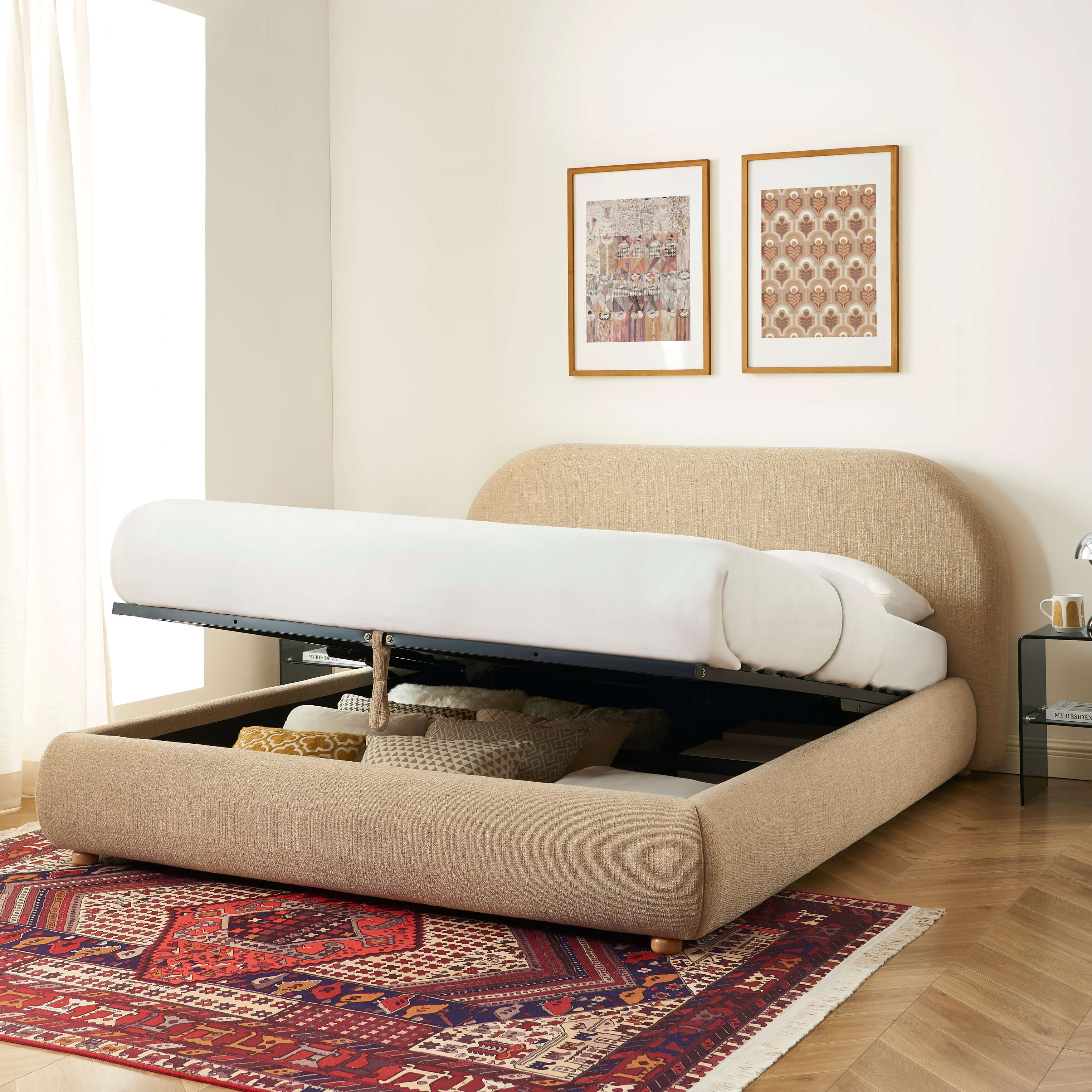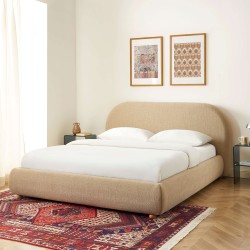 Con le sue linee arrotondate e il rivestimento in tessuto bouclé beige, il letto contenitore JELLY si impone come un elemento elegante e caldo nella camera da letto. Il suo stile contemporaneo e la sua morbida texture creano un'atmosfera cocooning ideale per uno spazio notte raffinato e confortevole.