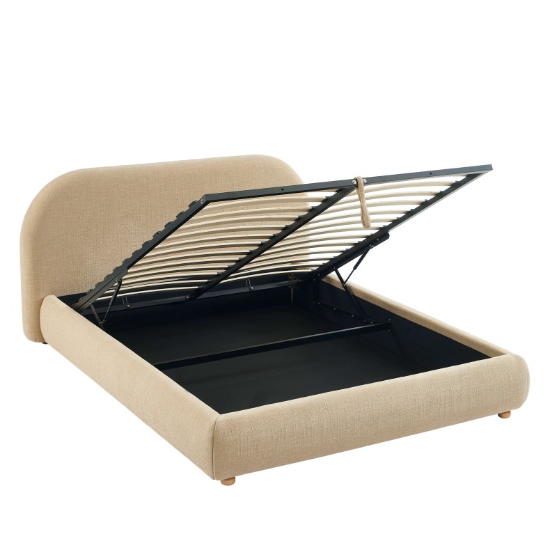 Il letto contenitore JELLY 160x200 in tessuto bouclé unisce design moderno, comfort e praticità grazie alla sua rete sollevabile e al suo ampio spazio contenitore integrato.